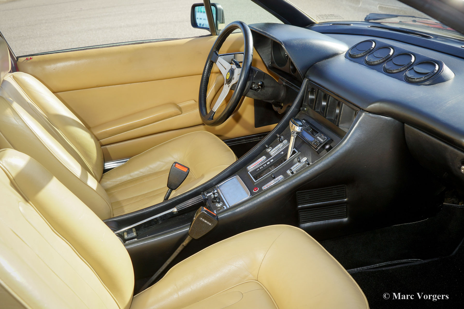 Ferrari 400i, year 1981. Colour red with a beige leather interior and black carpet. This magnificent Ferrari 400i is a very well preserved original example in good condition. The automobile was imported from California in the USA a few years ago. This Ferrari 400i was only given new paint a few years ago. The original interior is beautiful and shows only the faintest traces of use. Under the bonnet and in the trunk, everything looks beautifully original and only slight traces of age can be found. The big 4823 cc V12 engine delivers a healthy 315 horsepower and it sounds magnificent! The power is transmitted to the rear wheels via a smooth shifting automatic gearbox. This slick designed 2+2 coupe model was built from 1979 until 1984, only 1300 cars of this type were produced. Driving a Ferrari V12 is a thrilling experience!