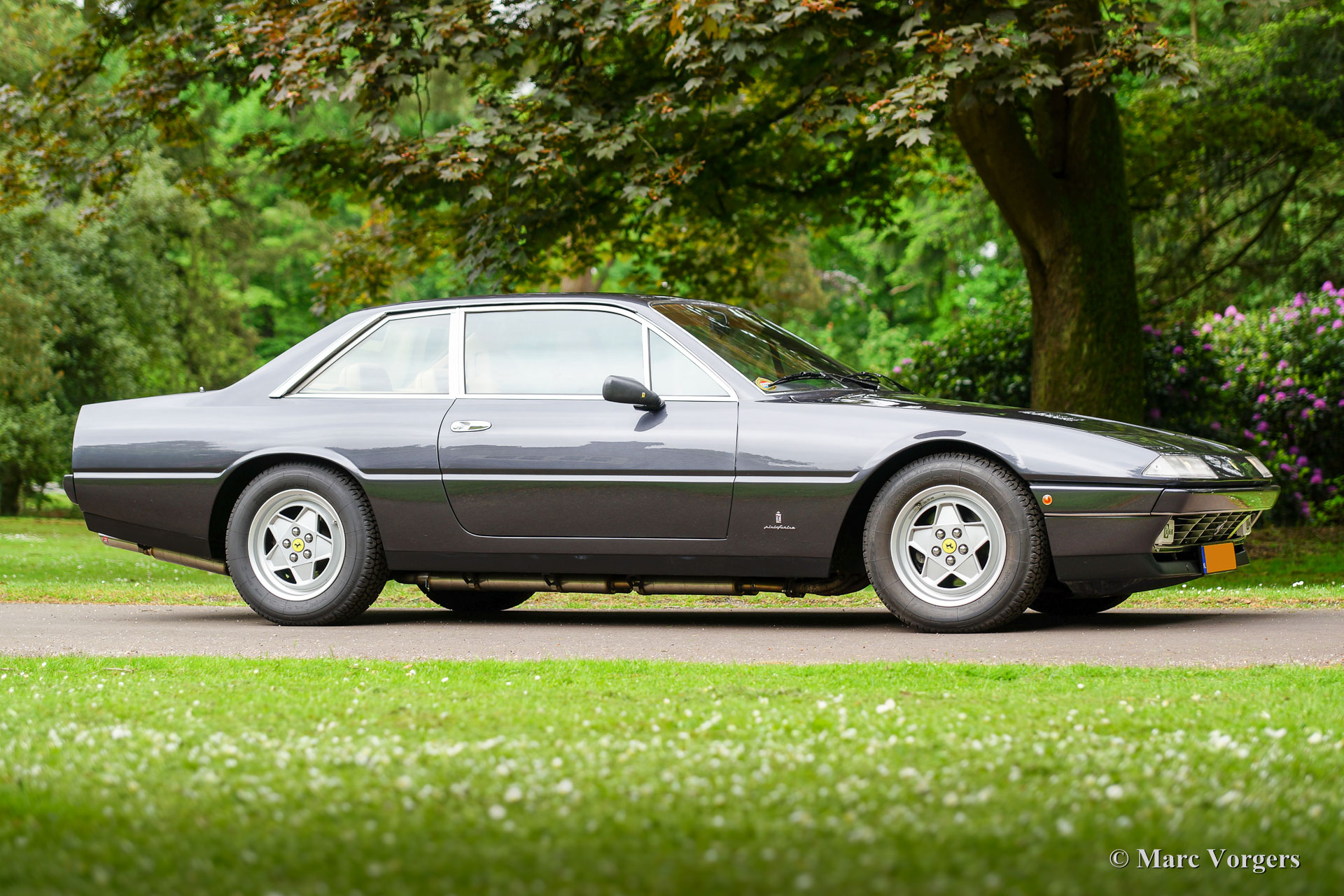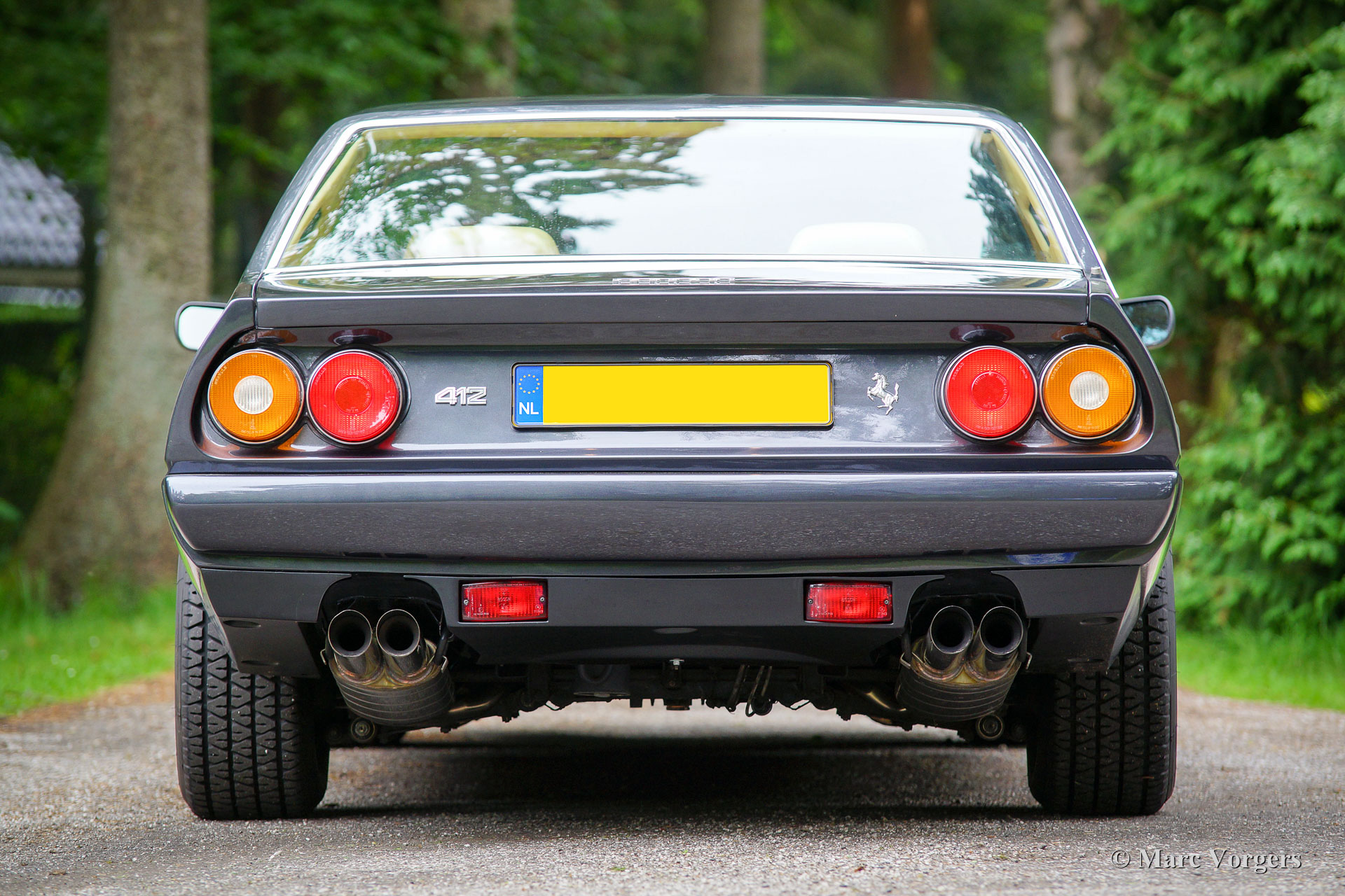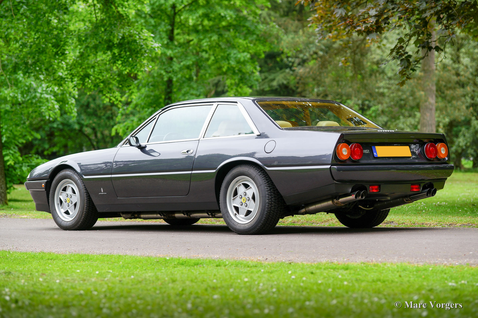 Ferrari 412, year 1986. Colour dark grey metallic with a dark beige full-leather interior. This magnificent Ferrari 412 was delivered new straight from the Ferrari factory in Maranello (the original warrantee card is signed by Mr. Biavati of Ferrari Administrazione). Then the car was shipped to the USA where it was registered fo road use on 7 May 1986. The first owner was Mr. Morton Viner, agent of the Hollywood stars Dean Martin, Shirley McLaine and others. After him the Ferrari had three more US owners. The last of them was Mr. Mashimo Yukitake (Director Japan Music Agency). In the year 2011 the car was sold to the current owner in the Netherlands. This fine Ferrari 412 is in superb original top condition. The car looks brand new AND the car drives like new! This Ferrari 412 has driven only 33747 miles. The car has been fully inspected by a Dutch Ferrari specialist (Ital Auto). The automobile features an automatic gearbox and new tyres. The Ferrari comes beautifully documented; a top specimen!