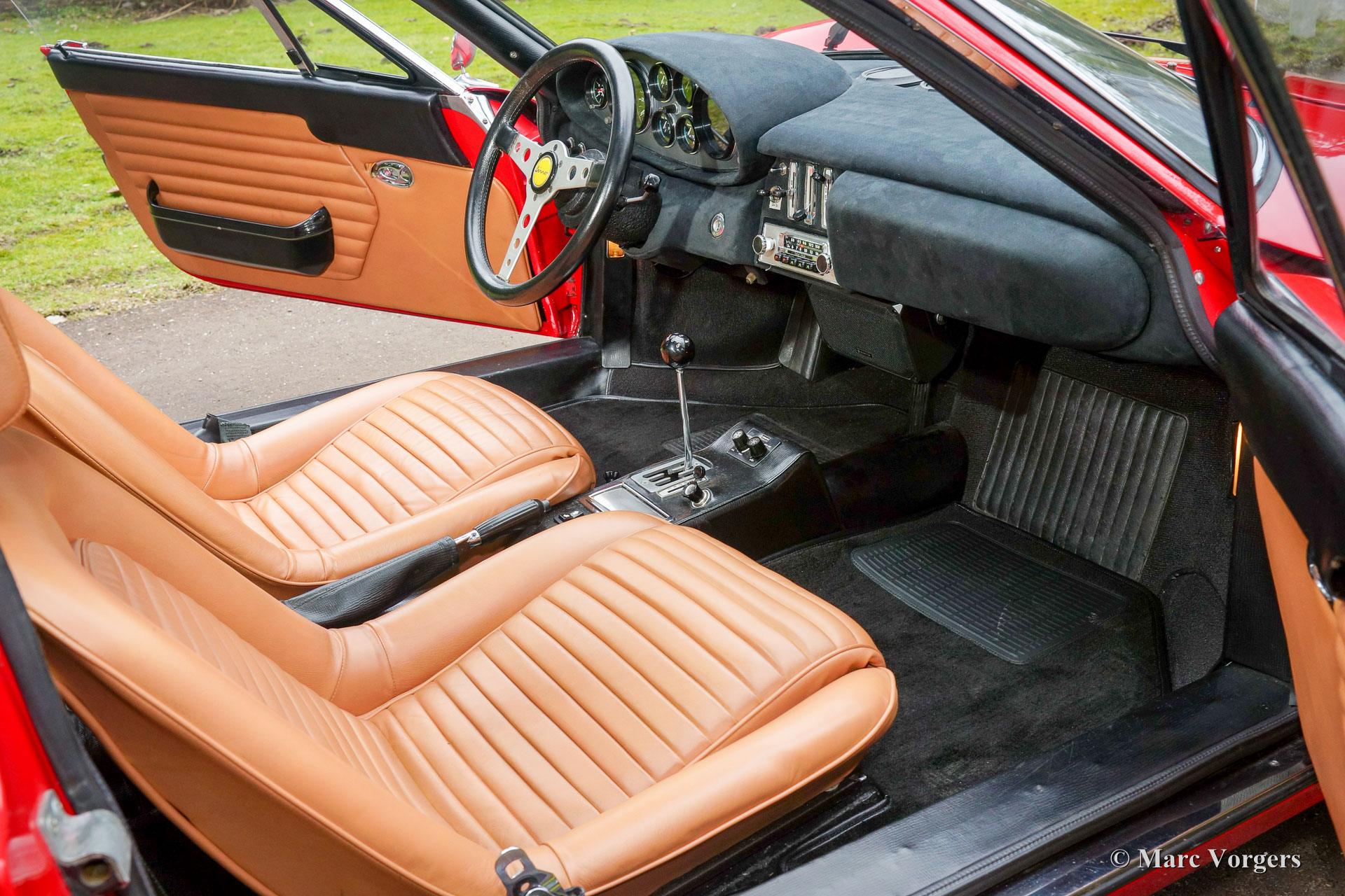 Ferrari Dino 246 GTS, year 1972. Colour red with a beige leather interior and black carpet. Black removable roof panel (GTS). This magnificent Ferrari Dino is in superb original condition! The automobile shows all original details and the car drives absolutely perfect.