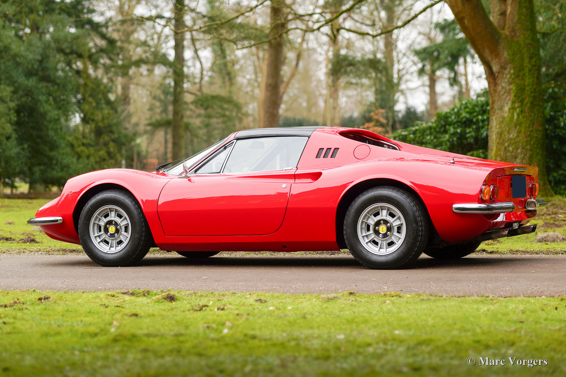 The Ferrari Dino 246 GT is a classic sports car that represents a significant era in the history of Ferrari. Produced between 1969 and 1974, it was an evolution of the Dino 206 GT, featuring a larger V6 engine and a slightly longer wheelbase. The 246 GT was notable for its beautiful design and performance, with a 2.4-liter engine that was a step up from the 206 GT's 2.0-liter unit. The Dino was the first Ferrari model manufactured in “high” numbers. The Dino 246 GT's design was the work of the legendary Pininfarina, and its curving and flowing lines and mid-engine layout have made it an iconic piece of automotive history. It's celebrated for its driving dynamics and is often listed among the top sports cars of the 1970s. The Dino 246 GT is a highly sought-after collector's item, only 2295 examples were built.