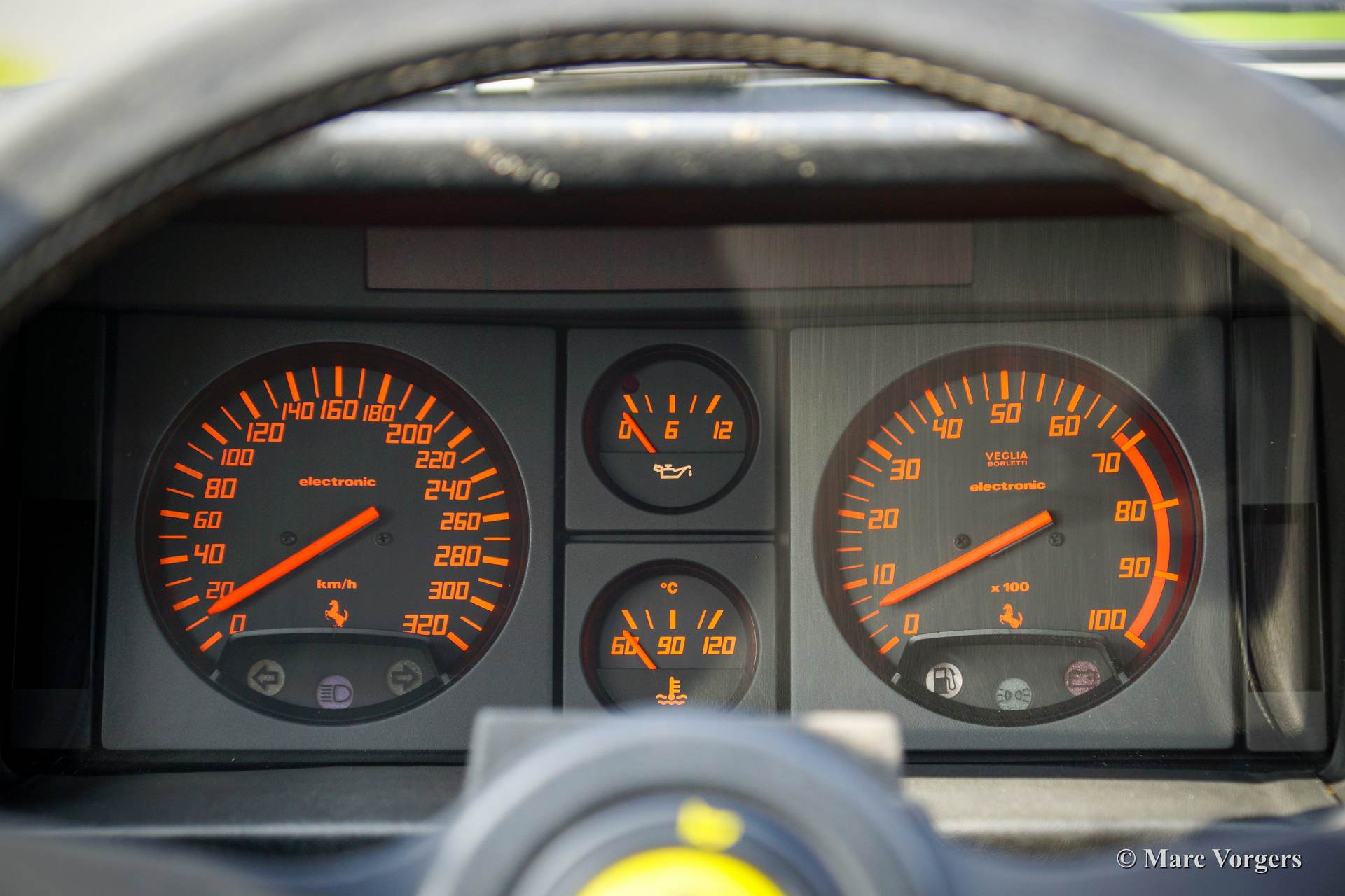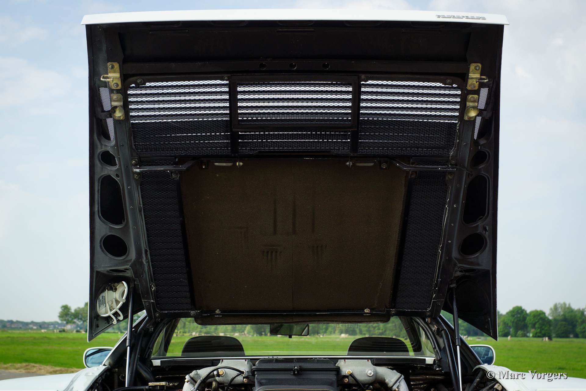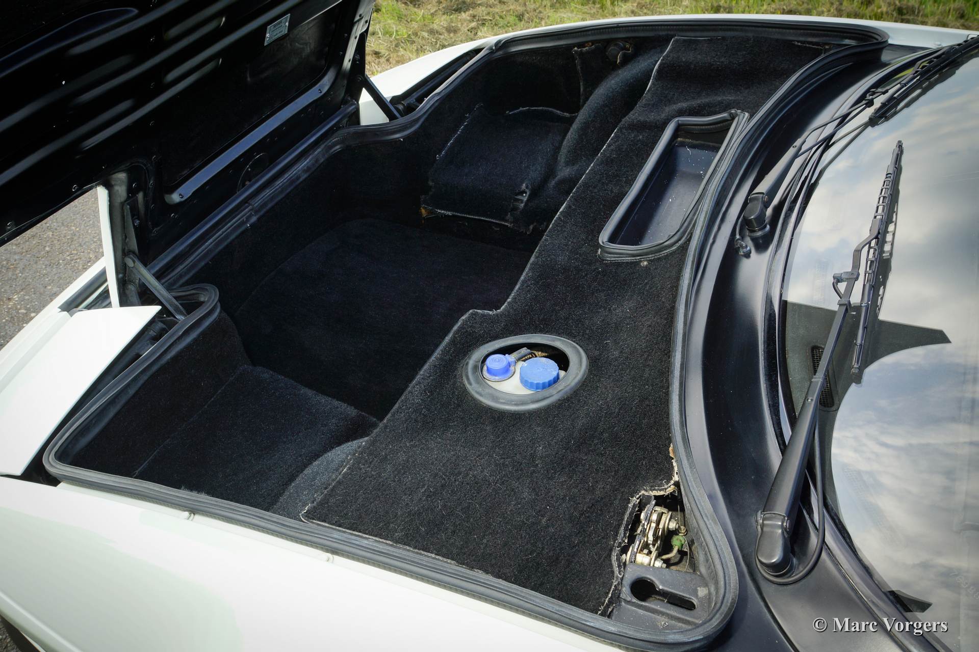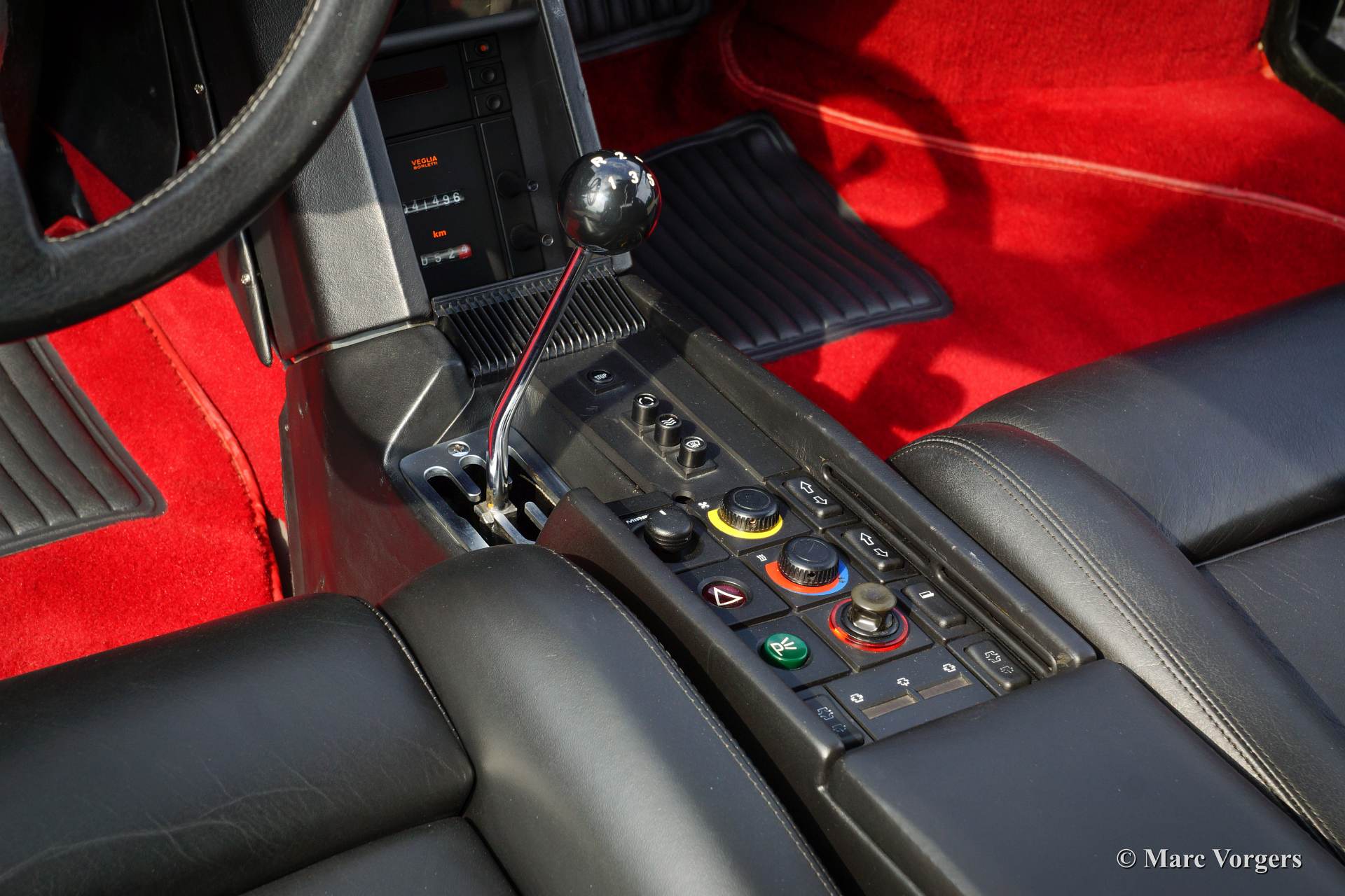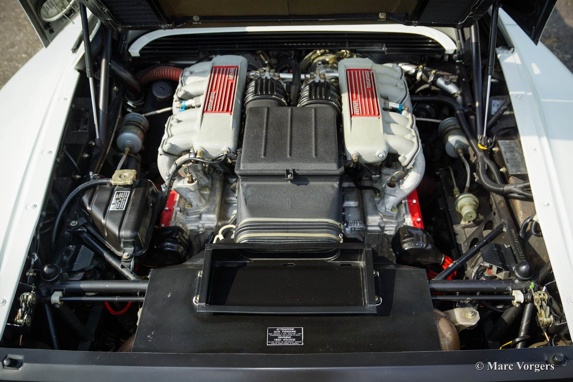 Ferrari Testarossa, year (June) 1988. Colour white (Bianco Avus, colour code FER 100) with a black leather interior and red carpet.