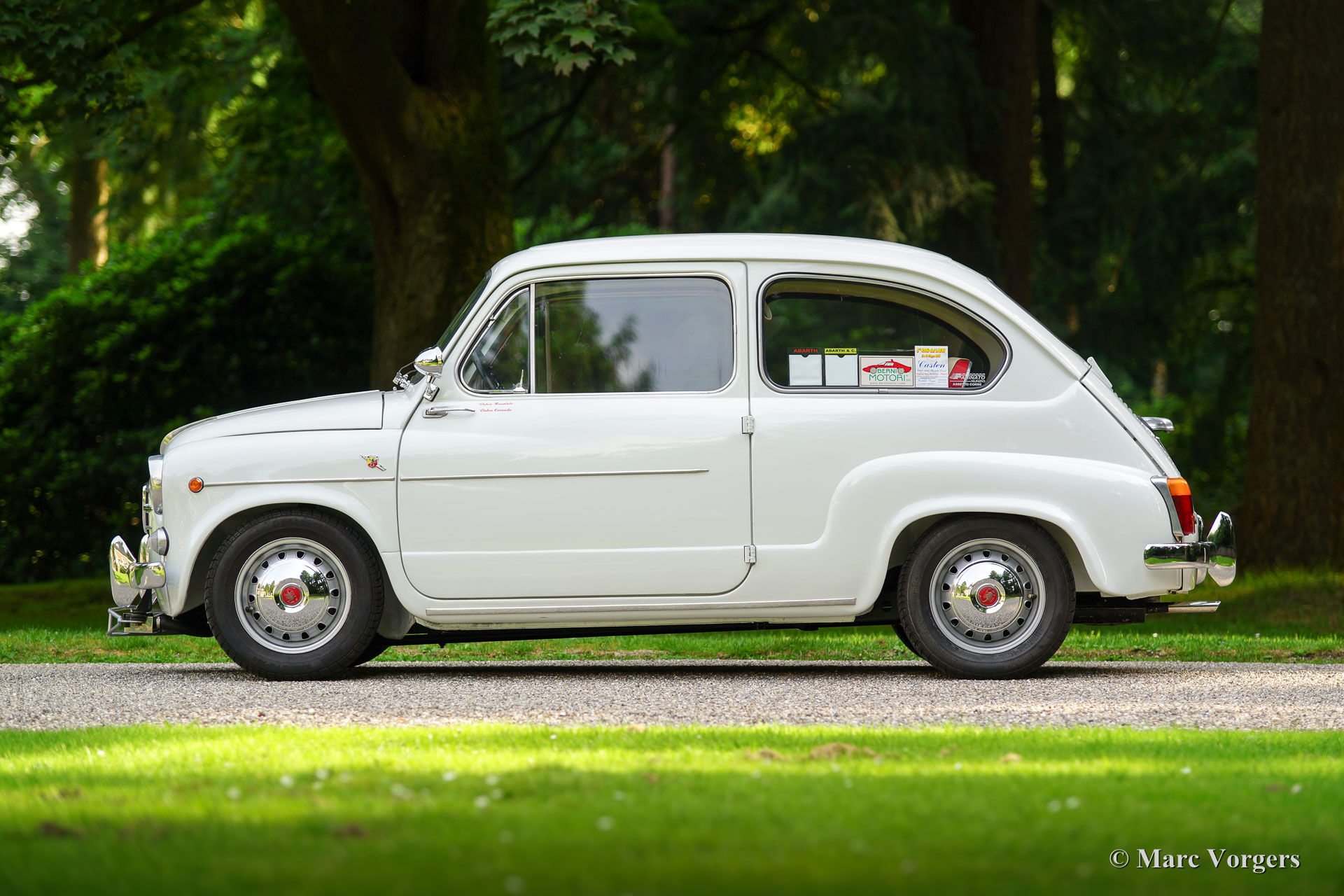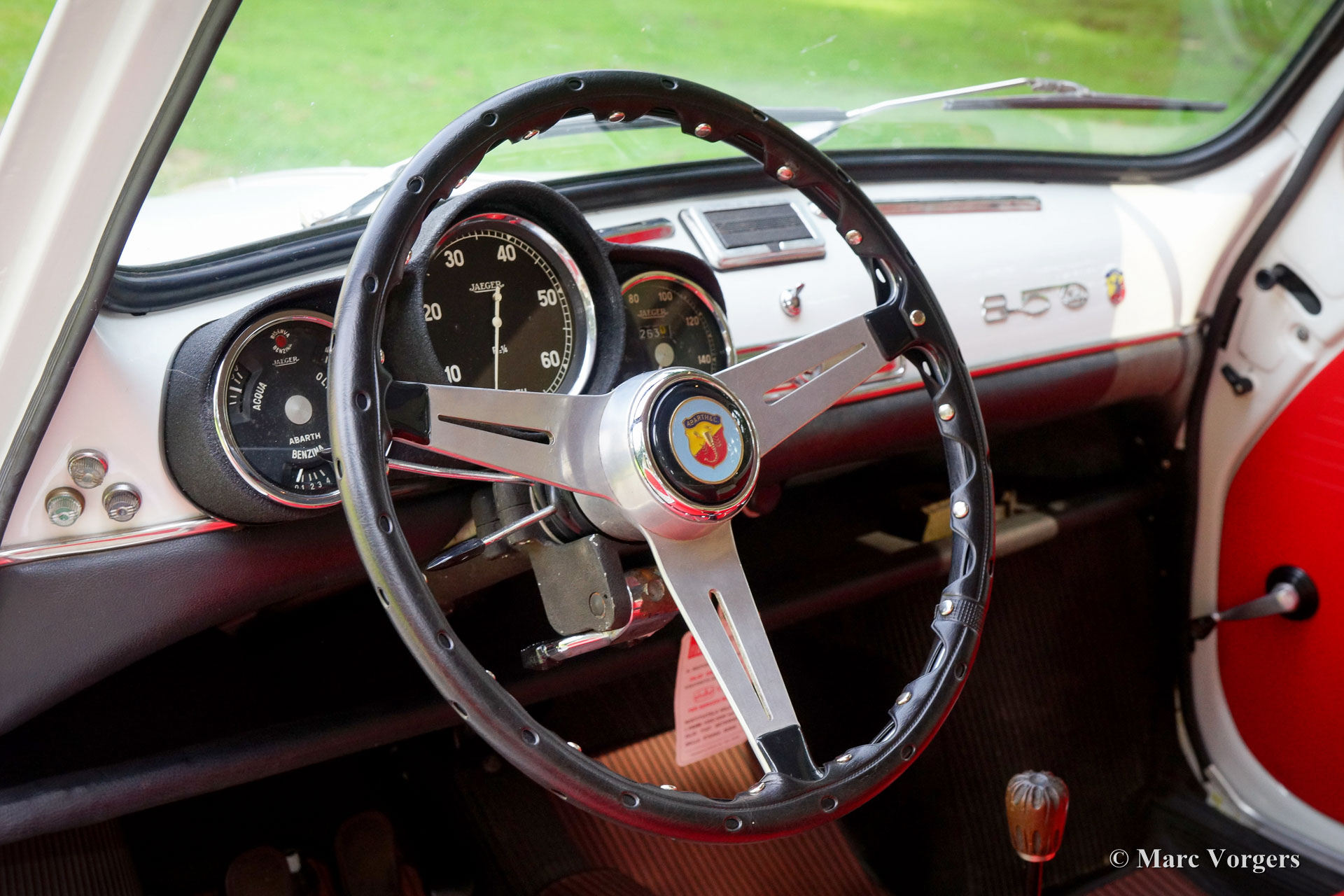 Fiat 600 D Abarth 850 TC, year 1962. Colour white with a red leatherette interior trimmed with white piping. Black rubber carpet with a protective anthracite/red rubber protective mat on top. This magnificent Fiat Abarth is officially named: Fiat 600 D ‘derivata’ Abarth 850 TC. The extensive description means that the car was built in the Fiat factory and that the Fiat was then completed at the Abarth factory in Turin as a Abarth 850 TC. This stunning Fiat was sold new to a Mr. Russo Dolofero a resident of Sicily at that time. The car was entered for racing competitions in the south of Italy early in its life. Photos are present of the car at the Peragusa circuit in 1965. In the 1970ies and 1980ies the car was garaged, and many years later, in the year 2006, the car was discovered by the Sicilian brothers Corrado and Maurizio Valvo. The brothers had the Fiat Abarth restored to its current superb TOP condition! The engine is ‘nearly matching’ (engine number 144 instead of the original number 140) and it was fully overhauled by the renowned specialist Berni Motori in Malao, Northern-Italy. This rare and stunning REAL Abarth is registered in the Netherlands since the year 2016. A TOP-specimen!