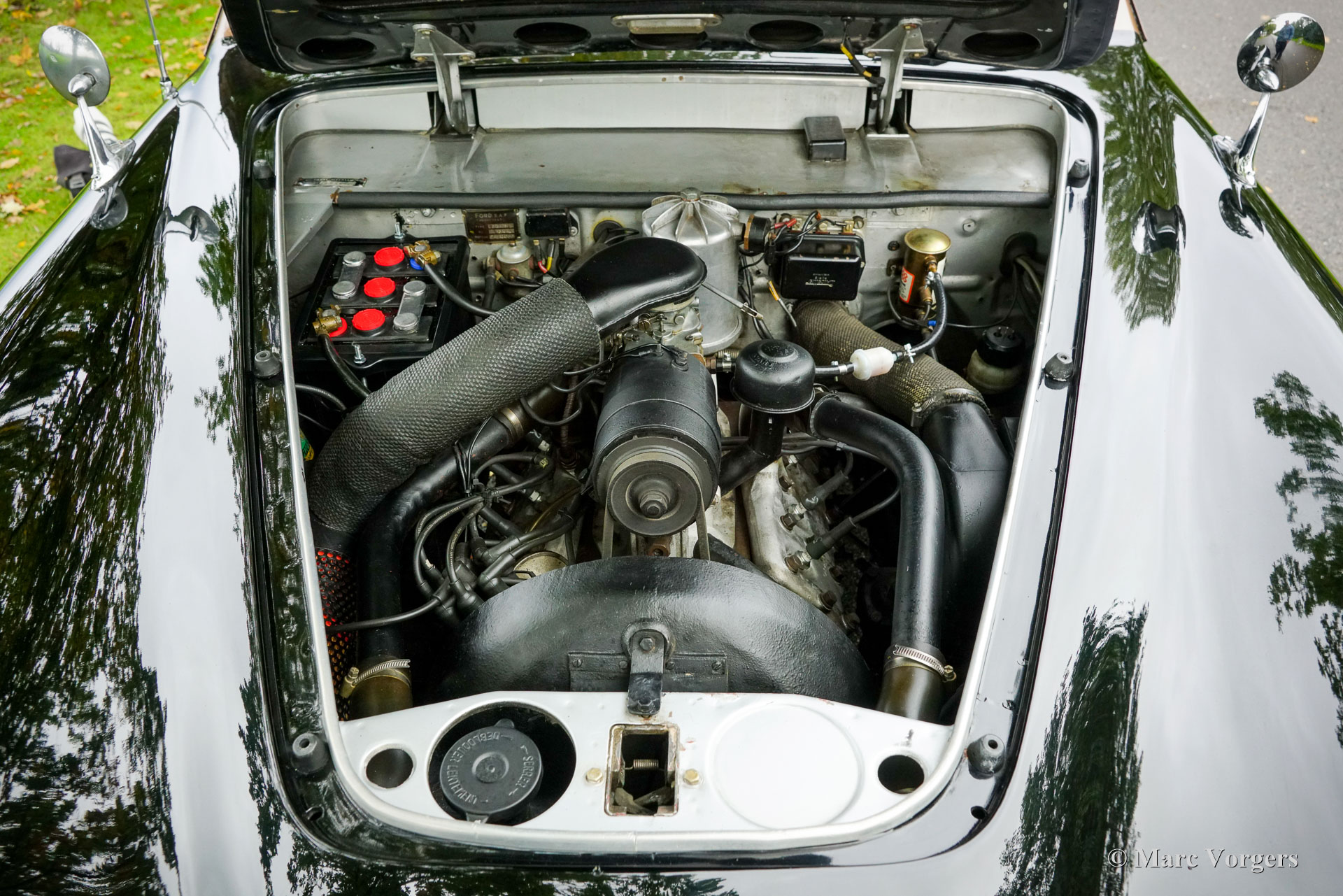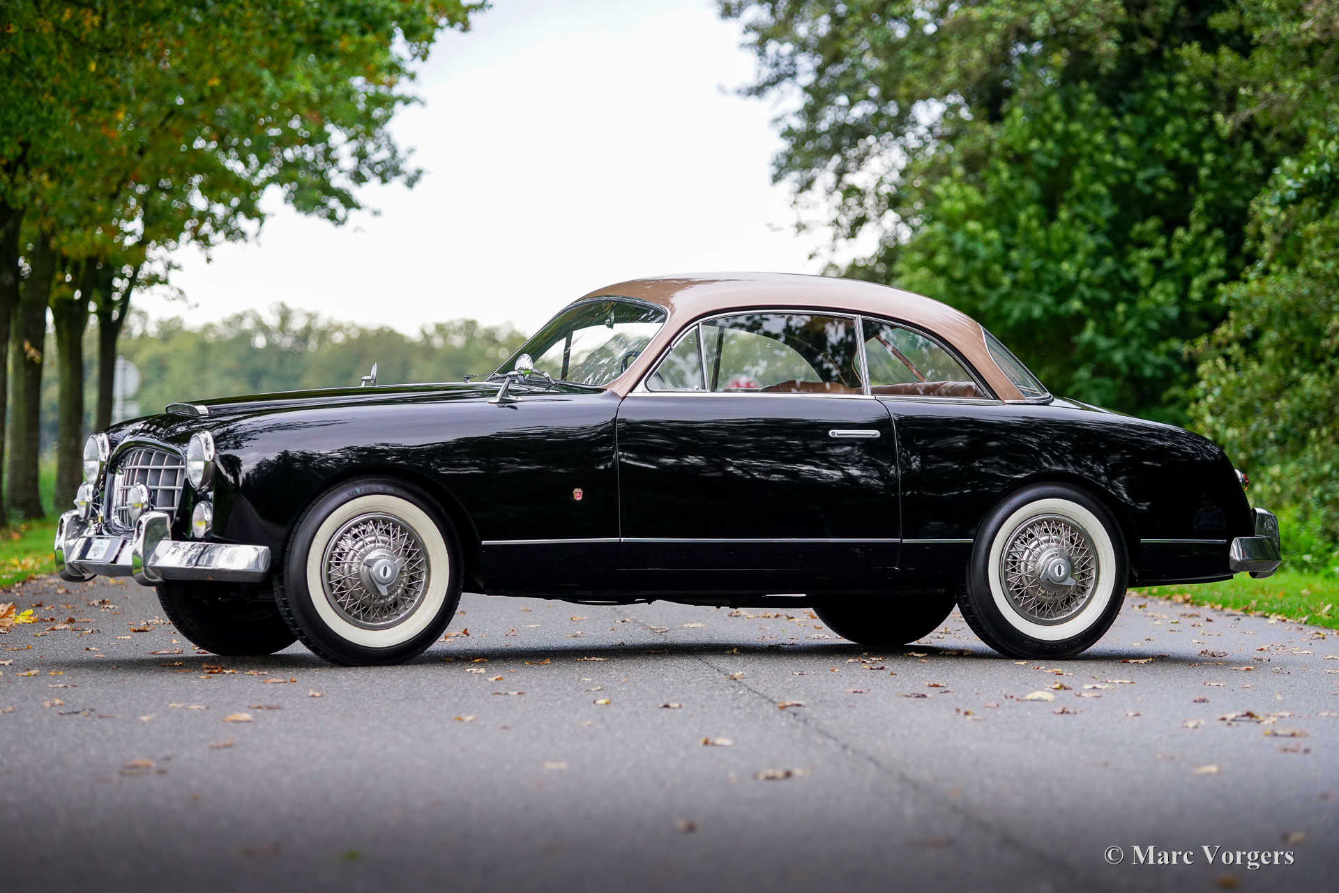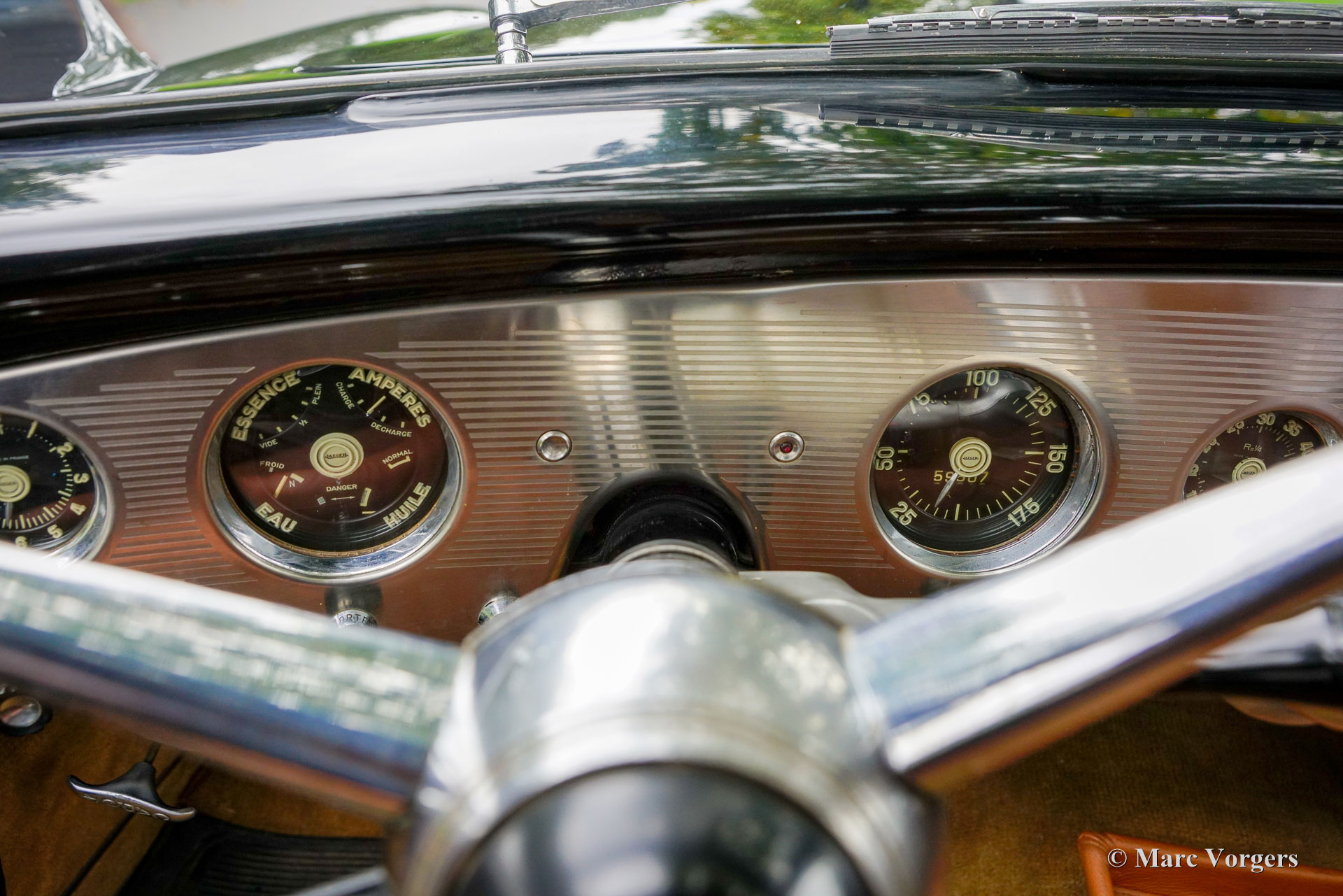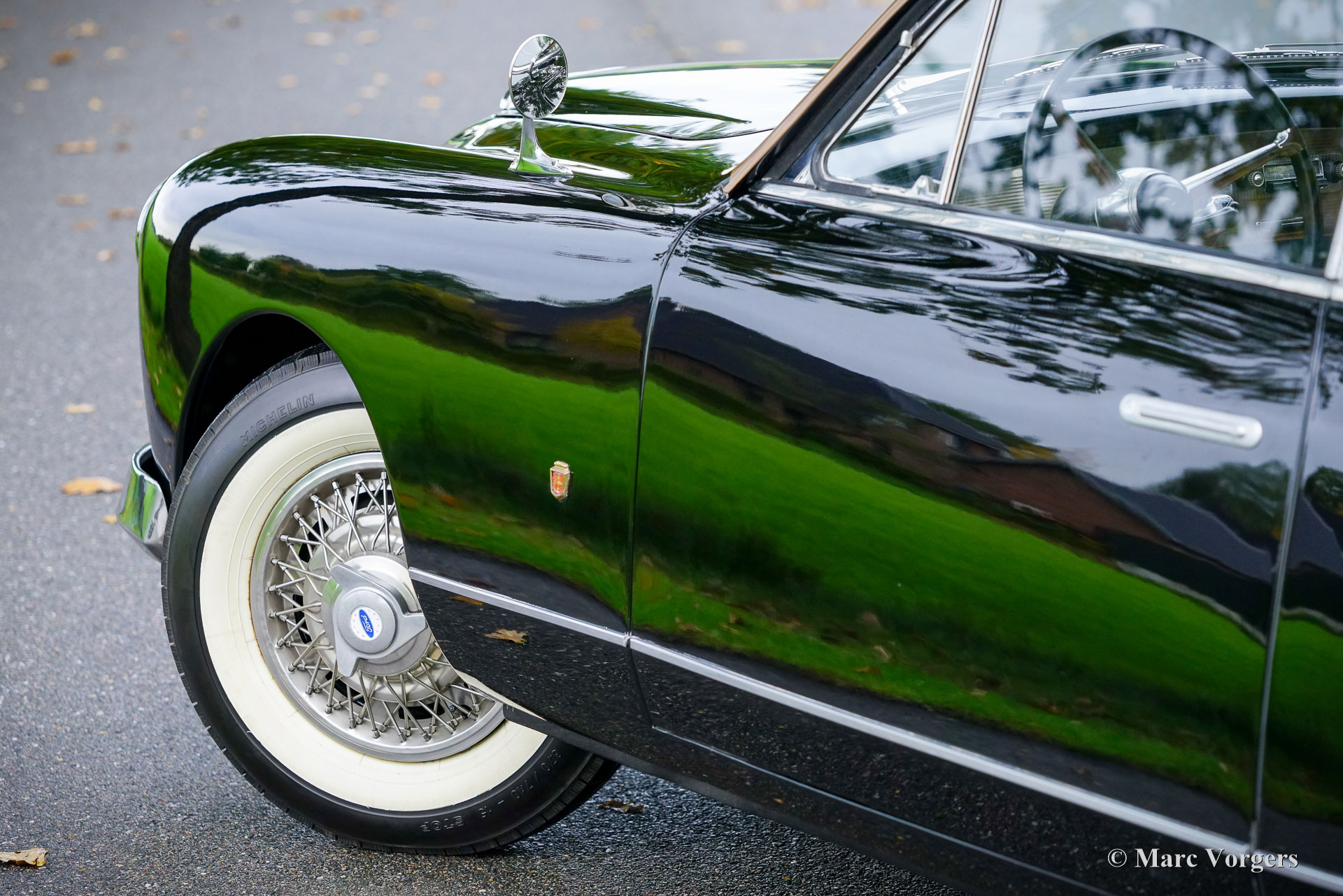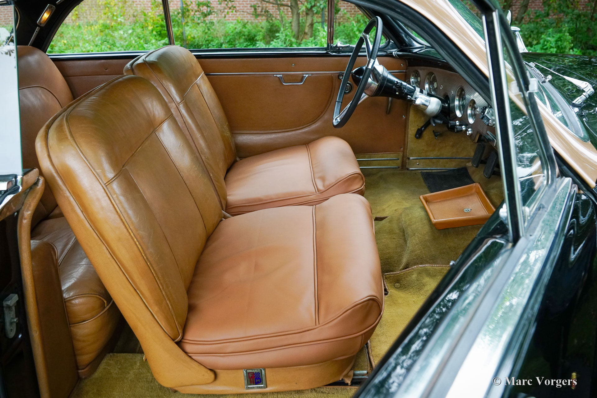 Ford Comète, year 1954. Type FBAFM. Colour black with a bronze roof top and a cognac brown leather interior. The rare and beautiful Ford Comète was produced at F.A.C.E.L. in Paris, the chassis with V8 engines came from the Ford France (SAF) works in Poissy. On a visit at the French factory Henry Ford was struck by the beauty, elegance, and finish of the French built Comète and had a few shipped to the USA for family use. Prince Rainier of Monaco, owner of a FACEL Bentley bought a Comète for his spouse Grace Kelly. The Ford Comète was voted ‘the most elegant European car’ by a jury of twenty Parisian personalities. Jean Daninos, owner of F.A.C.E.L. was also impressed by looks and grace of the car, the Comète inspired him to design his legendary Facel Vega car. This Ford Comète is 1954 13 cv model with the larger 2355 cc (80 hp) Aquillon V8 engine mated to an optional Cotal electric-hydraulically operated four speed gearbox with an intriguing ‘joy stick’ type column shifter. A total of 2265 Comètes was built of which only a small number were equipped with the electric-hydraulically operated Cotal four-speed gearbox.