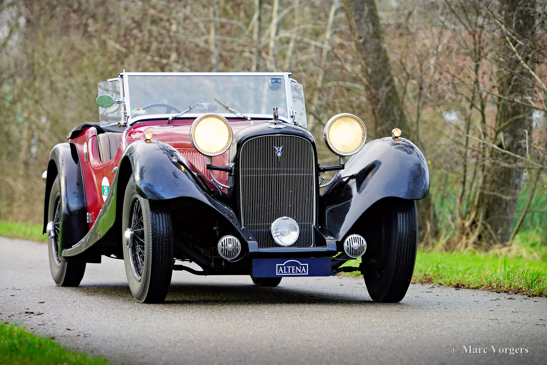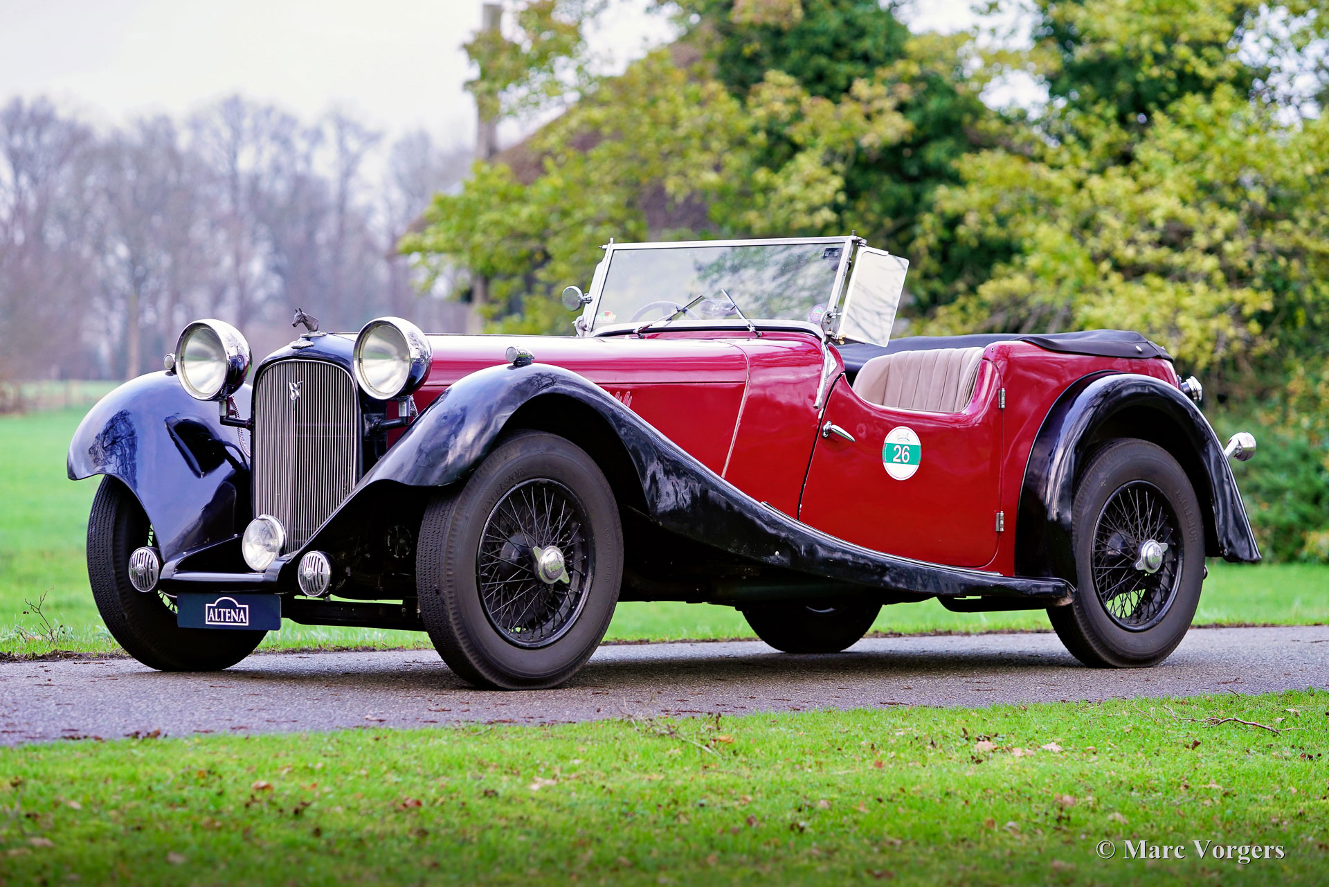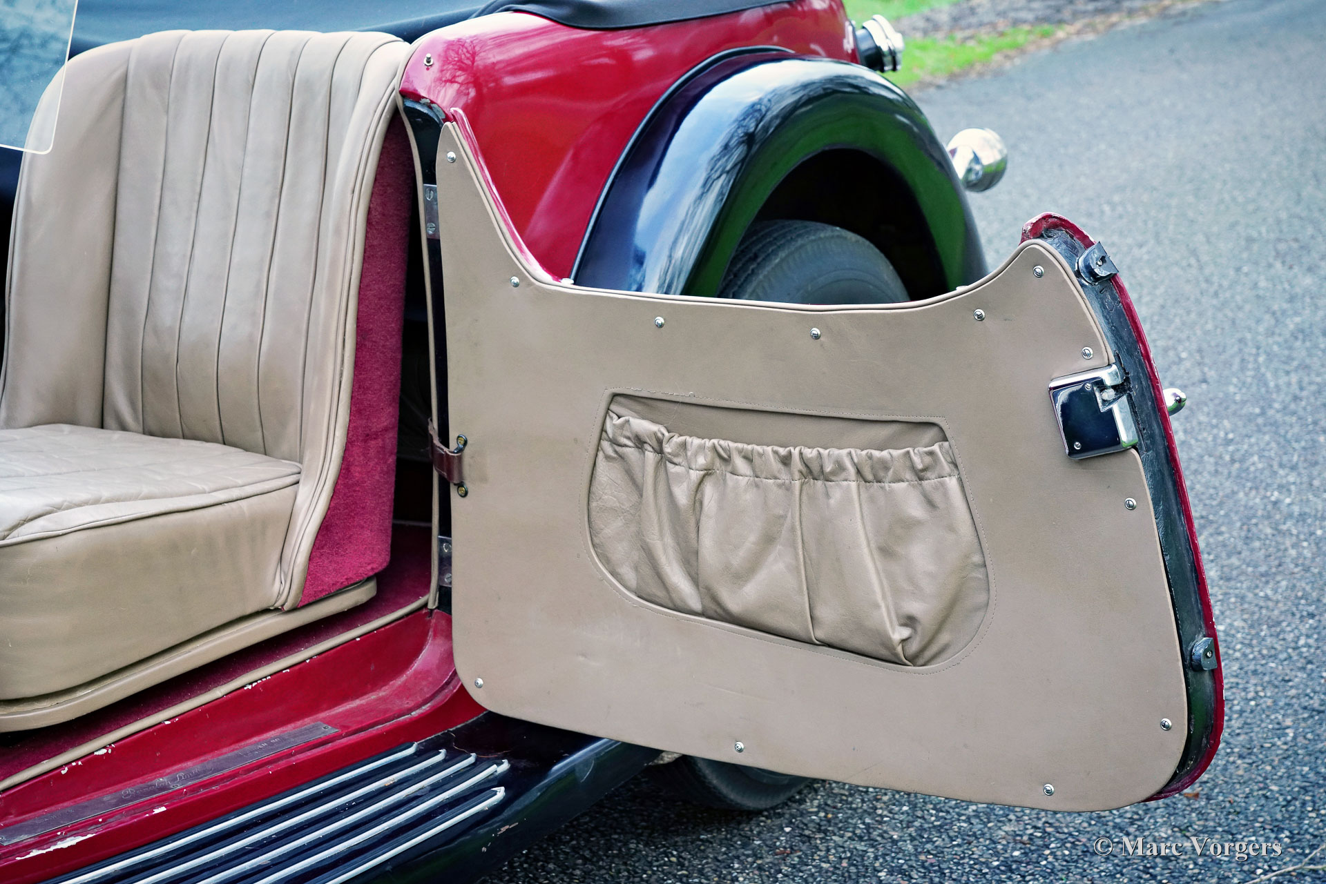 HE (Herbert Engineering) ‘Nelson’ V8 special, year 1931. Colour dark red (burgundy) over black combined with a beige leather interior and a black hood. Herbert Engineering is one of the many small pre-WW2 British car manufacturers who have been forgotten for many decades now. The H.E. firm closed shortly after the introduction of this model. H.E. motorcars are very, very rare so we are proud to present this very interesting special to you. The car comes with a documented history of 90 years! Most interesting is the fact that the second owner, a Mr. Nelson, exchanged the original six cylinder in-line engine for an American V8 power-plant in 1934! Not the first British car featuring an American 8-cylinder engine, that credit goes to the 1933 Railton Terraplane. But one of the first British cars (and specials) fitted with an American V8 engine! The engine is a 3.6 Litre Ford ‘flat head’ V8 which is mounted very low in the chassis! This chassis is already ‘underslung’ at the rear (axle mounted over the chassis). The final drive was also up rated with a higher ratio and the mechanical cable operated brakes were exchanged for a hydraulic system. Six years ago, the engine was fitted with new high compression cylinder heads and electronic ignition. Over the last five years the car was serviced at Altena Classic Service, and much money was invested to bring and keep the car mechanically and technically up to date. The owner has participated in great historic driving events like the 2022 Via Iberica and the 2023 Herzberger Trophy without any problems. This unique HE Nelson V8 special surely looks purposeful, the bonnet forms almost half of the length of the car! This is a very remarkable special with a wonderful vintage patina. The automobile is currently registered in the Netherlands and can be imported to and registered in any country.
