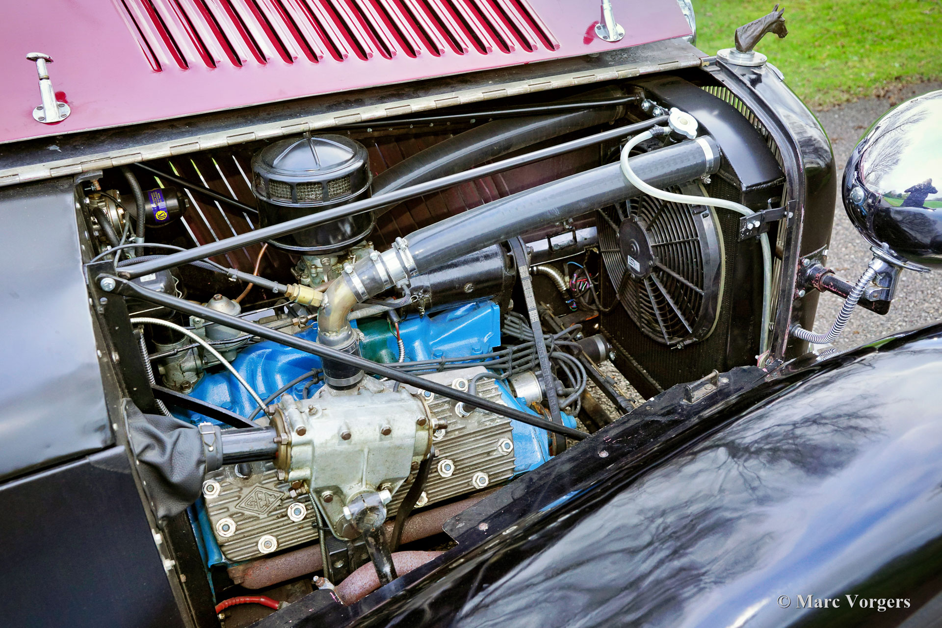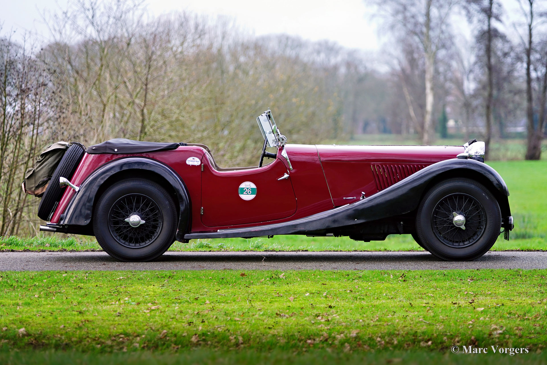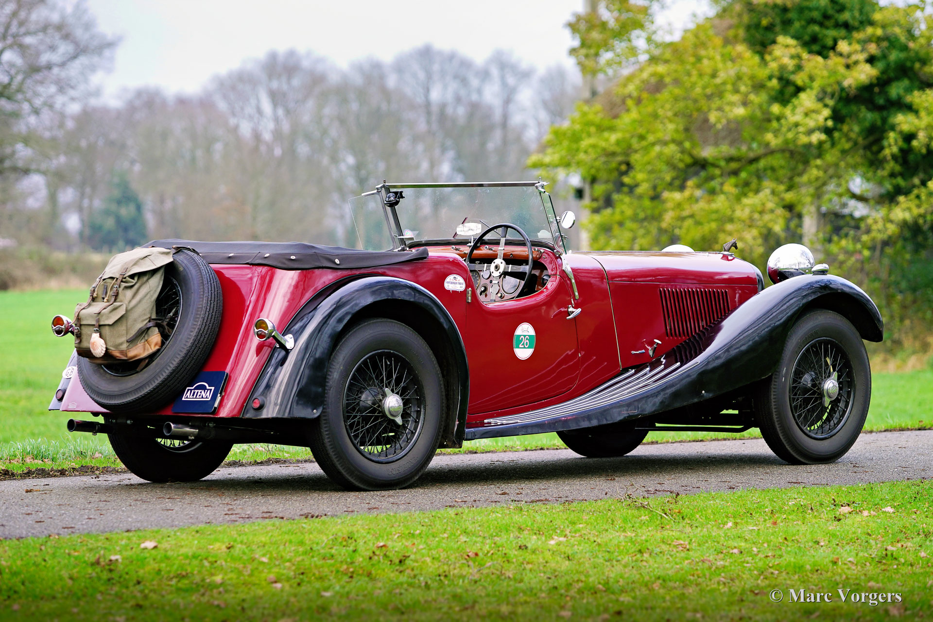 HE (Herbert Engineering) ‘Nelson’ V8 special, year 1931. Colour dark red (burgundy) over black combined with a beige leather interior and a black hood. Herbert Engineering is one of the many small pre-WW2 British car manufacturers who have been forgotten for many decades now. The H.E. firm closed shortly after the introduction of this model. H.E. motorcars are very, very rare so we are proud to present this very interesting special to you. The car comes with a documented history of 90 years! Most interesting is the fact that the second owner, a Mr. Nelson, exchanged the original six cylinder in-line engine for an American V8 power-plant in 1934! Not the first British car featuring an American 8-cylinder engine, that credit goes to the 1933 Railton Terraplane. But one of the first British cars (and specials) fitted with an American V8 engine! The engine is a 3.6 Litre Ford ‘flat head’ V8 which is mounted very low in the chassis! This chassis is already ‘underslung’ at the rear (axle mounted over the chassis). The final drive was also up rated with a higher ratio and the mechanical cable operated brakes were exchanged for a hydraulic system. Six years ago, the engine was fitted with new high compression cylinder heads and electronic ignition. Over the last five years the car was serviced at Altena Classic Service, and much money was invested to bring and keep the car mechanically and technically up to date. The owner has participated in great historic driving events like the 2022 Via Iberica and the 2023 Herzberger Trophy without any problems. This unique HE Nelson V8 special surely looks purposeful, the bonnet forms almost half of the length of the car! This is a very remarkable special with a wonderful vintage patina. The automobile is currently registered in the Netherlands and can be imported to and registered in any country.