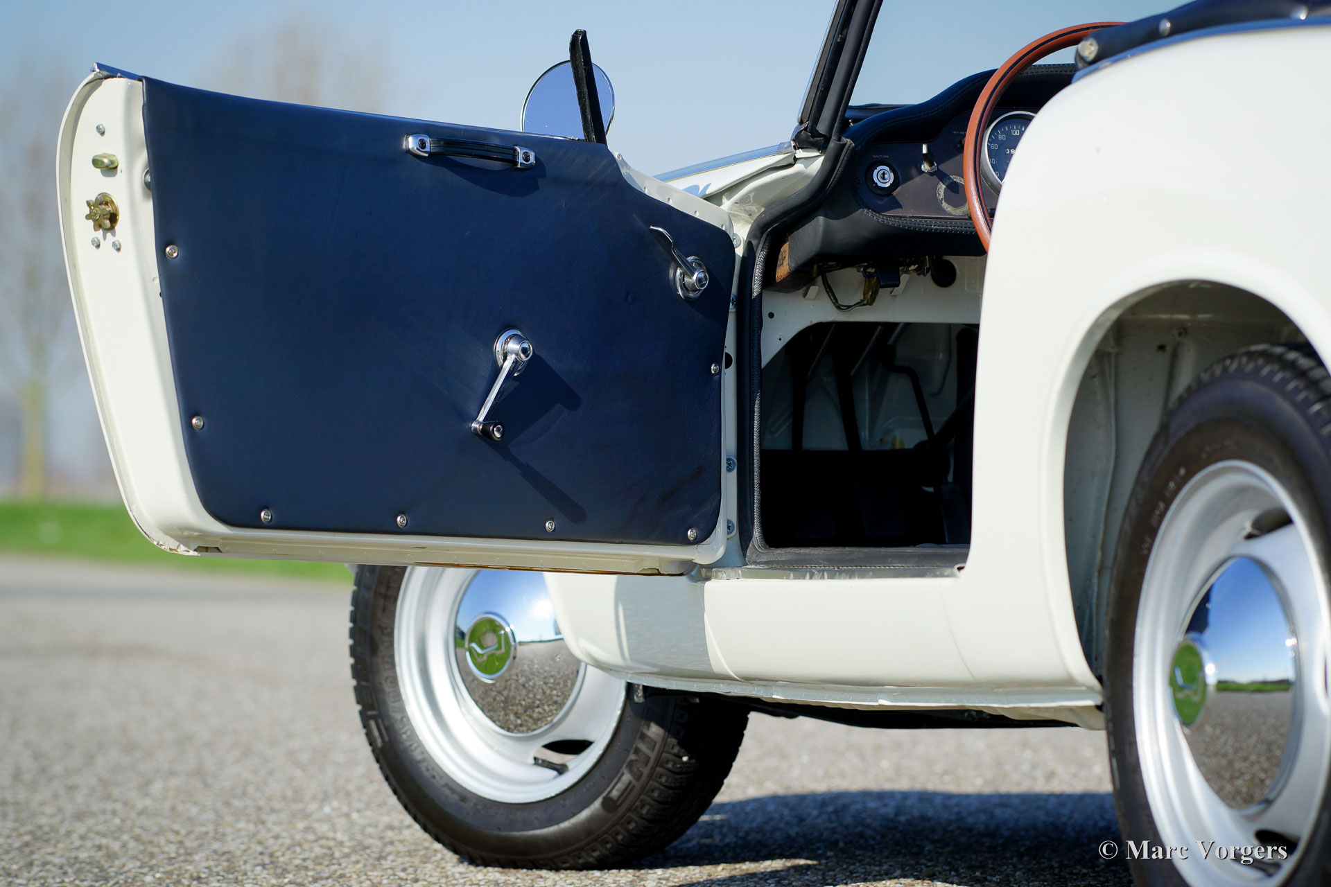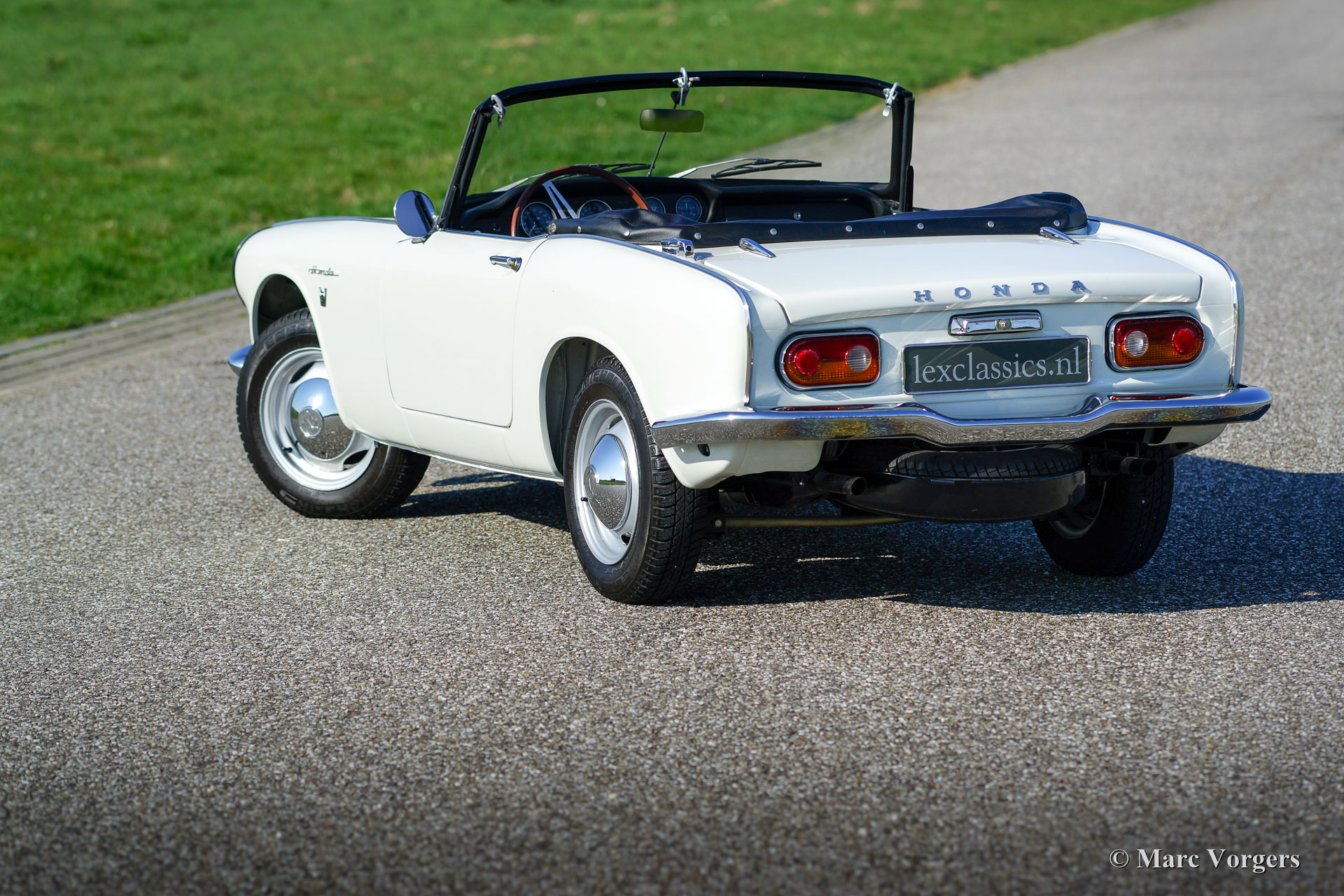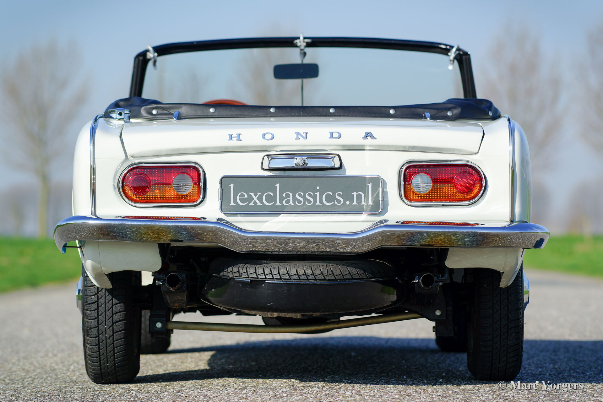 Honda S800 cabriolet, year 1967. Colour white with a black leather interior and a black soft-top. This gorgeous Honda S800 cabriolet was sold new in the Netherlands. This S800 was extensively restored a few years ago. The car is in superb top-condition (concours) and it shows all the original details. This Honda S800 comes from a top-quality Dutch Honda collection which is being sold by Lex Classics.