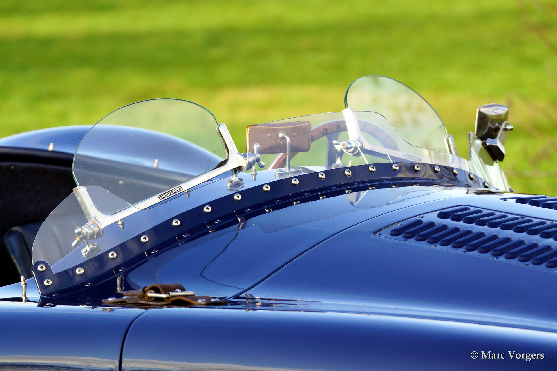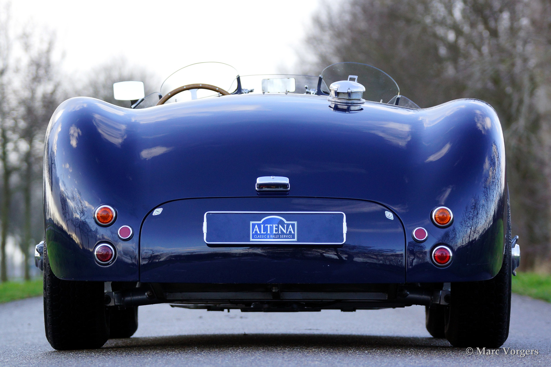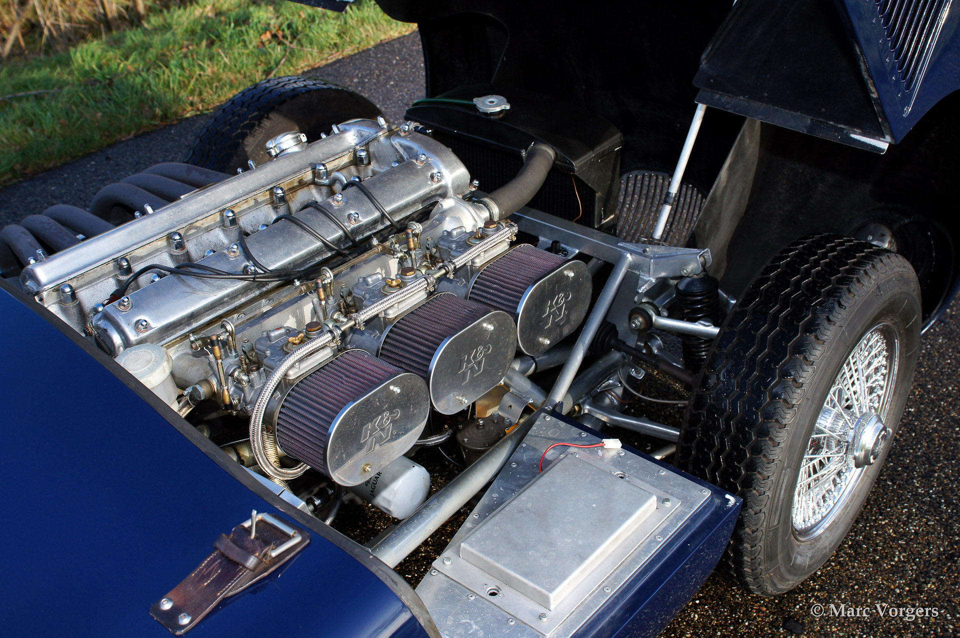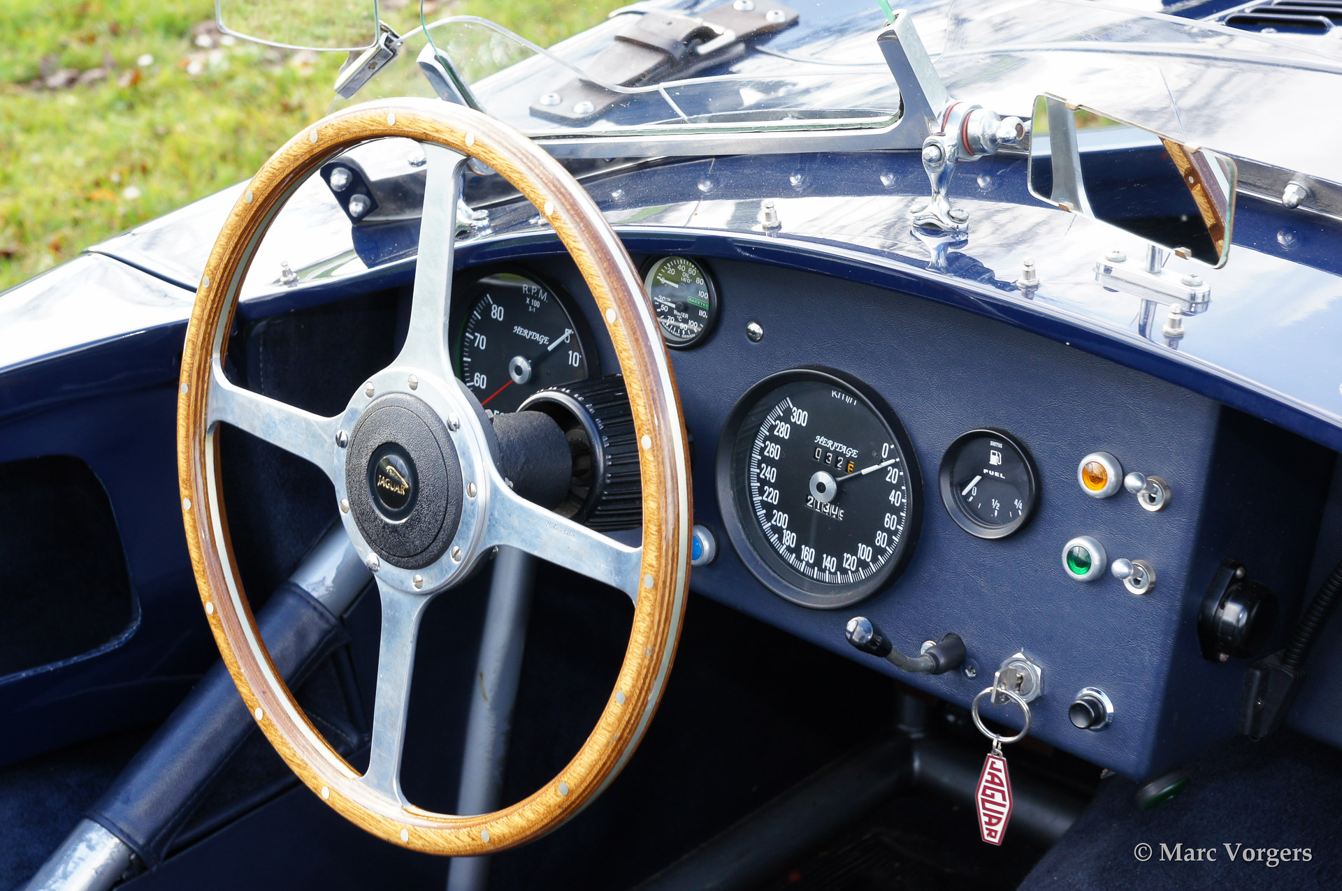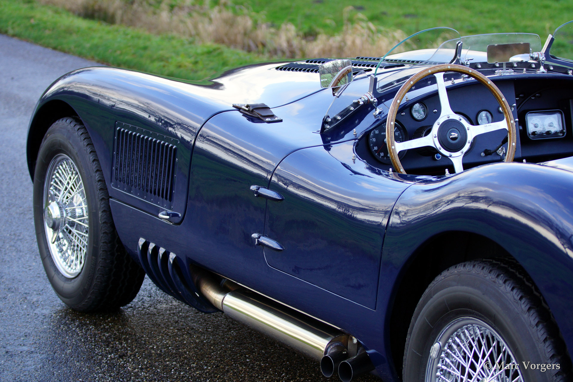 Jaguar C-type by Heritage, year 1968. Colour dark blue with a blue leather interior. This fantastic C-type recreation is in superb condition and the car drives very impressive. Only 53 original Jaguar C-type have been built. Pricing in the millions (if one for sale) so it is not hard to imagine why good recreations are sought after. The Heritage C-type recreations are being built for many years now. These excellent cars are built under auspices of Jaguar and they may carry the Jaguar logo. The Heritage C-type features a 4.2 Litre straight six engine and three twin choke Weber carburettors. A capcity of 230 bhp. and a weight of 1060 kg. is a splendid recipe for loads of sheer driving fun!