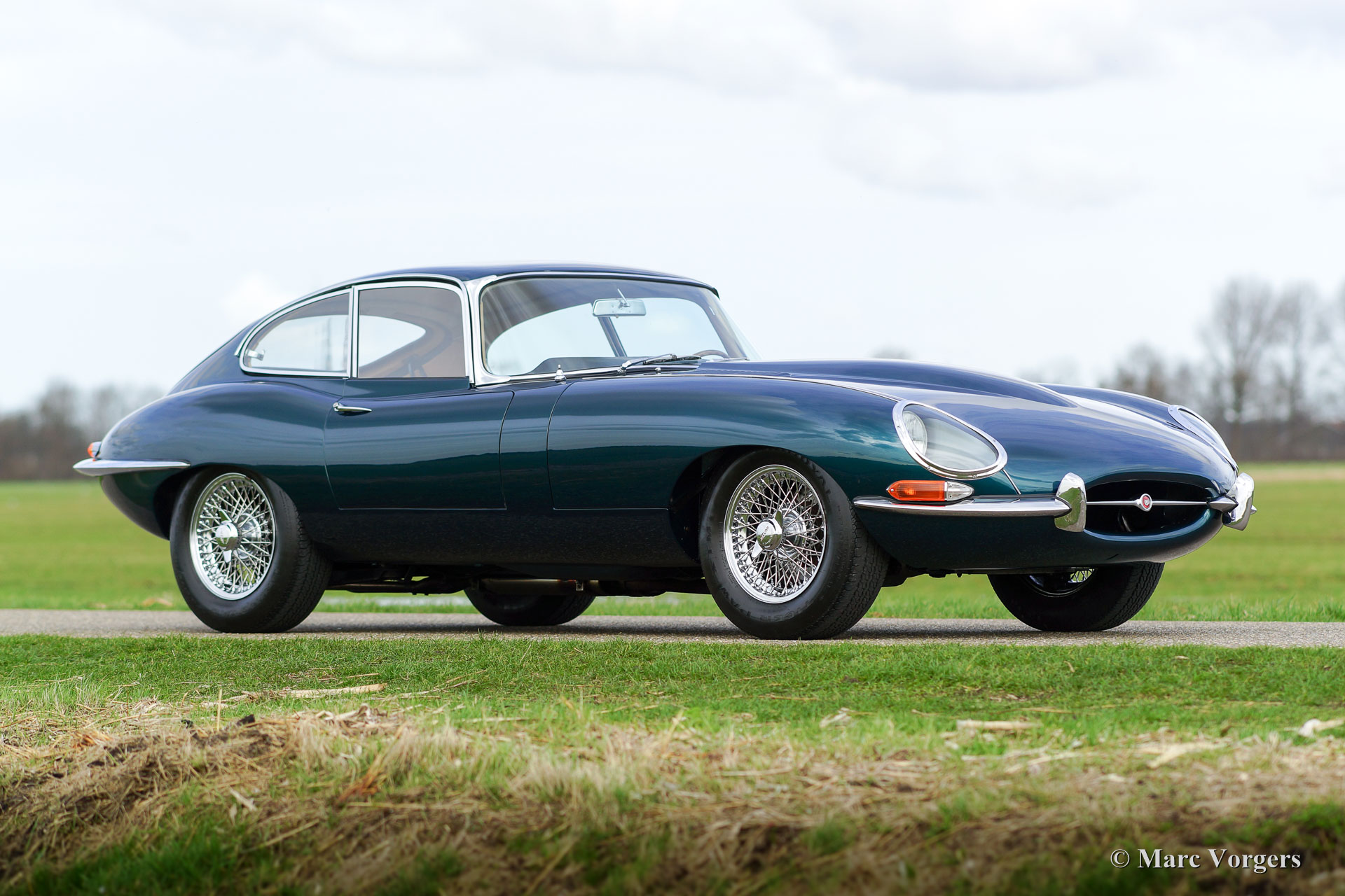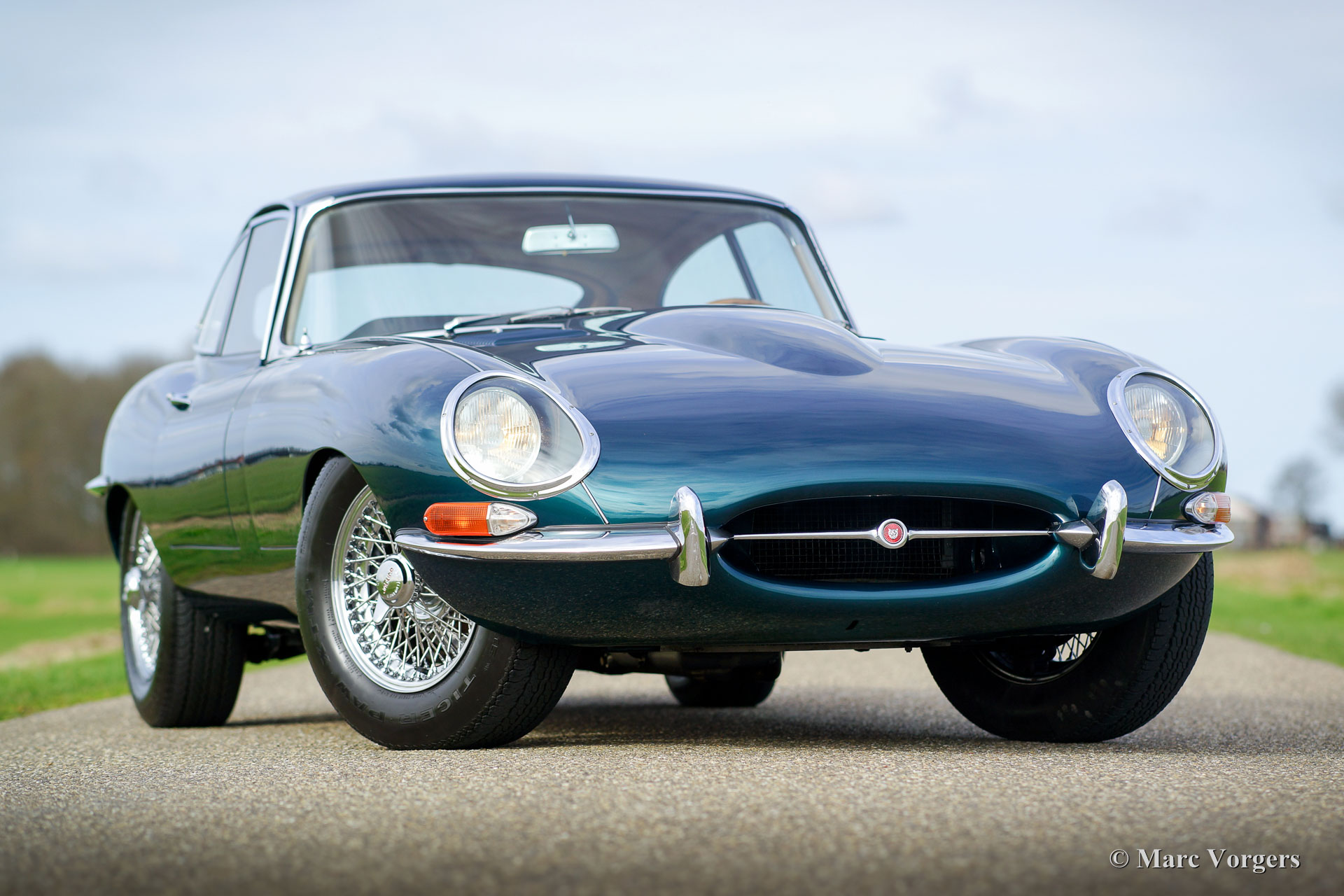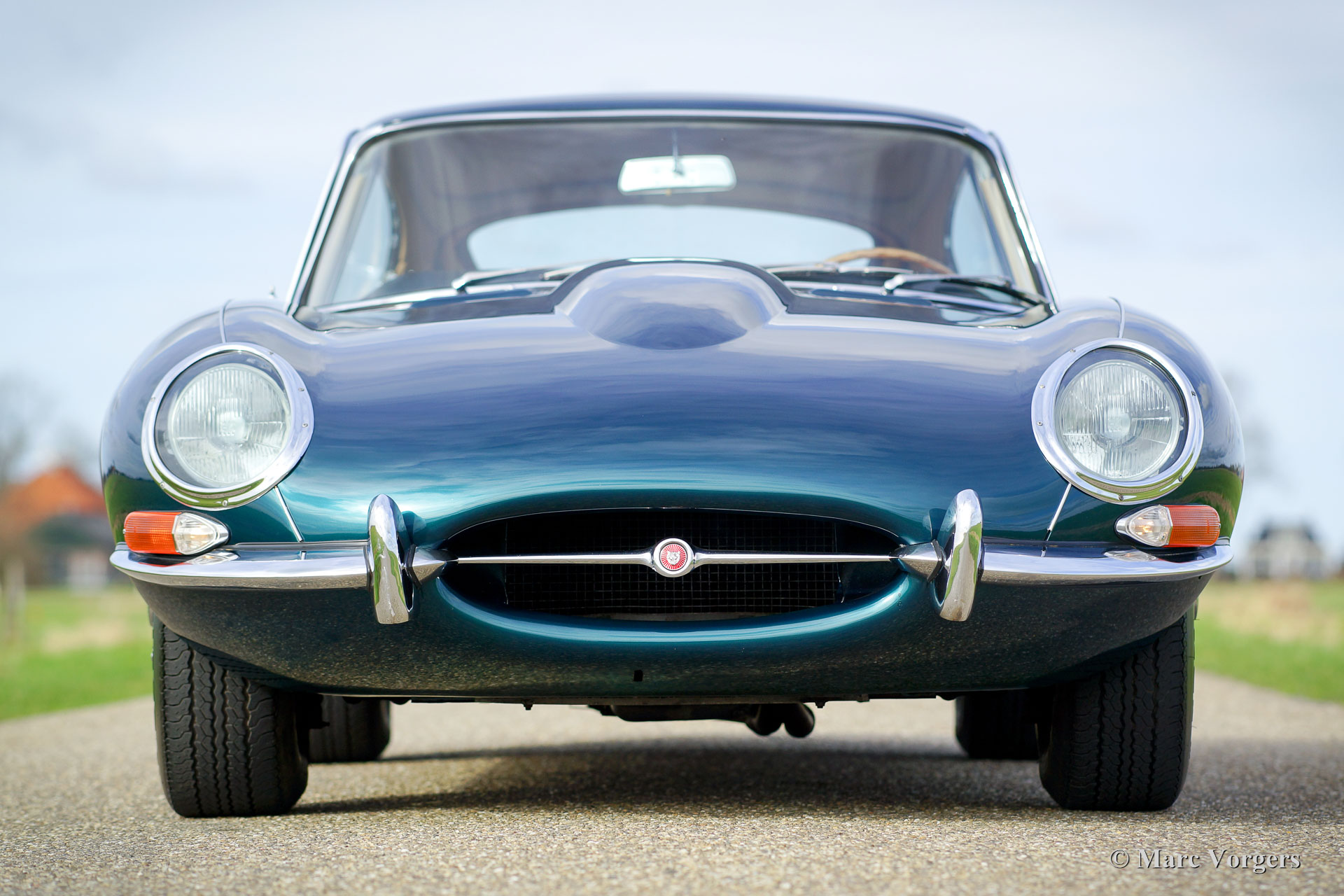 The design of the E-Type series as it was introduced in 1961 is of almost unearthly beauty. Look at all the refined details: the bonnet, the headlights, the back lights, the recess for the wheel housing and the back side, and you will realize that you are looking at absolute, timeless beauty in automobile design.
