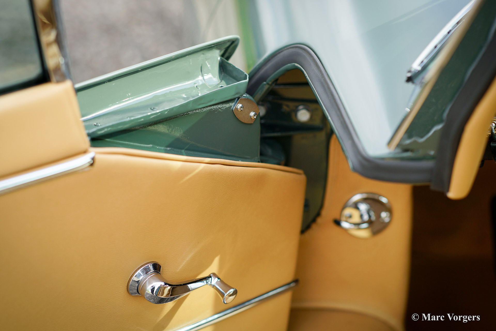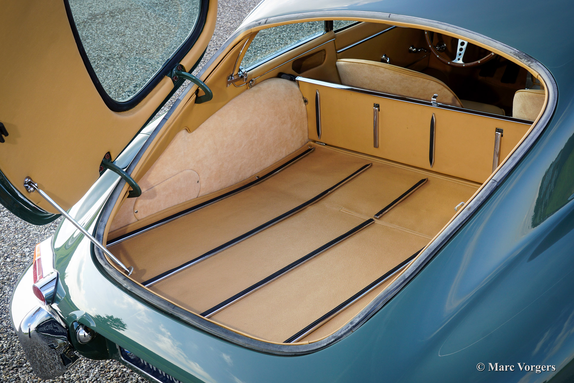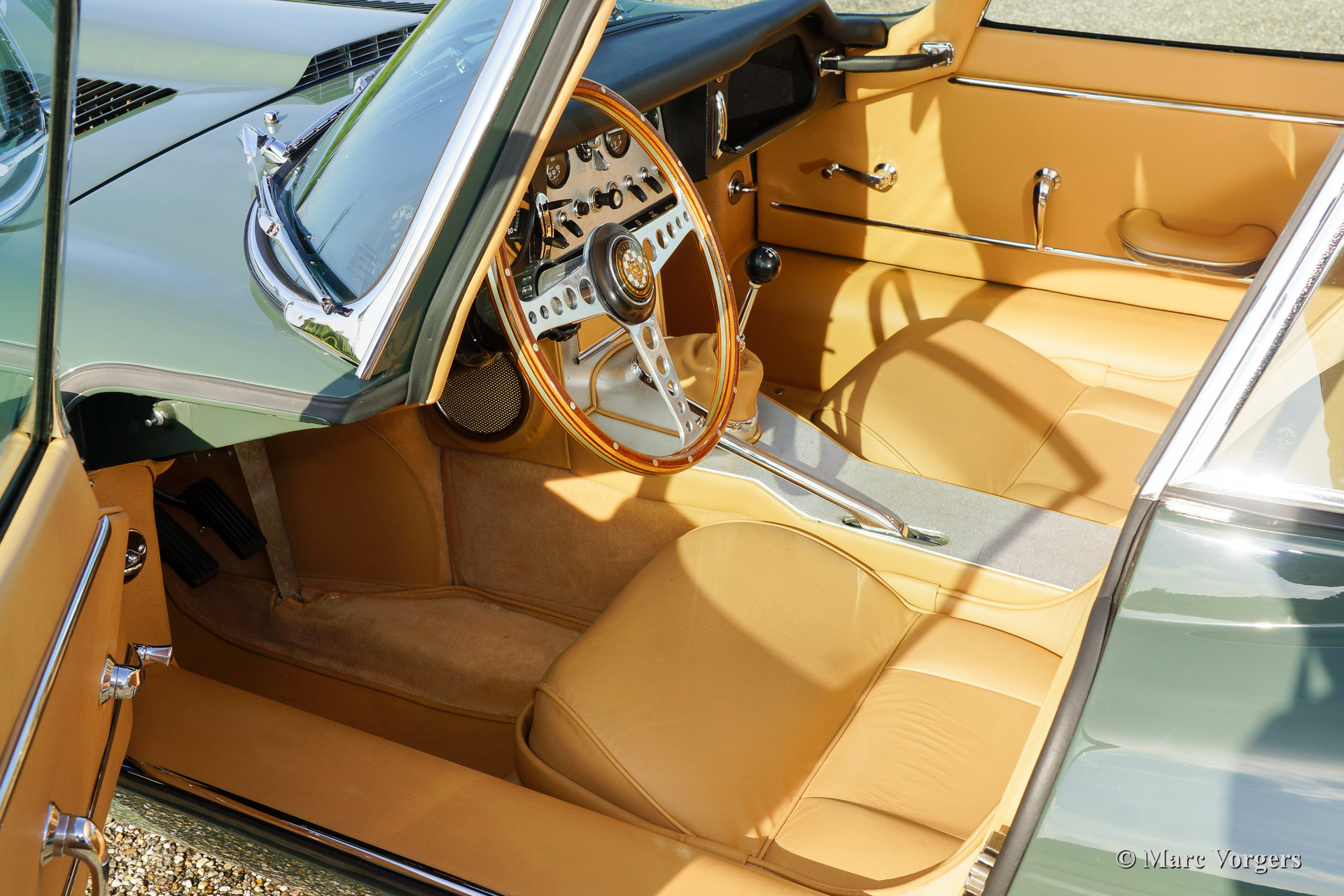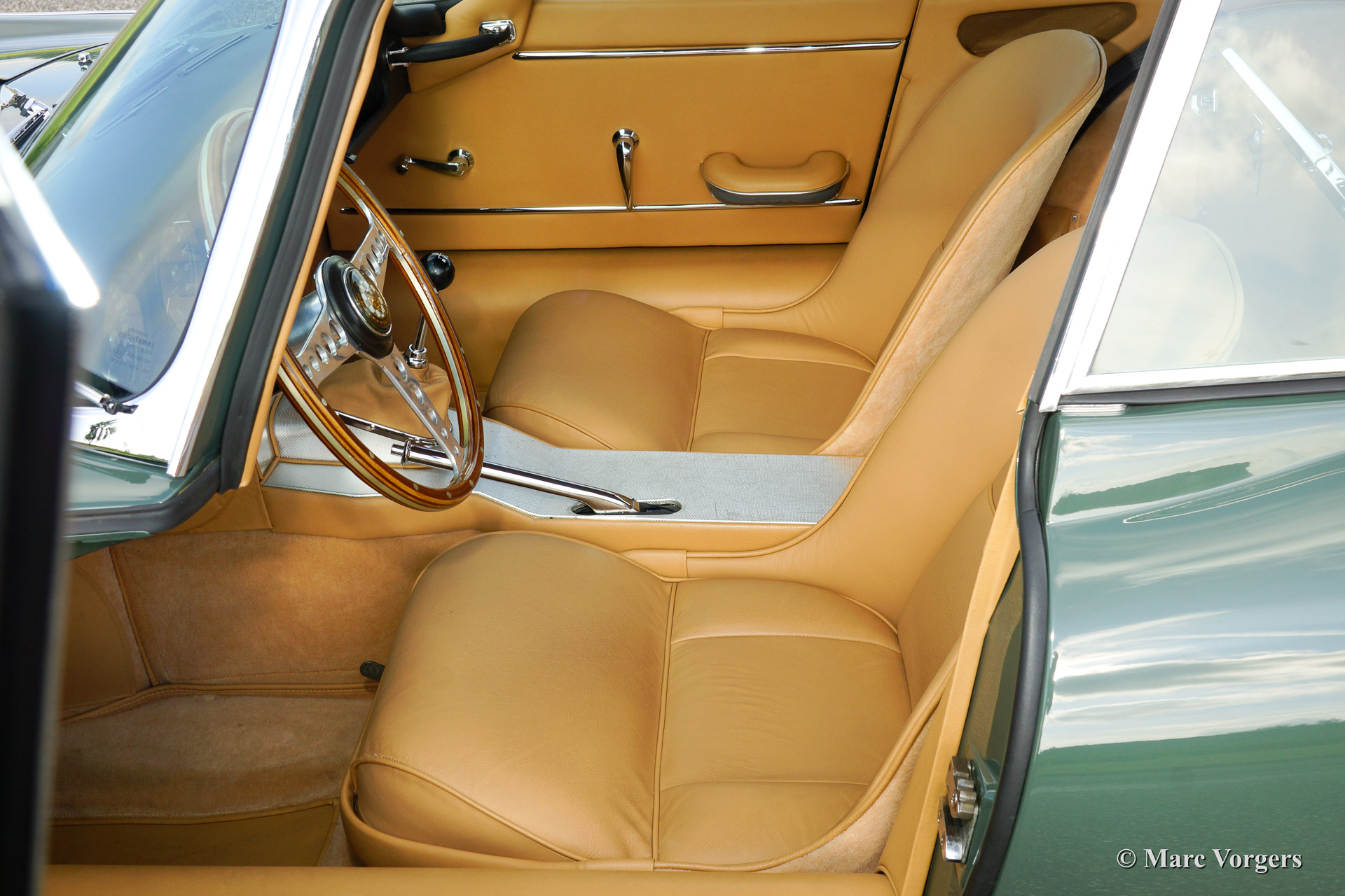 Jaguar E-Type (XK-E) 3.8 Litre FHC series 1, year 1963. Chassis number 8886XX, engine number: RA2060-X, matching numbers, a Heritage certificate is present. Colour ‘Sherwood green’ with a beige leather interior and beige carpet. This magnificent Jaguar e-type has been extensively and perfectly restored, to very high standards, over the last years. The restoration has been completed recently. This fabulous Jaguar E-type is in concours (show) condition! An extensive photo reportage and invoices concerning the restoration are present. The colour Sherwood green is seldom seen and very exclusive, this shade of green combines beautifully with the beige interior and the exterior bright-work. From 1961 until 1964 a total of 7670 Jaguar E-type FHC cars have been built. This fine e-type features chrome wire wheels, chrome knock off type wheel nuts, steering wheel with wood rim, a full Stainless Steel exhaust system, a high capacity cooling fan and wider 215/65/R15 tyres. This is a fabulous specimen of in our opinion the most beautiful car ever designed.
