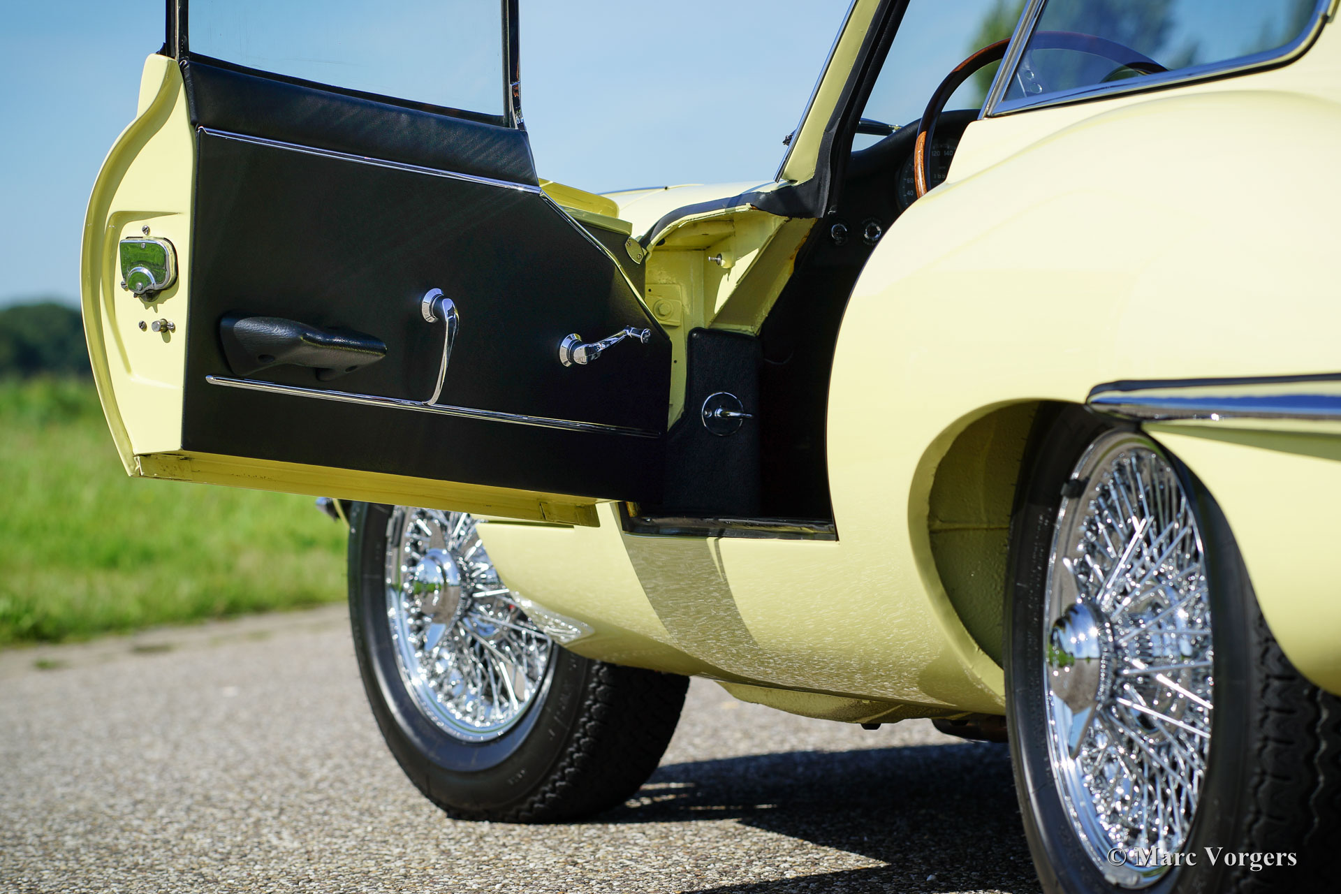Jaguar E-type 3.8 Litre FHC series 1, year 1963. Colour ‘Primrose yellow’ with a black leather interior and black carpet. This fantastic Jaguar E-type was sold new in Milan (Italy) on 18 July 1963. The car spent all its days in Italy until it was recently acquired by Lex Classics. In Italy the Jaguar was extensively and beautifully restored to high standards, the automobile is in concours condition! A Heritage certificate is present, the car has ‘matching numbers’.