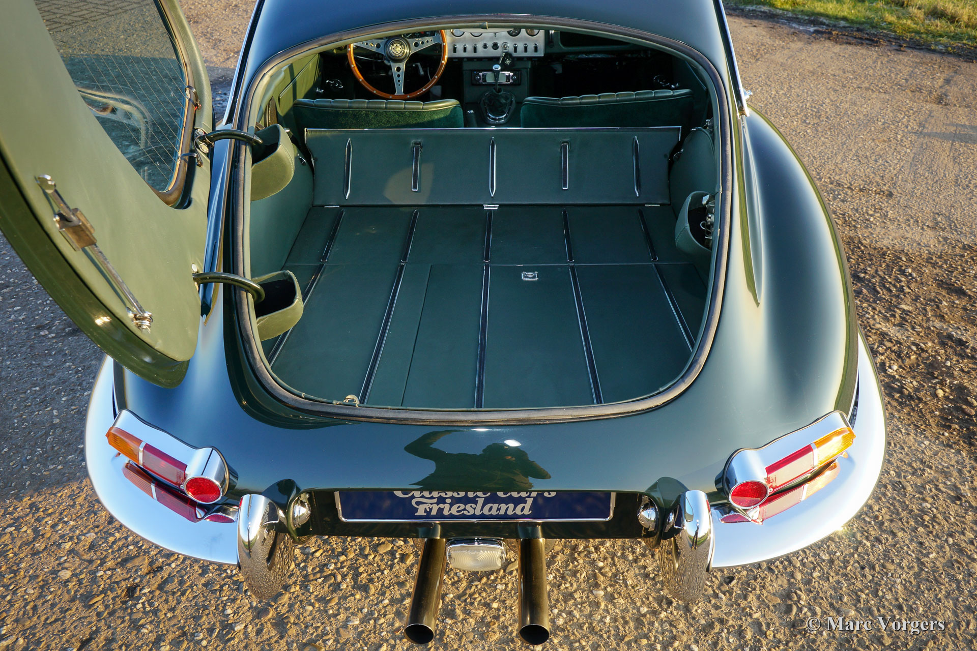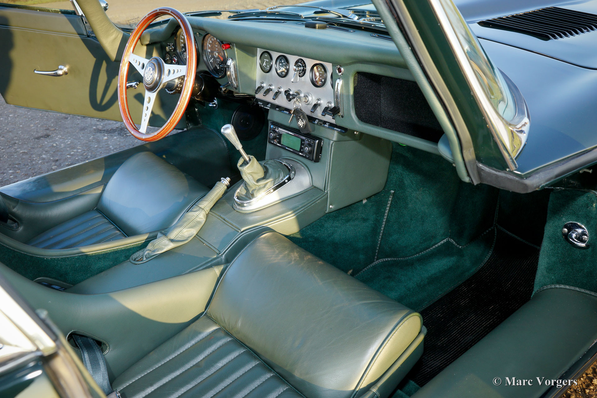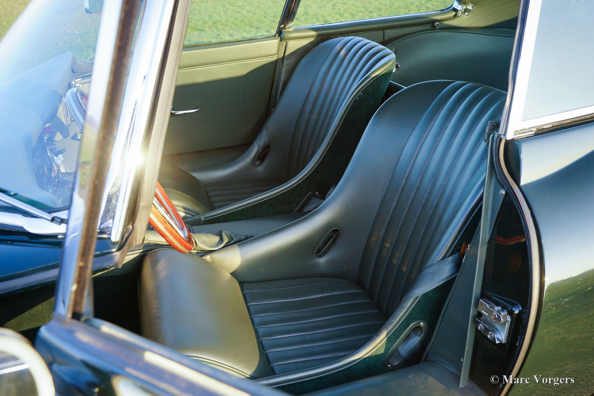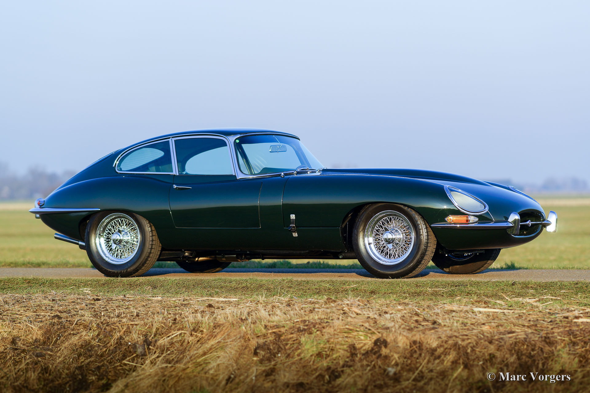 Jaguar E-type 3.8 Litre FHC series 1, year 1963. Colour British Racing Green with a green leather interior and green carpet. This magnificent Jaguar E-type Fixed Head Coupe (FHC) was extensively and body-off restored by Paul Webb Motors of Great Britain. The automobile is in superb top condition; concourse! The engine is factory original and the number corresponds with the chassis number: ‘matching numbers’. The gearbox is a splendid Getrag 5-speed unit. This early 1963 E-type (or XK-E as it is named in the USA) features special bucket seats, chrome wire wheels and Firestone tyres. This Jaguar E-type is a TOP specimen and the car drives perfectly!