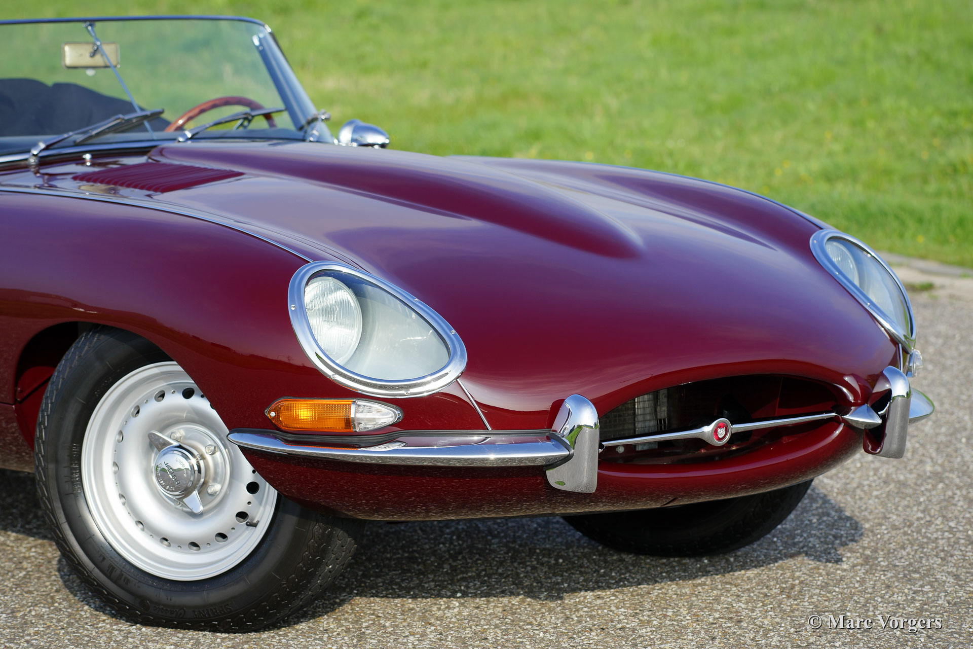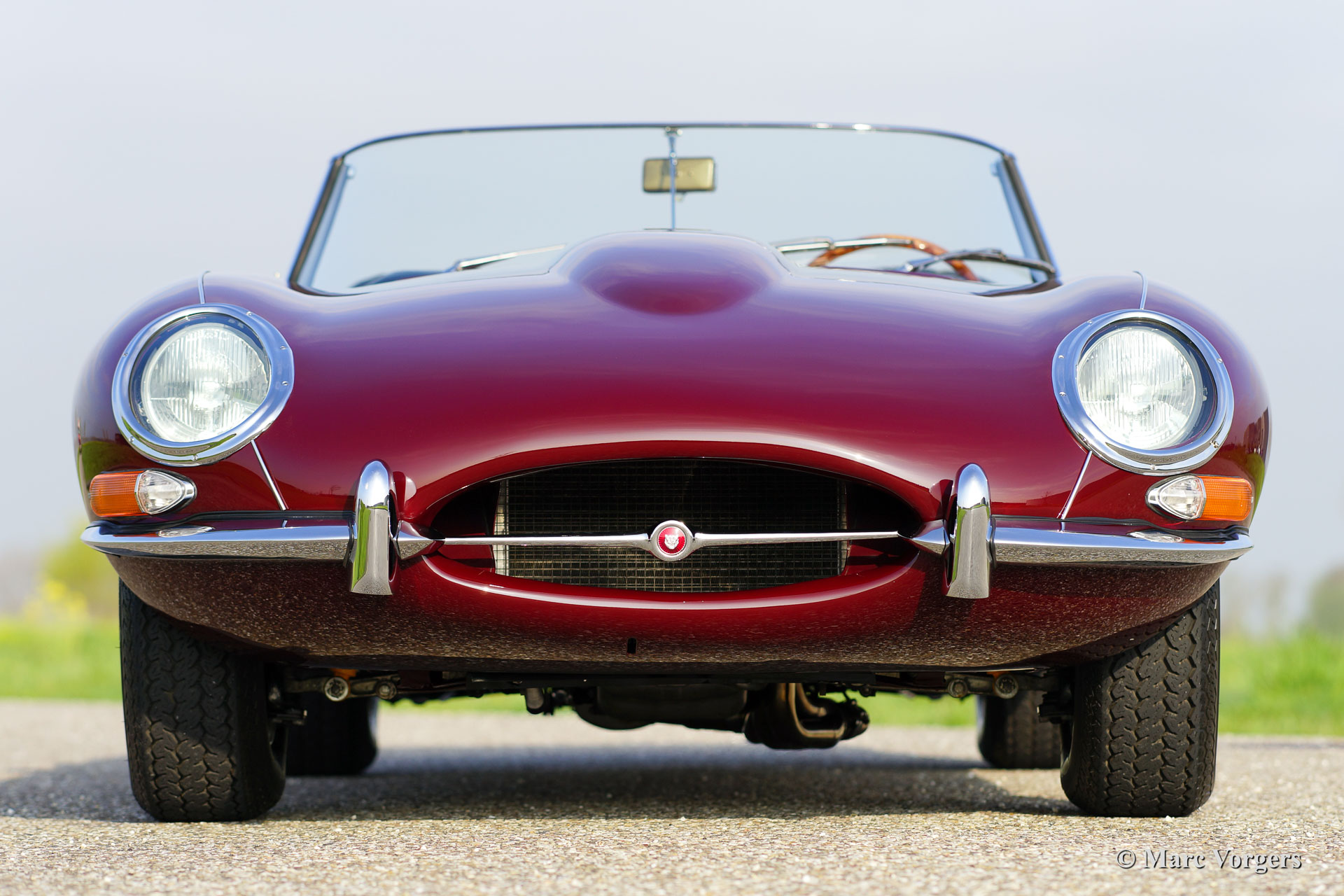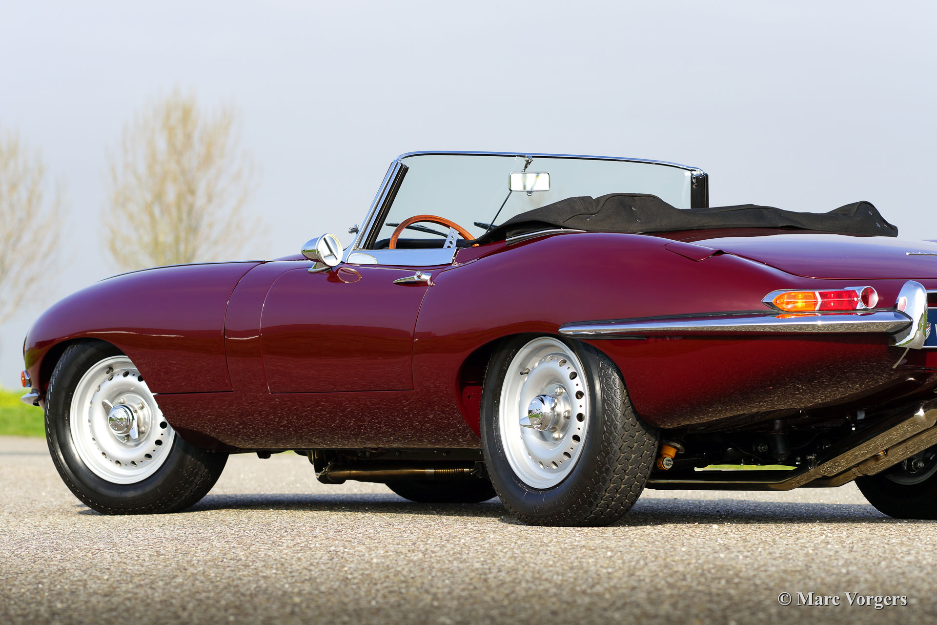 Jaguar E-type 3.8 Litre OTS ‘flat floor’, year 1961. Chassis number: 8758XX, engine number: R2110-X. Colour Maroon red with a black leather interior and black carpet. Black soft top and a black hood cover. This gorgeous Jaguar E-type is an early ‘flat floor’ model. The automobile was extensively ‘body off’ restored to perfection in the year 2006. The engine was modified to run on lead free petrol. In the year 2015 the bodywork was professionally and perfectly given new paint. A photo reportage of the restoration is present. Over the last years this fine E-type was serviced at Lex Classics. All service jobs have been documented properly. The automobile features beautiful and robust ‘Dunlop’ alloy wheels. This type was also used on the Jaguar D-type racers and on ‘lightweight’ versions of the Jaguar E-type. This is a perfect driving early Jaguar E-type roadster in superb top condition.