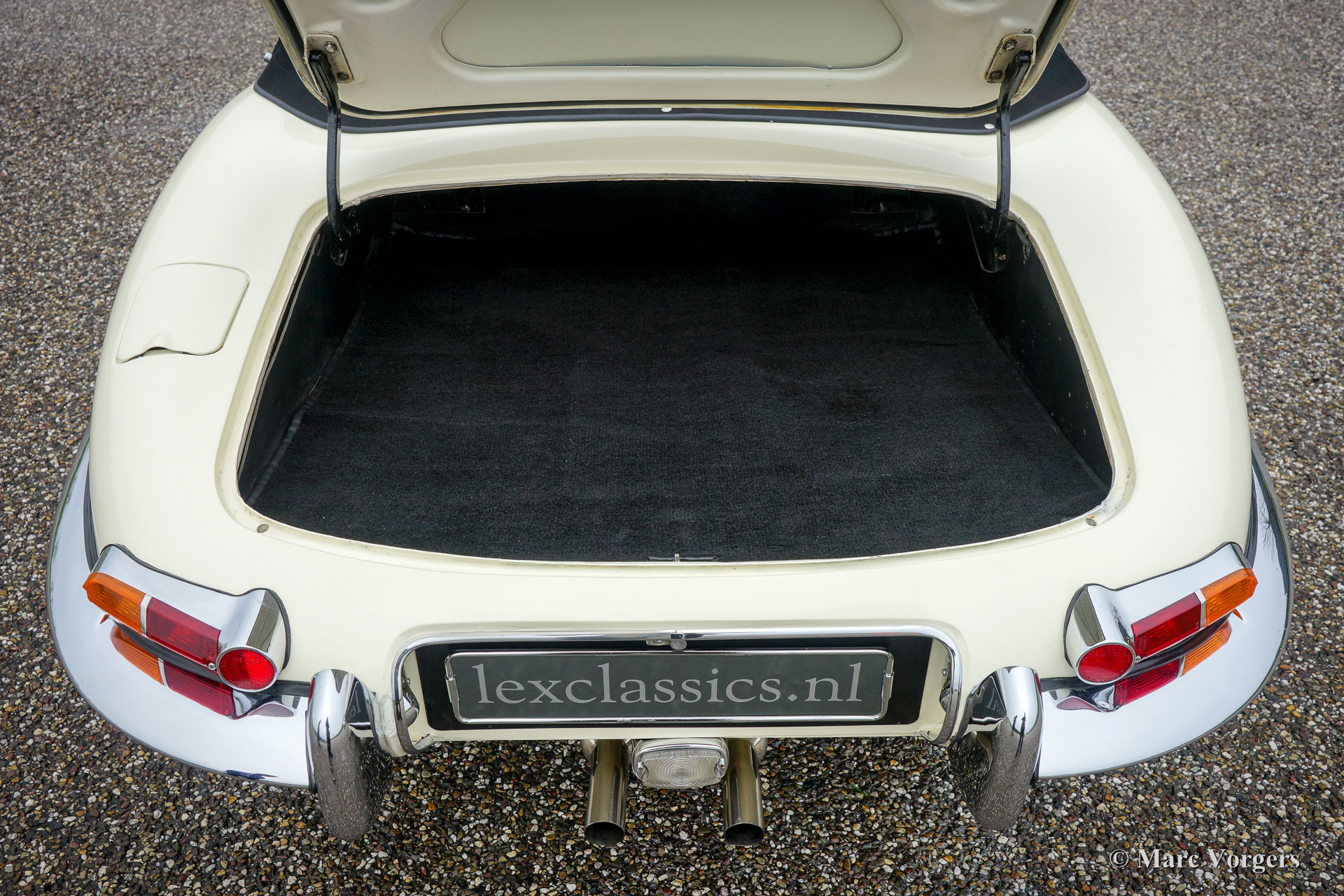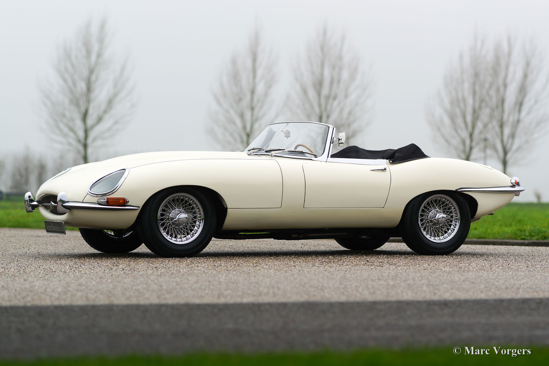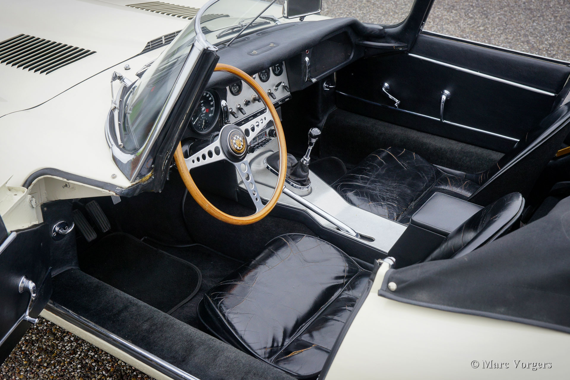 Jaguar E-Type 3.8 Litre OTS series 1, year 1962. Colour Old English White with a black leather interior and black carpet. Black mohair hood and hood-cover. This magnificent Jaguar E-Type OTS (Open Two Seater, also named Roadster) was sold new by Stanley’s Motor Services in Sheffield to an American citizen who had the car delivered in Monaco. The original sales invoice is stull present! In the year 1973 the car switched hands and was exported to Great Britain. In 2005 the car was purchased by a Jaguar enthusiast from the Netherlands. This beautiful Jaguar E-Type is in a very good driver condition showing slight signs of use and age. The car drives superbly, and the powerful 3.8 Litre engine is a sheer delight! The E-Type features chrome wire wheels, chrome ‘knock-off’ wheel-nuts, a Stainless-Steel exhaust and electronic ignition.