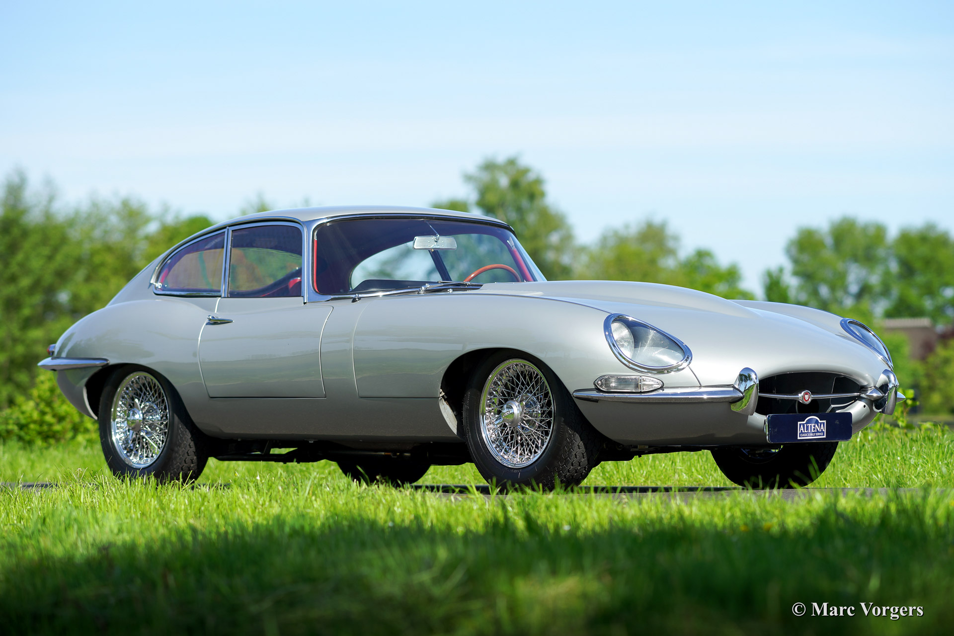 Jaguar E-type 4.2 Litre series 1 FHC, year 1967. Chassis number 1E33695, matching numbers. Colour silver metallic with a red leather interior. This magnificent E-type Fixed Head Coupe was imported to the Netherlands in the year 2002. The automobile was extensively restored to perfection. This Jaguar E-type is in superb (excellent++) condition; concours! An extensive photo reportage of the restoration is present.