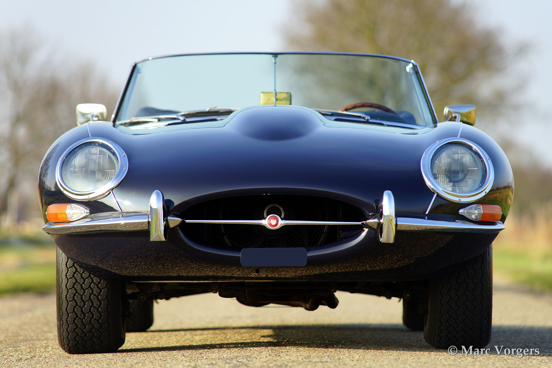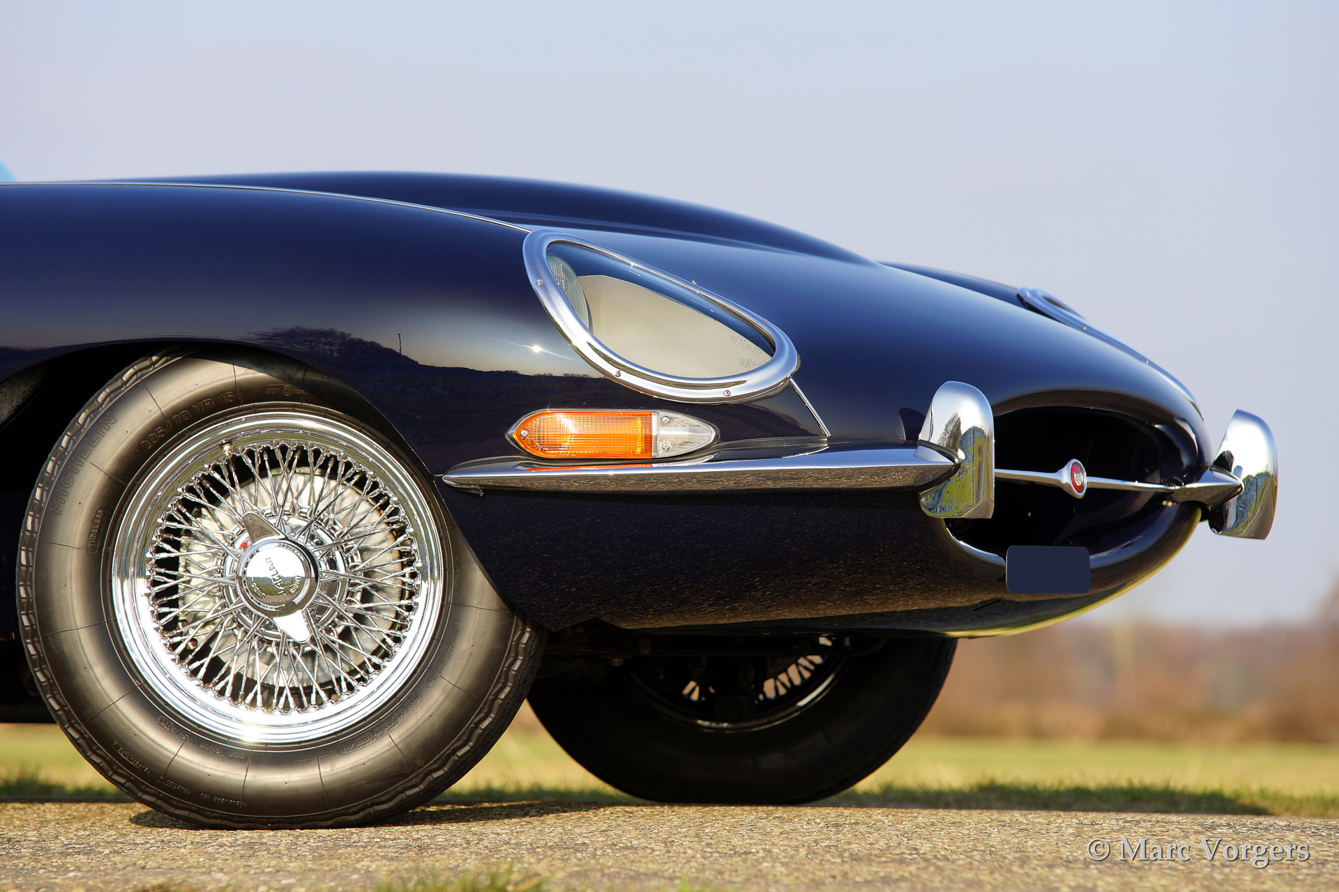 The design of the E-Type series as it was introduced in 1961 is of almost unearthly beauty. Look at all the refined details: the bonnet, the headlights, the back lights, the recess for the wheel housing and the back side, and you will realize that you are looking at absolute, timeless beauty in automobile design.
