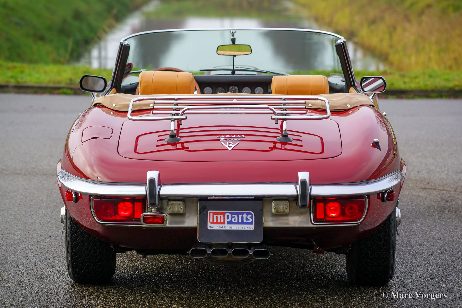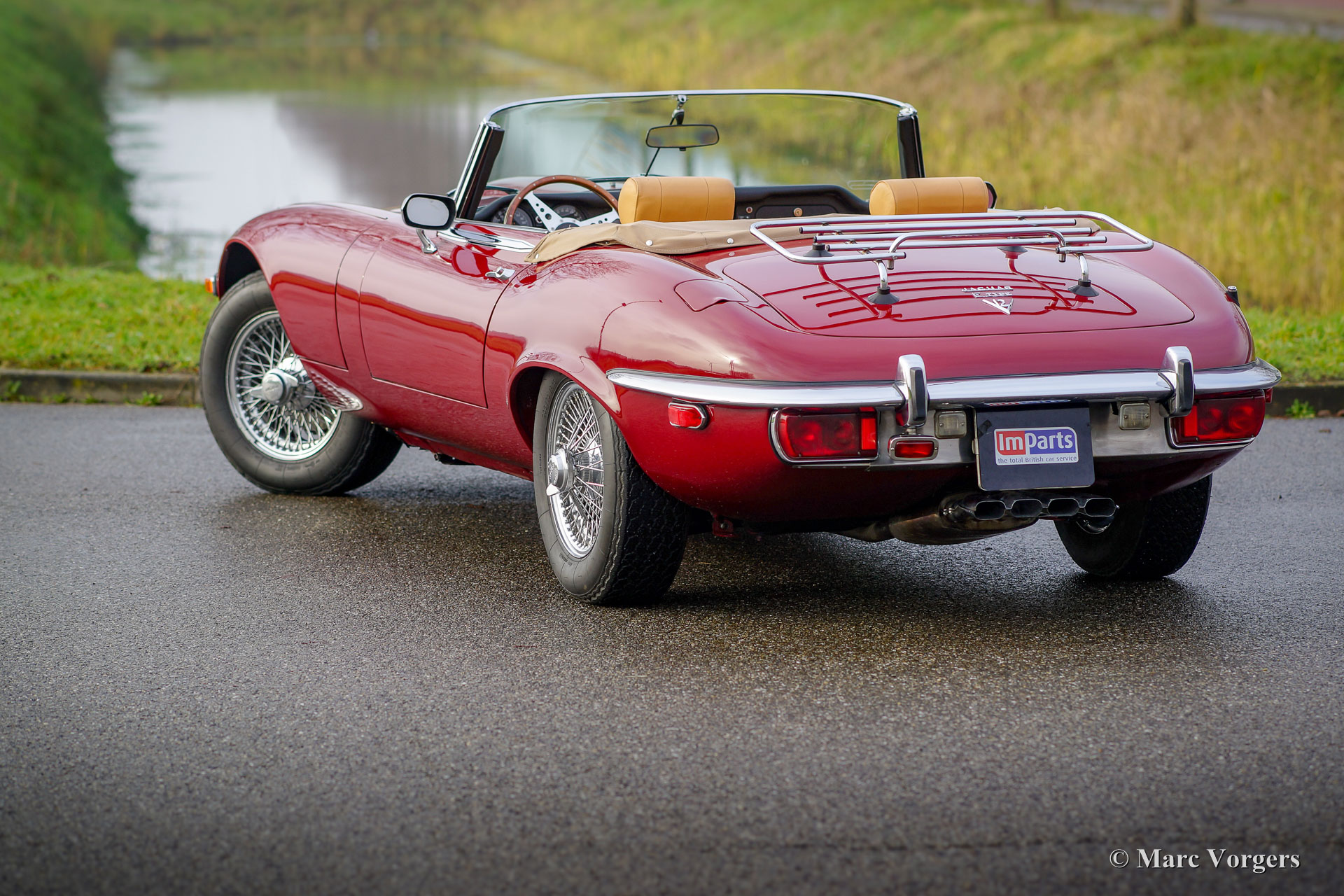 Jaguar E-Type V12 roadster, year 1973. Colour Maroon red with a beige leather interior, beige carpet and black rubber protective mats. This fabulous Jaguar E-type V12 roadster was sold new in New York (USA), the automobile was imported to the Netherlands in the year 1995. Over the last years the car has had home-bases in Belgium and France as well. This wonderful Jaguar E-Type V12 roadster is in excellent to superb top condition and the car drives impressively! This E-type is perfectly serviced and maintained. In the year 2015 the powerful V12 engine was overhauled, on the invoice the overhaul works are described in detail. Also, the rear axle was overhauled and new shock dampers, new tyres and a new soft-top were fitted. The automatic gearbox shifts very smooth and the power-steering and power brakes add a lot to the comfortable driving experience. For enthusiasts, who prefer to listen to music instead of the magnificent V12 engine sound, a modern radio with classic looks is present. This is a top specimen!