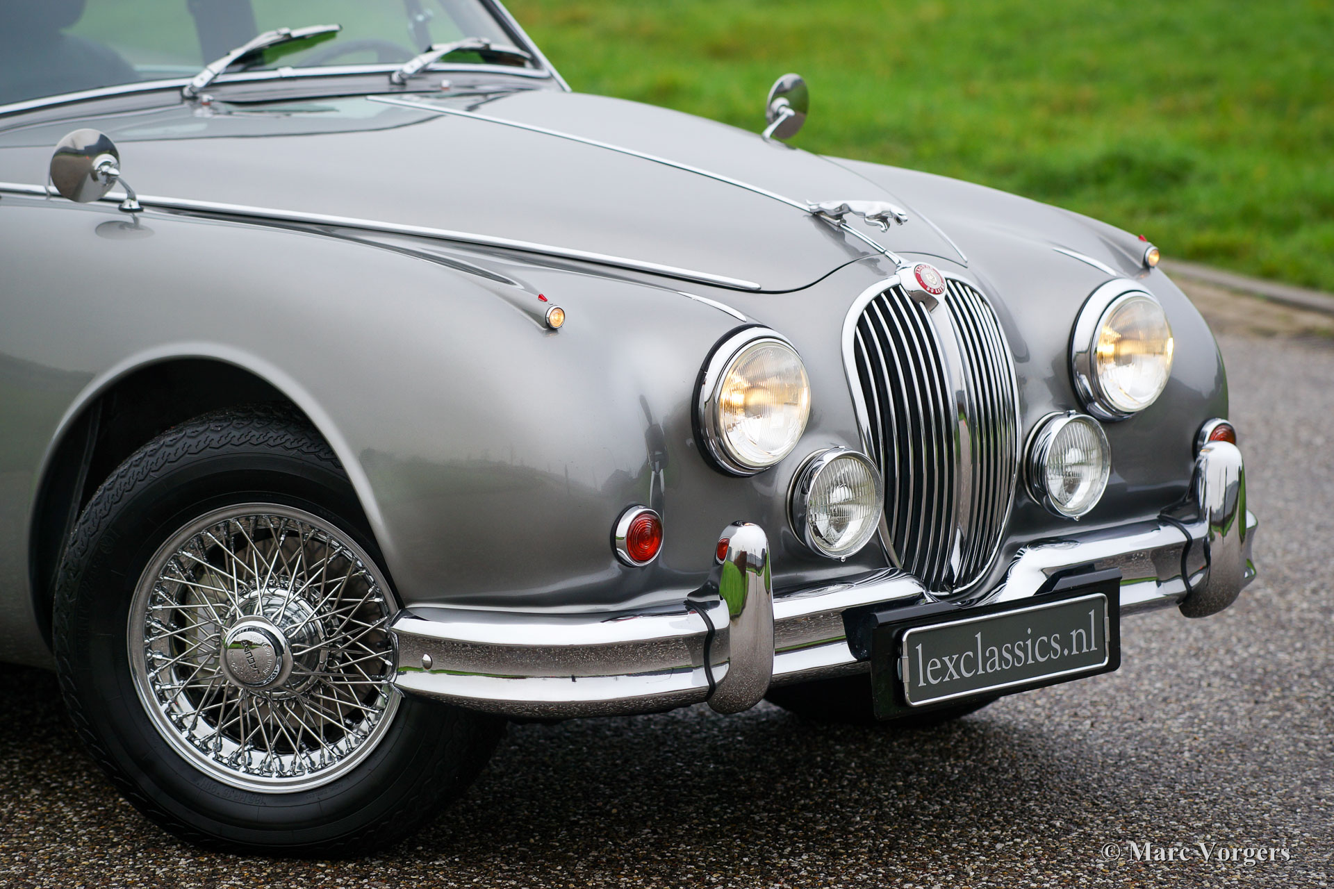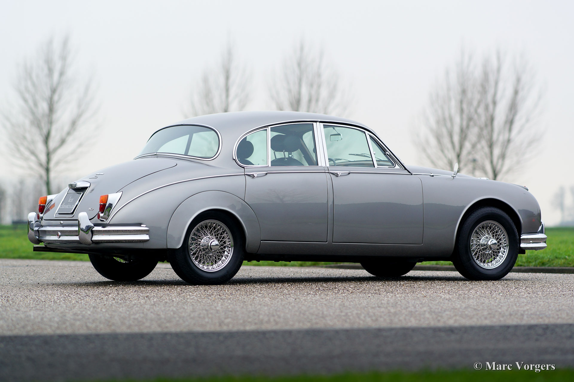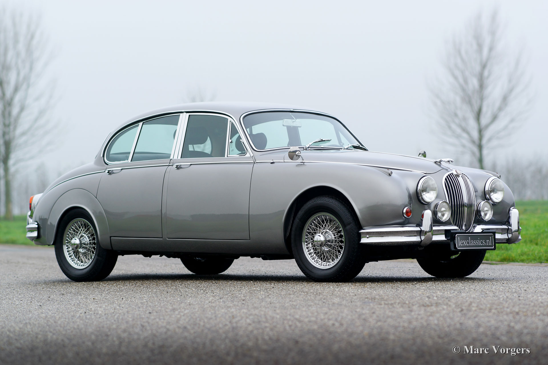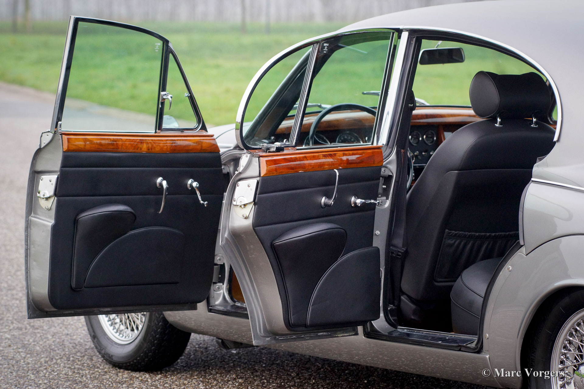 Jaguar Mk II 3.8 Litre, year 1962. Colour grey metallic with a black leather interior combined with cognac-coloured carpet. This beautiful Jaguar Mk II was extensively restored and overhauled a few years ago. The engine was rebuilt by the renowned firm of van Giersbergen in the Netherlands. Invoices of the restoration-work are present. This beautiful Jaguar is in excellent condition and the car drives delightfully! The car features chrome wire wheels, an automatic gearbox and comfortable XJ seats.