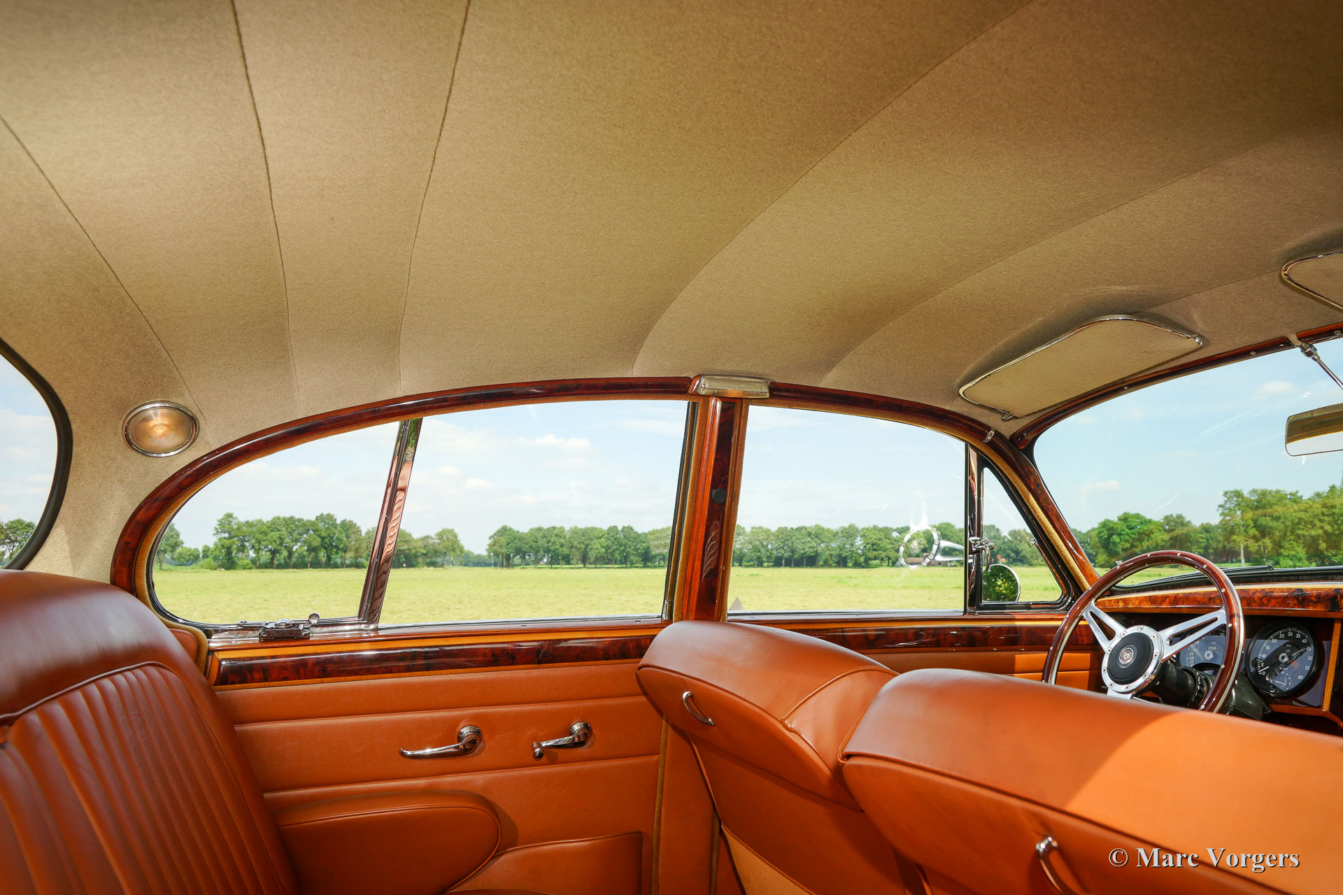 The Mk II derived its power and speed from the famous Jaguar XK engine with which Jaguar had been able to win in Le Mans in 1951 and in 1953 (3.4-litre version). The XK engine in the Mk II was available in three different cylinder capacities, namely 2483 cc/120 horsepower, 3442 cc/210 horsepower and 3781cc/220 horsepower respectively. The 3.8 version had a top speed of no less than 125 mph. The Jaguar Mk II was built until 1967.
