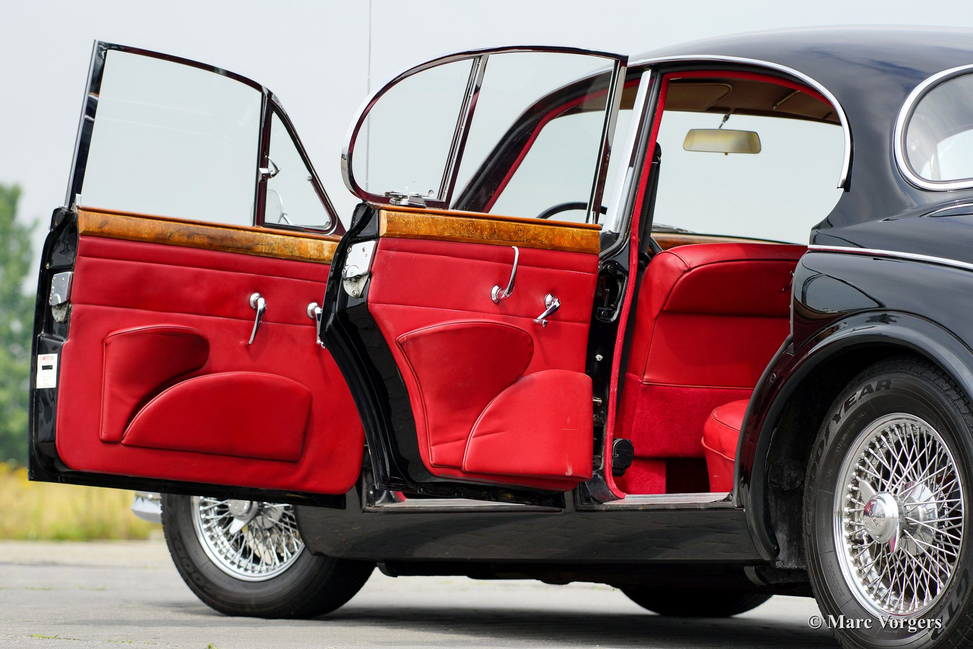 Jaguar Mk II 3.8 Litre, year 1964. Colour black with a red leather interior. This Jaguar Mk II 3.8 Litre is in very good condition! The automobile features the sought after 3.8 Litre engine. In this case mated to a more modern Jaguar XJ 6 automatic gearbox. Further more the automobile features power steering (XJ6), a Stainless Steel exhaust, wide chrome wire wheels and the 'Coomb' spats! The car drives perfectly.