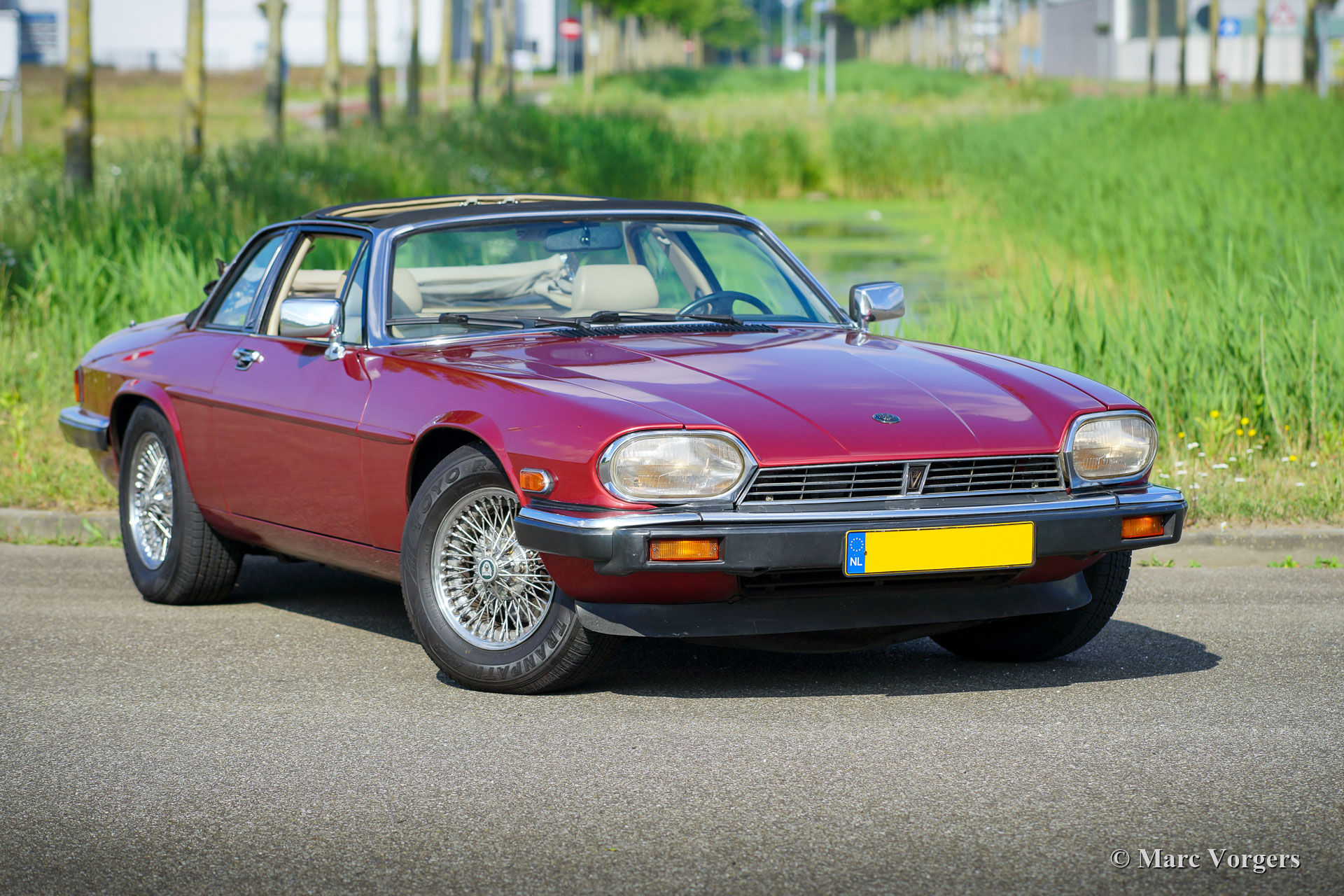 Jaguar XJ-SC V12, year 1987. Colour dark red metallic combined with a pale beige leather interior and a black ‘targa’-top. Only 3860 examples of the Jaguar XJ-SC were built from 1985 until 1988. The XJ-SC features a special and multi-functional ‘targa’-top with a sturdy ‘roll bar’ a ‘soft-window’ collapsible rear part and two roof panels which can be stowed away in the boot. This impressive Jaguar was imported to the Netherlands in the year 1992. Since 2016 the car has been in the hands of the last owner. This Jaguar XJ-SC V12 is in good original condition and the car drives perfectly. The car shows normal signs of use. The Jaguar XJ-SC V12 must be largest two-seater car ever conceived and it certainly was the fastest ‘automatic’ car of the 1980s with a top speed of 250 km/h! The Jaguar XJ-SC offers a lot of luggage space behind the seats and in the boot for longer week(end) trips.