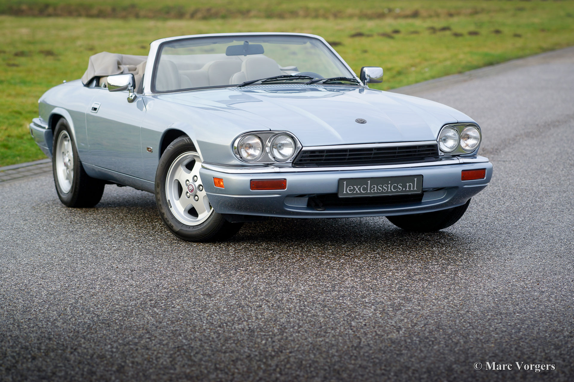 Jaguar XJS 4.0 convertible, year 1995. Colour light blue metallic with a beige leather interior and beige carpet. This fantastic Jaguar XJS was sold new in Florida, USA. In the year 2013 the car found a new owner in Germany. This magnificent Jaguar XJS convertible is an excellent condition and the car drives perfectly! The XJS is a delightful open top ‘Gran Turismo’ featuring a powerful and smooth six-cylinder engine and the car is loaded with luxurious options. This XJS has driven only 79.171 miles from new. The car is currently registered in Germany. This is a superb specimen!