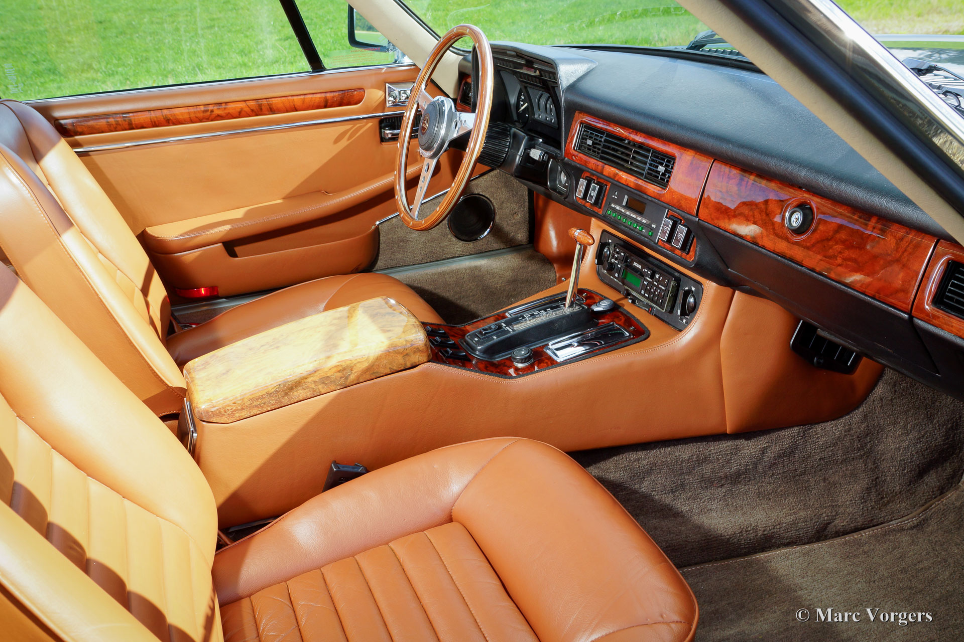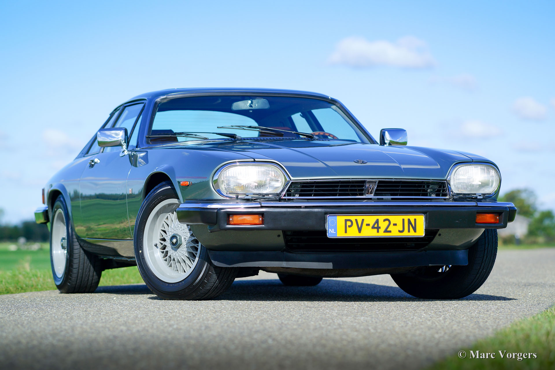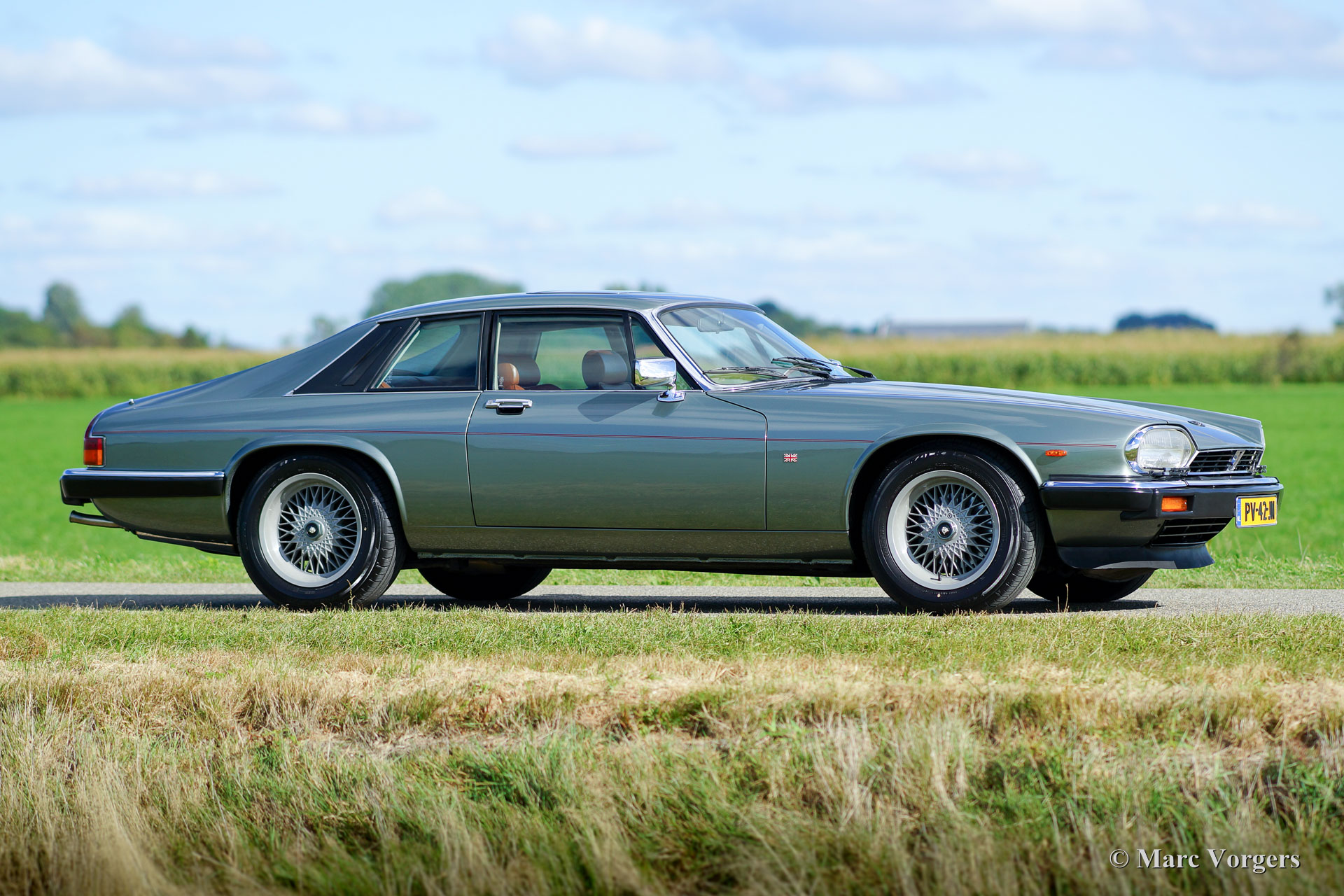 Jaguar XJS V12 HE coupe, year 1986. Colour green/ grey metallic (Sage Green) with a ‘doeskin’ leather interior. This impressive Jaguar XJS V12 was sold new in the Netherlands (Kroymans). A few years ago the automobile was extensively restored to top condition. The total costs exceeded 50.000 Euro… This XJS V12 coupe is in fantastic top condition and the car drives like new! This Jaguar XJS features grey coated light alloy wheels, a sliding roof, board computer, ‘snap on’ tow bar and cruise control. The car comes complete with the original service book and instruction manual. Furthermore, the original toolset is present. This is a superb specimen!
