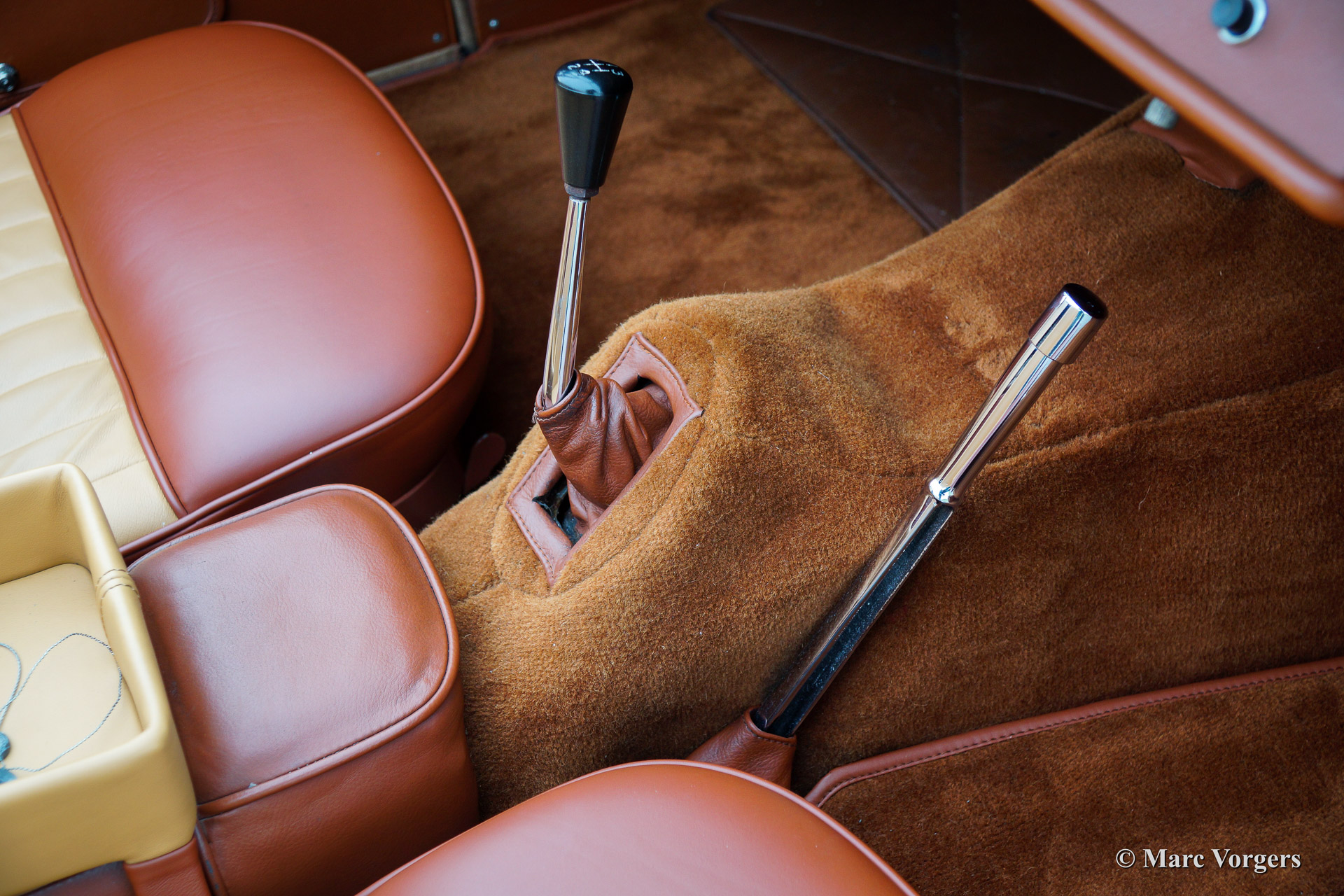 The Jaguar XK 120 was introduced in 1948, and caused an immediate sensation. The XK 120 had a top speed of 120 miles an hour (about. 200 km/h) and was the fastest production car for sale at that time. The XK 120 was designed by Jaguar’s boss and founder William Lyons. The bodywork had an almost sculptural design, with sober, well-chosen flowing lines and beautiful curves. With its exquisite long bonnet and elongated wing lines, the XK 120 has a very dynamic charisma.