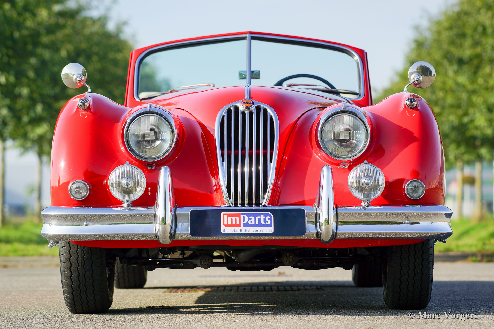 The Jaguar XK 140 replaced the famous XK 120 and was brought onto the market in 1954. The XK 140 was an evolution of the XK 120 with some visual differences and technical improvements. The handsome and dynamic features remained largely unchanged. New was the grille, which counted fewer vertical bars; the rear lights were larger, the bumpers were thicker, and the front indicators, which were placed on the front of the front wing. The important technical improvement was that the XK 140 was provided with a rack and pinion steering which greatly improved steering and driving.