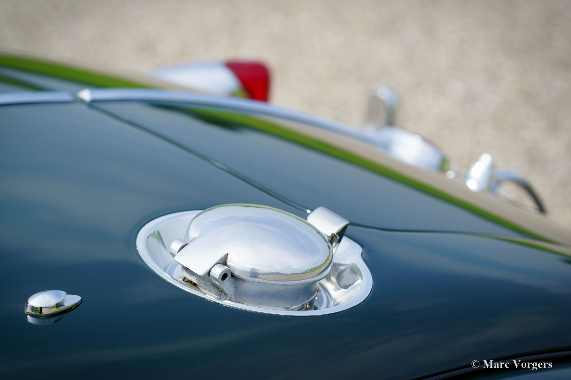 The Jaguar XK 140 replaced the famous XK 120 and was brought onto the market in 1954. The XK 140 was an evolution of the XK 120 with some visual differences and technical improvements. The handsome and dynamic features remained largely unchanged. New was the grille, which counted fewer vertical bars; the rear lights were larger, the bumpers were thicker, and the front indicators, which were placed on the front of the front wing. The important technical improvement was that the XK 140 was provided with a rack and pinion steering which greatly improved steering and driving.