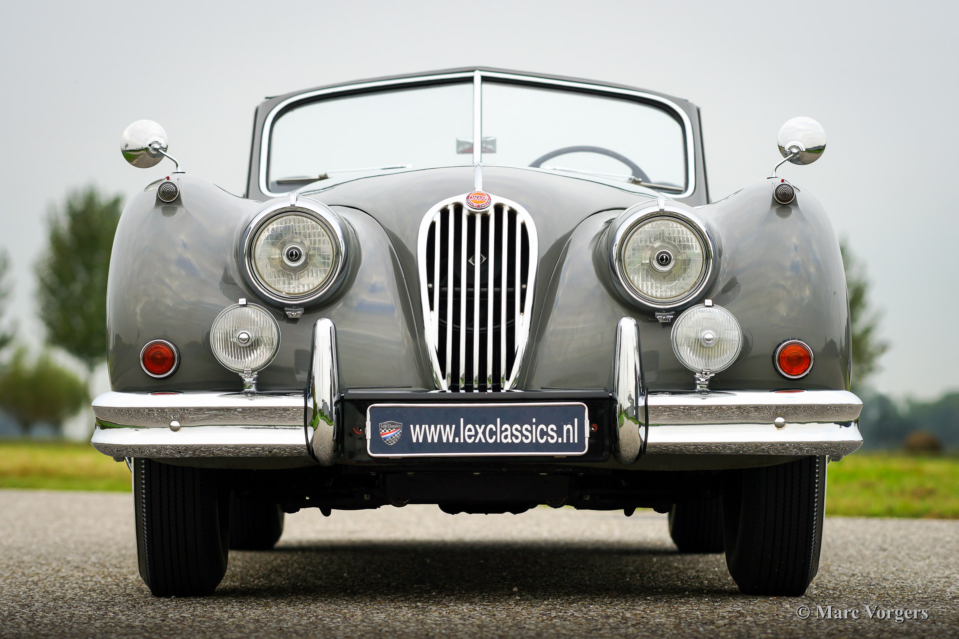 The Jaguar XK 140 replaced the famous XK 120 and was brought onto the market in 1954. The XK 140 was an evolution of the XK 120 with some visual differences and technical improvements. The handsome and dynamic features remained largely unchanged. New was the grille, which counted fewer vertical bars; the rear lights were larger, the bumpers were thicker, and the front indicators, which were placed on the front of the front wing. The important technical improvement was that the XK 140 was provided with a rack and pinion steering which greatly improved steering and driving.