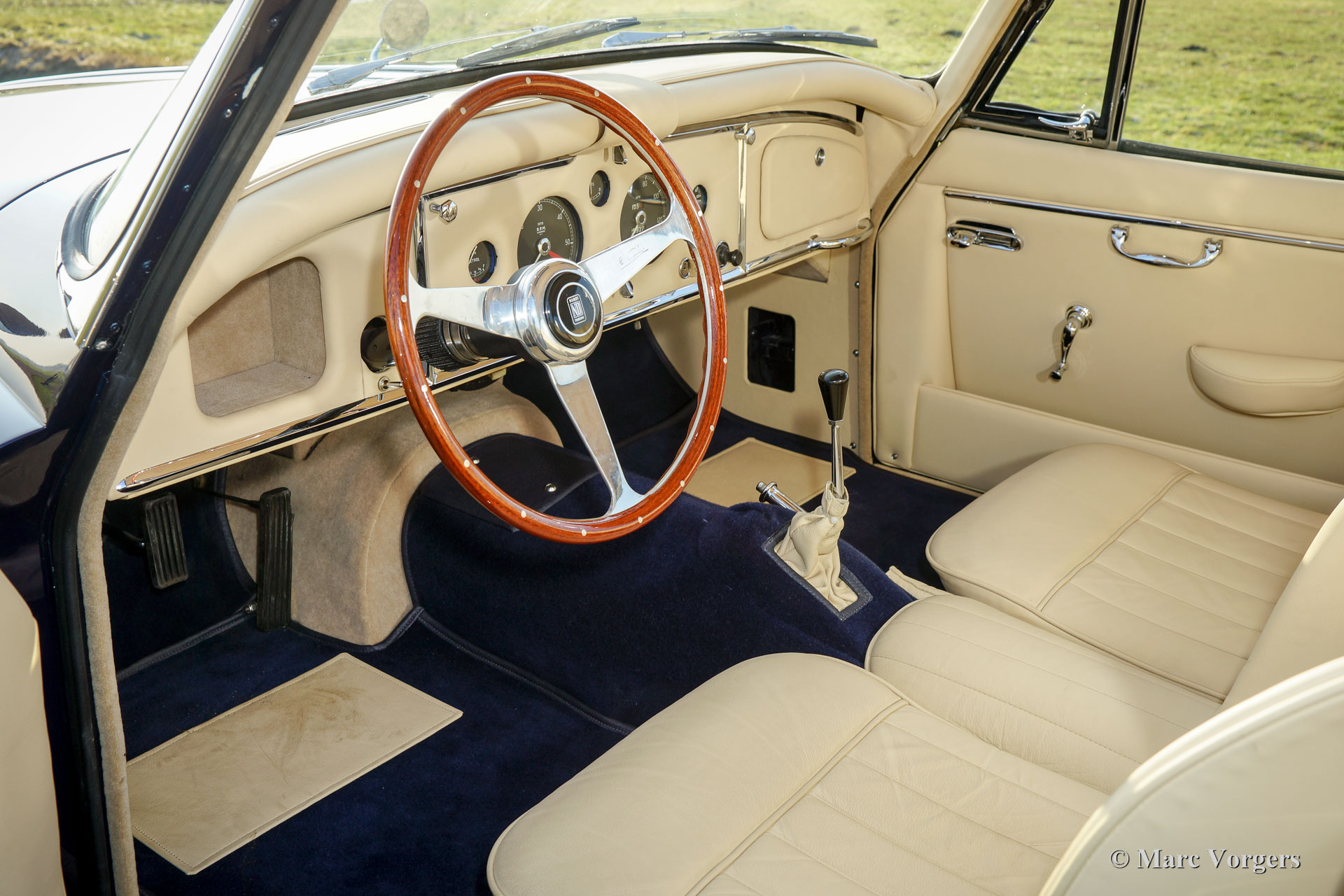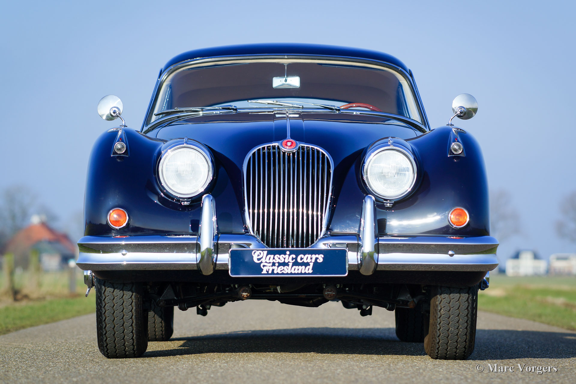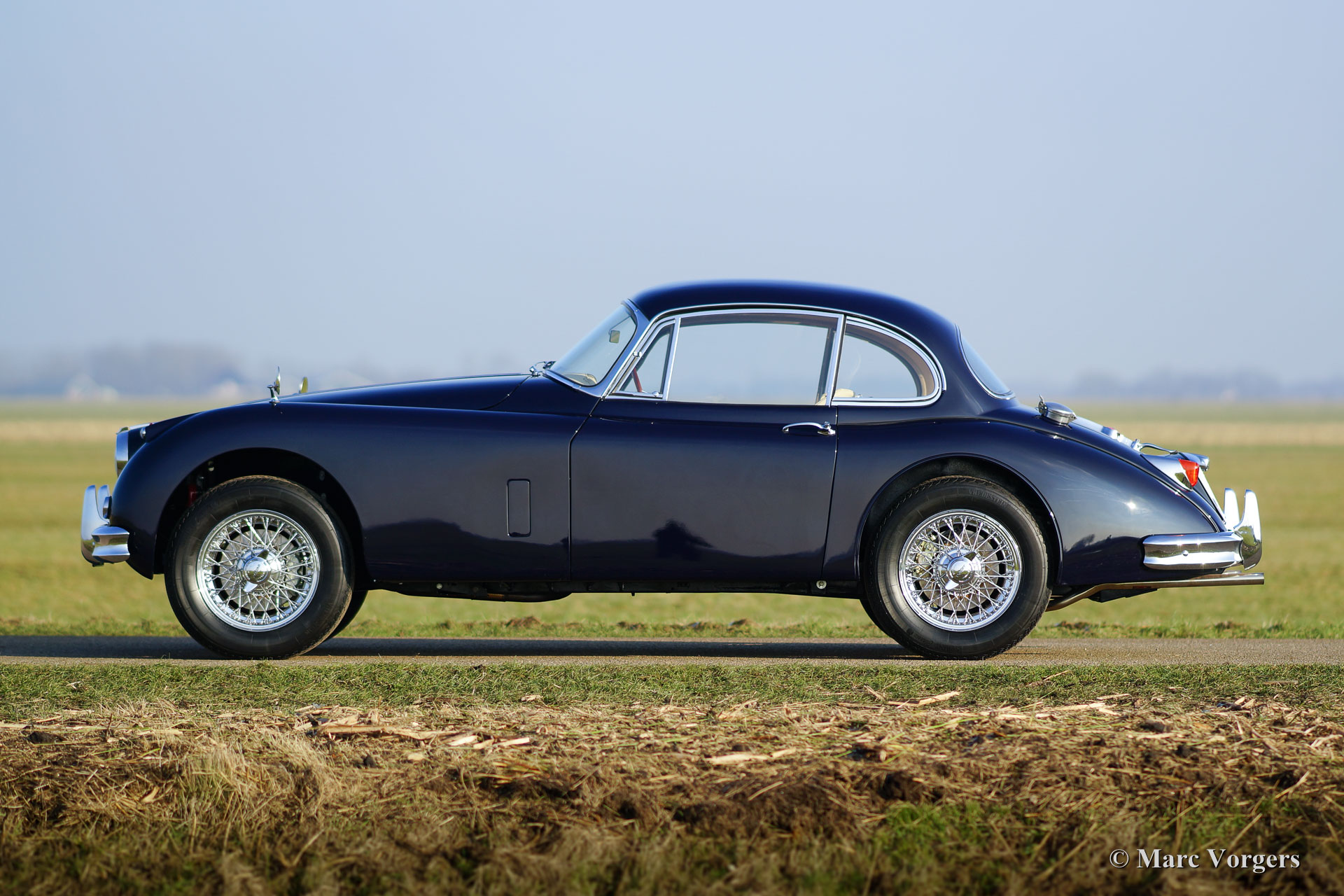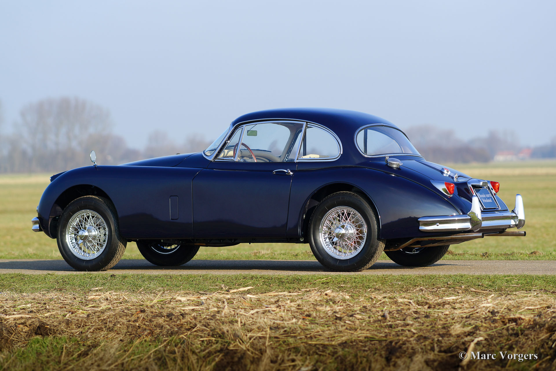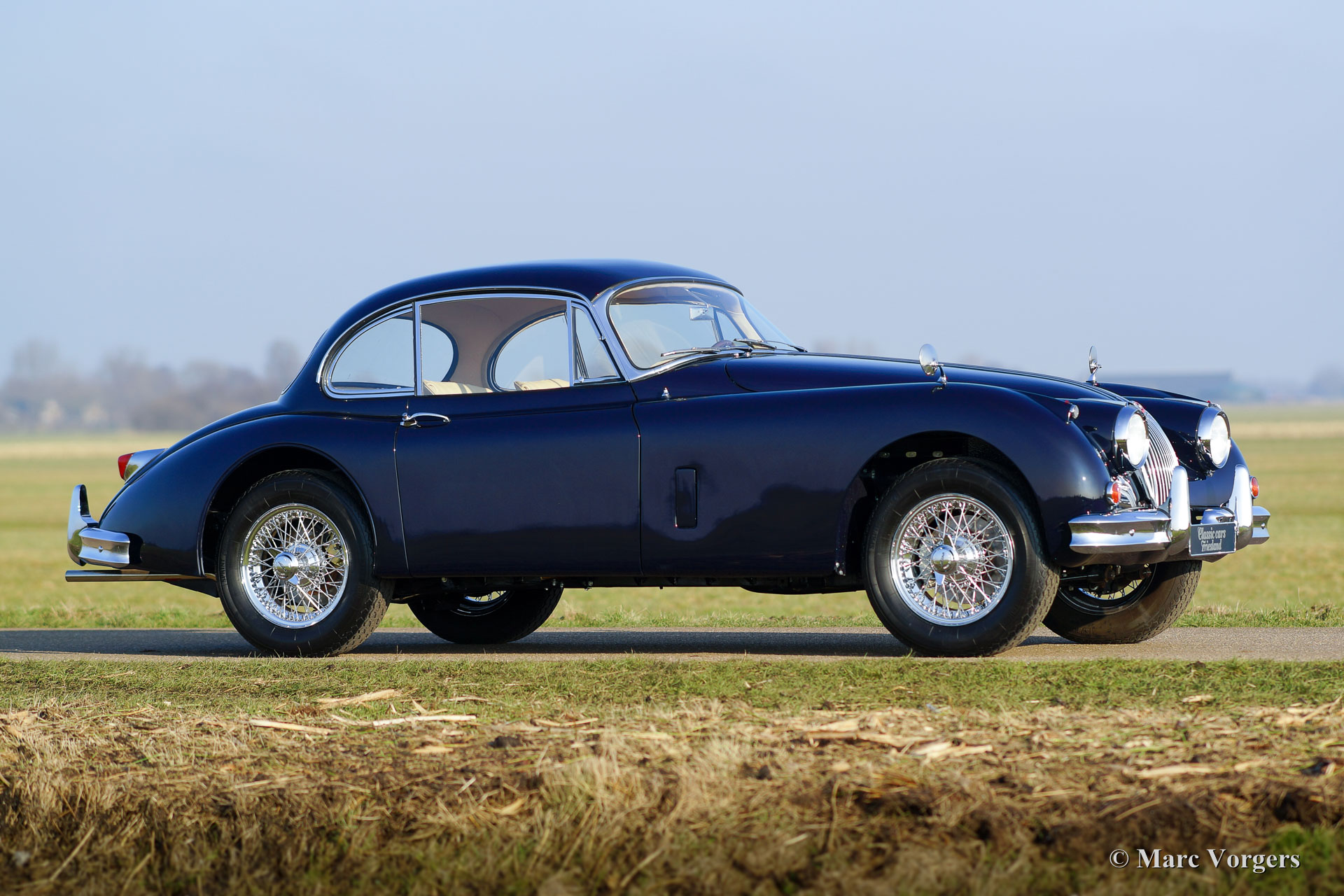 Jaguar XK 150 3.4 Litre FHC, year 1958. Colour dark blue with al light beige (Magnolia) leather interior and light beige carpet to match. This gorgeous Jaguar XK 150 was extensively and beautifully restored by Dutch and English specialists. The automobile is in superb top condition; concours! This XK 150 Fixed Head Coupe (FHC) features chrome wire wheels, Vredestein Sprint Classic tyres, a Getrag 5-speed manual gearbox, a Stainless-Steel exhaust, KONI Classic shock absorbers and electric power steering. The last owner has cherished the car for 37 years! The car is registered in the Netherlands; a TOP specimen!