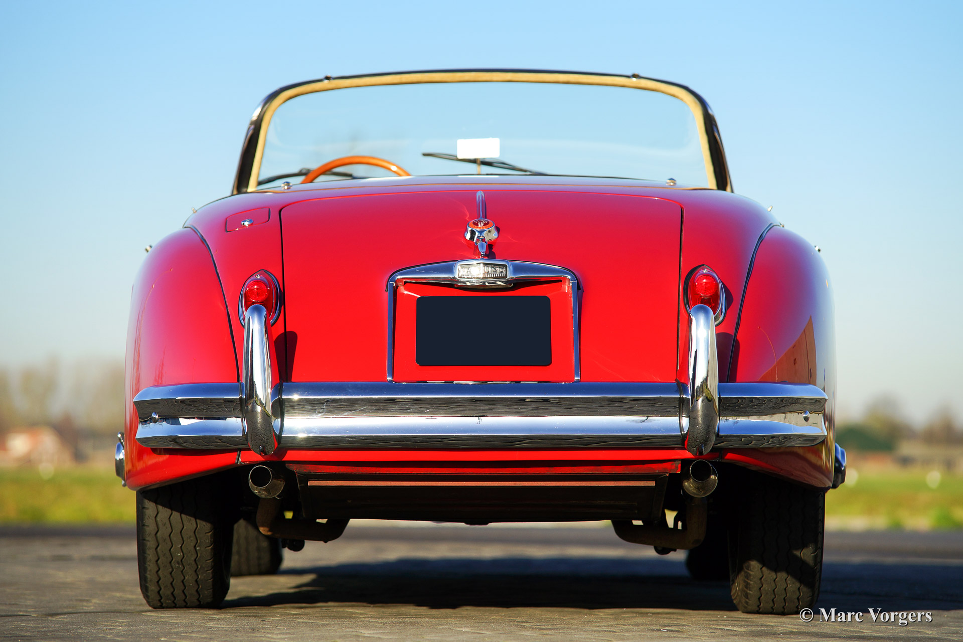 Jaguar XK 150 3.4 Litre S OTS (Open Two Seater), year 1958. Chassis number: S830829DN, engine number VS1170-9, both numbers matching according to the Heritage certificate. Colour Carmen red with a beige leather interior and beige carpet. Black mohair soft top. This stunning Jaguar XK 150 roadster is a factory original S (Special Equipment) model. The automobile has been extensively restored by a Dutch Jaguar restoration specialist in the years 1998/2002. A restoration file is present without photo reportage. The Jaguar has driven 18.000 miles since the restoration and the car is in superb (excellent+) condition!