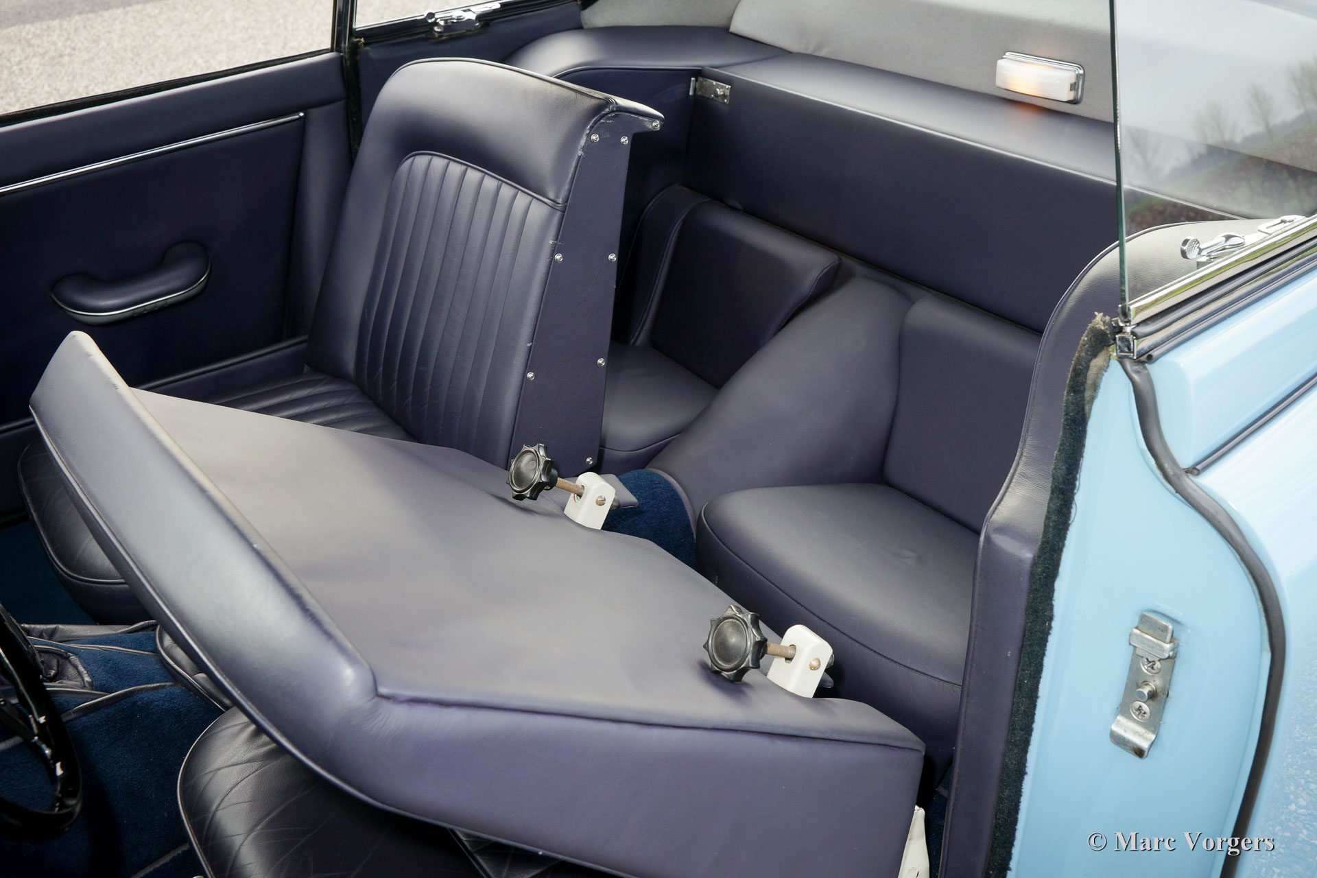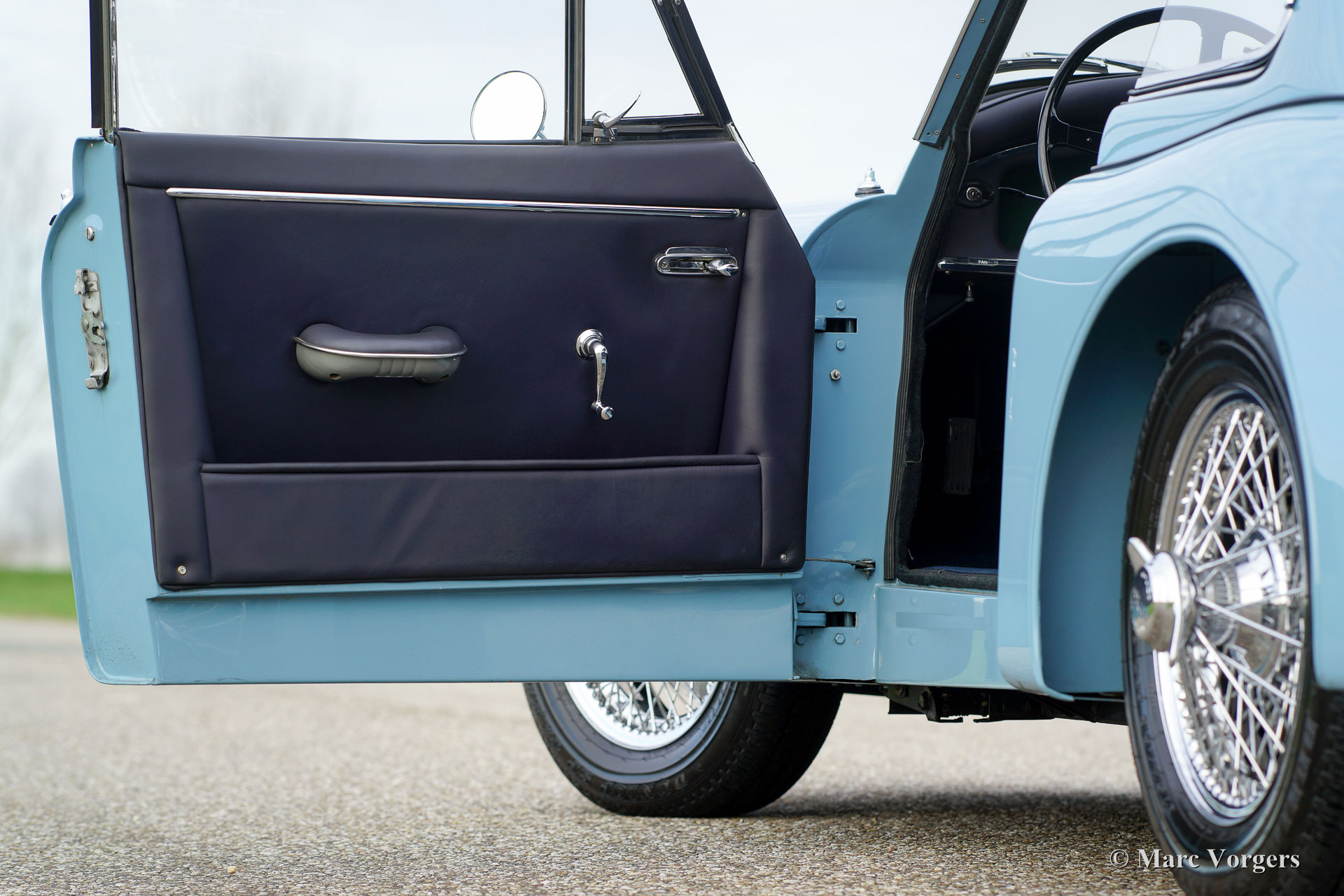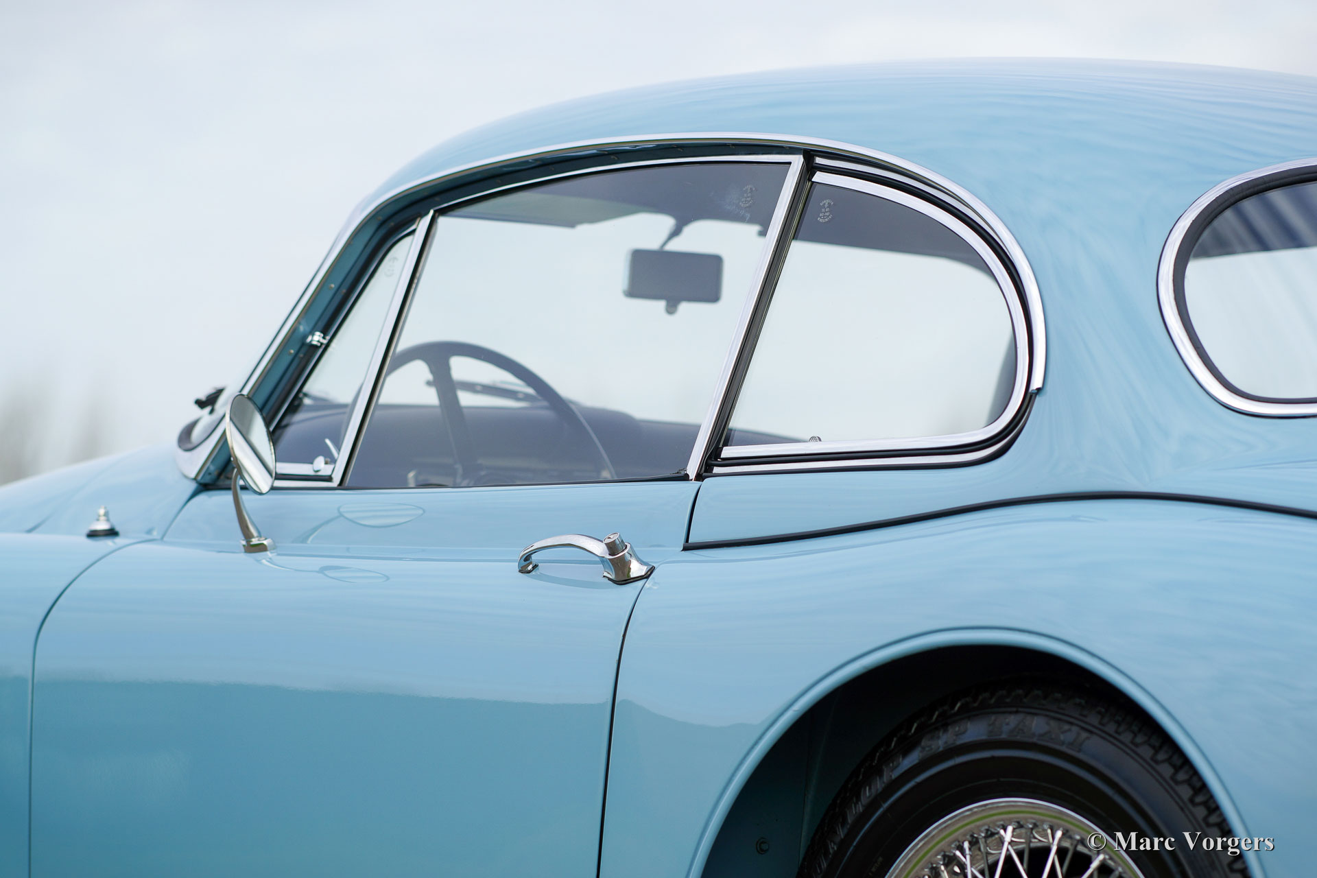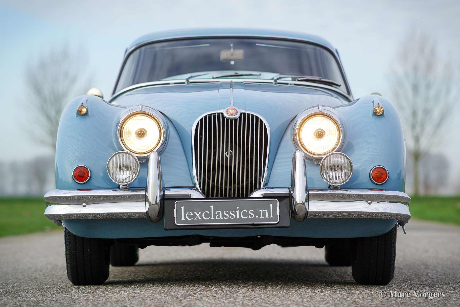 Jaguar XK 150 3.8 Litre FHC, year 1960. Chassis number S836628XX, engine number available on request. Colour light blue (Pastel Blue) with a dark blue leather interior and dark blue carpet. This gorgeous Jaguar XK 150 coupe was sold new in The Hague, the Netherlands. The car was registered in the Netherlands until the year 2016. This fine Jaguar XK 150 FHC was extensively and ‘body-off’ restored under direction of Lex Classics over the years 1999-2002. A complete photo reportage of the restoration is present. The bodywork and the paintwork were executed by the firm of Harry Frens, new upholstery was made by the firm of Cools, and the engine was overhauled by the firm of van Giersbergen, all these renowned firms are located in the Netherlands. The car was fully built-up by Lex Classics. This fine automobile is in superb condition and driving is a sheer delight! Since the restoration the car has driven 18.569 kilometres. A Heritage certificate is present. The automobile features a factory original sliding roof (a rare and highly desirable option!), chrome wire wheels, chrome ‘knock off’ wheel nuts, fog lamps at the front and Jaguar headlamps with ‘J’ logo on the glass. This XK 150 Fixed Head coupe is a top-of-the-line model fitted with the strongest 3.8 Litre engine, manually operated gearbox, overdrive and featuring disc brakes all round. A highly desirable classic sports car!