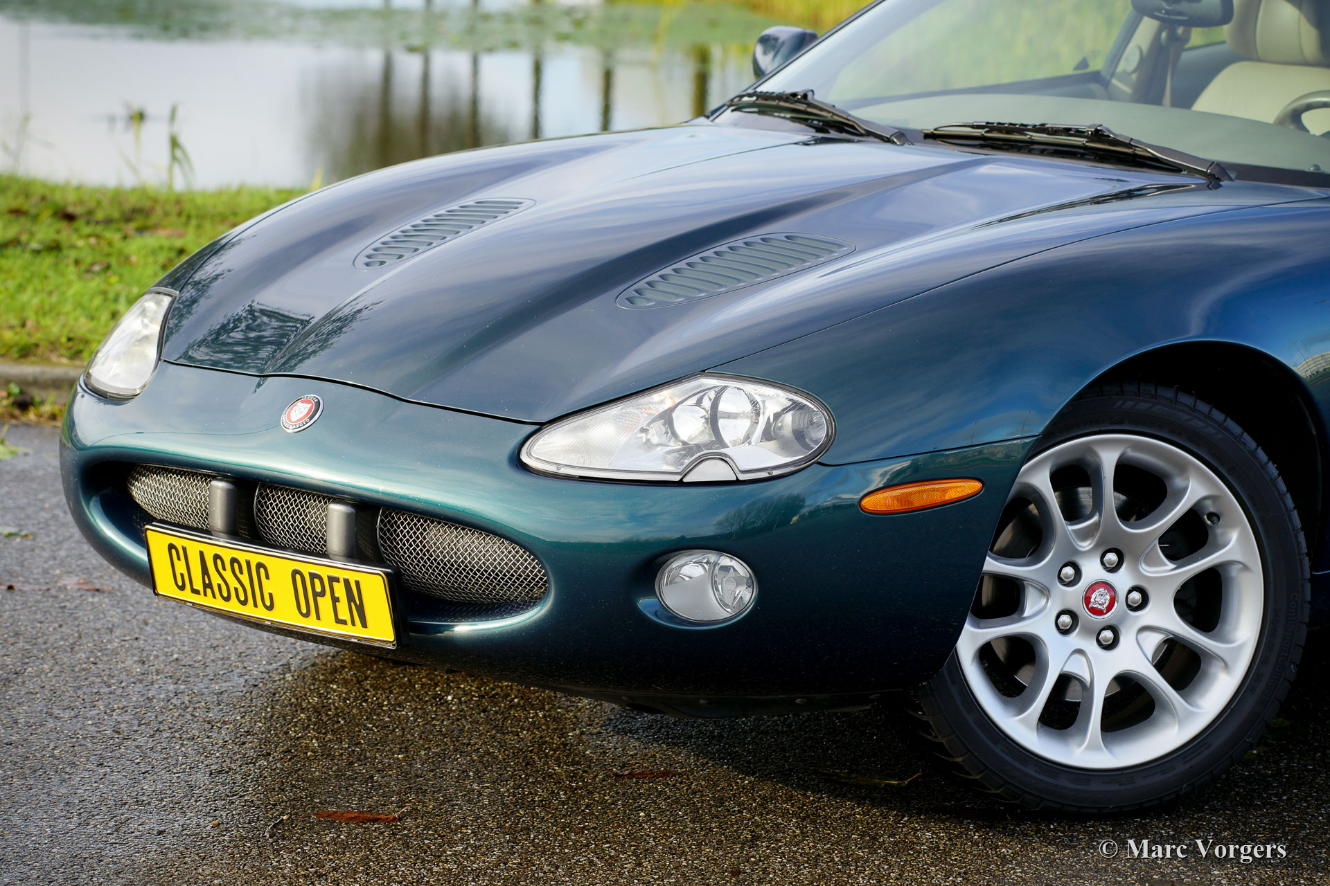 Jaguar XKR, year 2001. Colour Emerald Green (Metallic) combined with a beige leather interior. This gorgeous Jaguar XKR is in excellent original condition and the car has driven 85.000 kilometres from new! The Jaguar XKR was presented on the Geneva motor show in 1998. With the XKR Jaguar returned to the league of the worlds fastest sports cars. The supercharged version of the XK8 could only be recognized by its bonnet louvres, a tiny spoiler on the boot lid, special alloy (Double Five 18 inch) wheels and the word ‘supercharged’ on the Jaguar badge. The 4 Litre V8 supercharged engine delivers a magnificent 370 bhp of power and 525 Nm torque. This low mileage example shows only mi9nimal traces of previous use, and the car comes complete with all the original (Dutch) factory booklets. A desirable collector car, and a fantastic driver car!