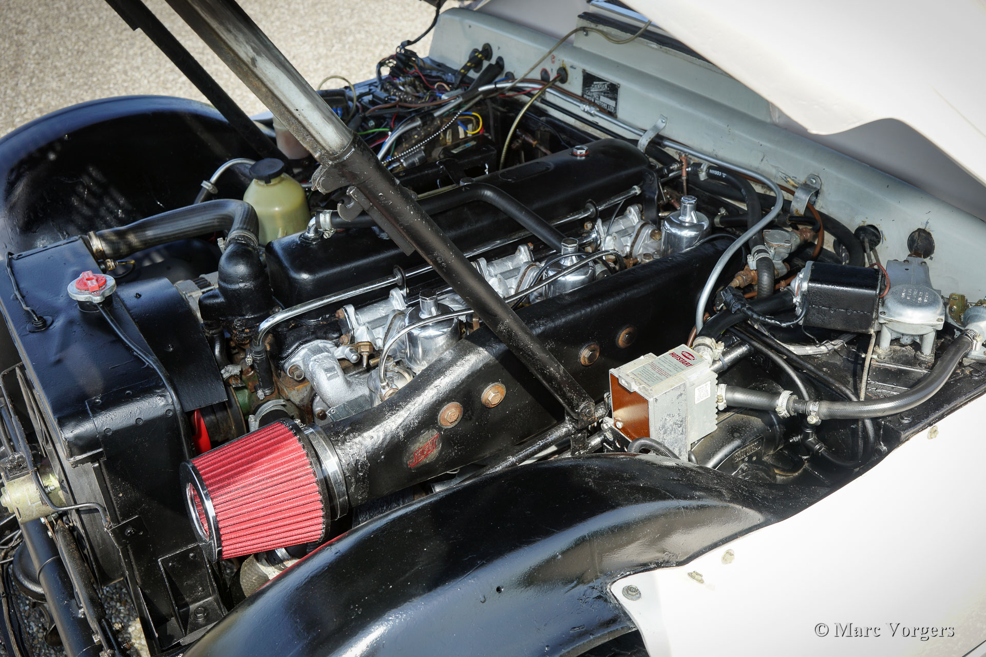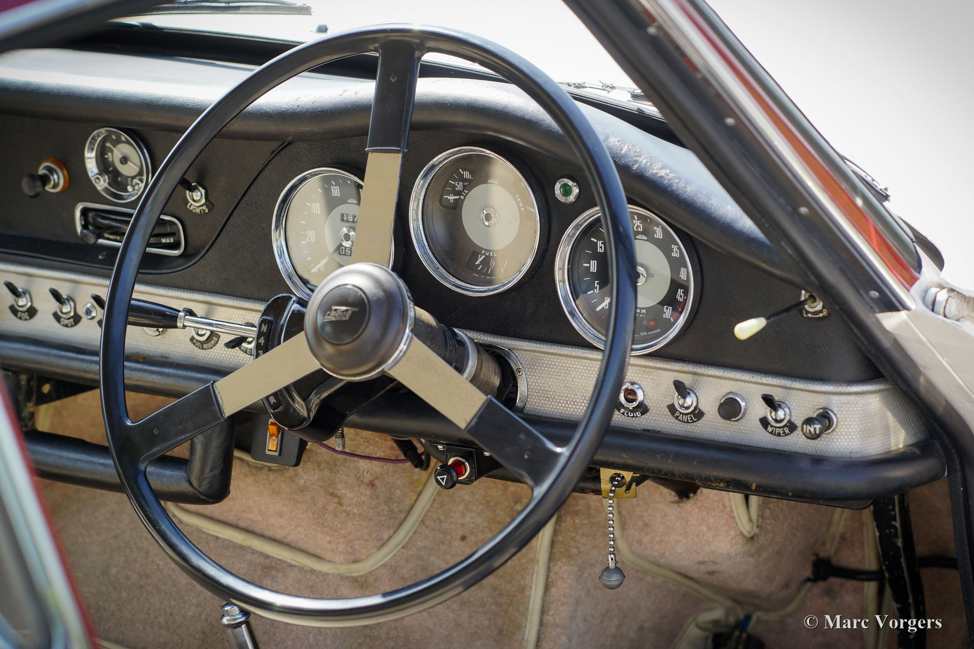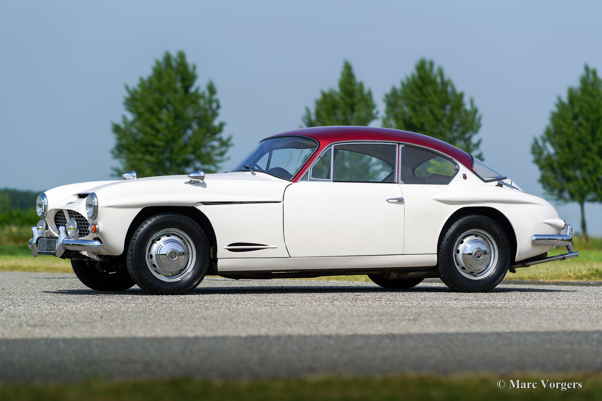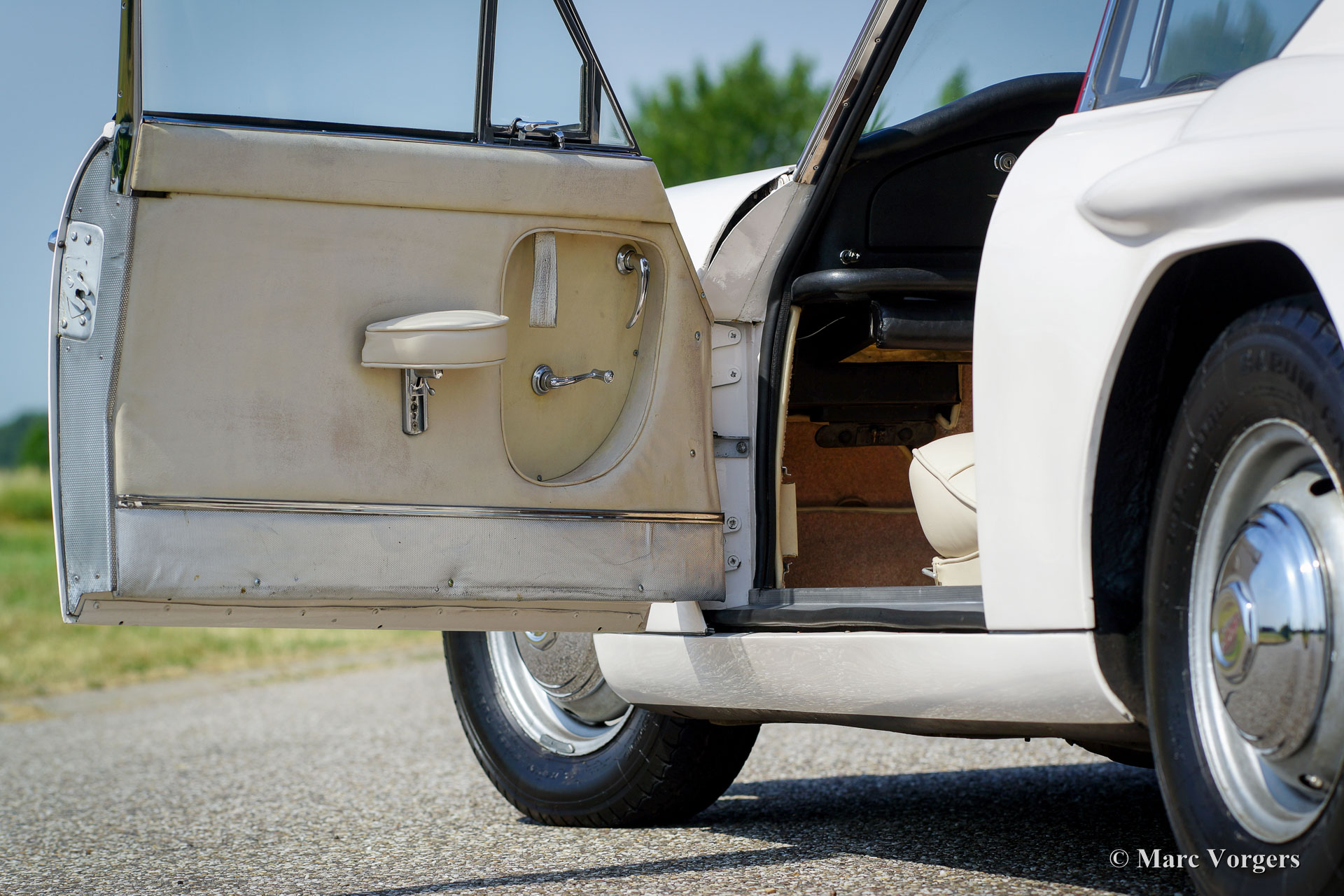 Jensen 541 S, year 1961. Colour white with a red metallic roof-top. Light beige (Magnolia) leather upholstery and beige carpet. This gorgeous and rare Jensen 541 S was restored in Great Britain in the past. Invoices concerning the restoration are present. The automobile is in very good and beautiful condition and the car shows off all the original details. The Jensen 541 S features a big Austin 3993 cc Austin six cylinder in-line engine with a magnificent engine sound. The power is being transmitted to the rear wheels via a Rolls-Royce Hydramatic 4-speed automatic gearbox. The Jensen 541 S is a very rare car as stated above, only 127 cars were built of which 20 were fitted with a manually operated gearbox and 107 cars featured the Rolls Royce Hydramatic. The Jensen 541 S features a steel chassis with a glass fibre reinforced plastic (GRP) bodywork, this in the tradition of many post-war small British sports car manufacturers. With a Jensen 541 S you don’t drive incognito; a real head-turner it is and a special piece of British car history!