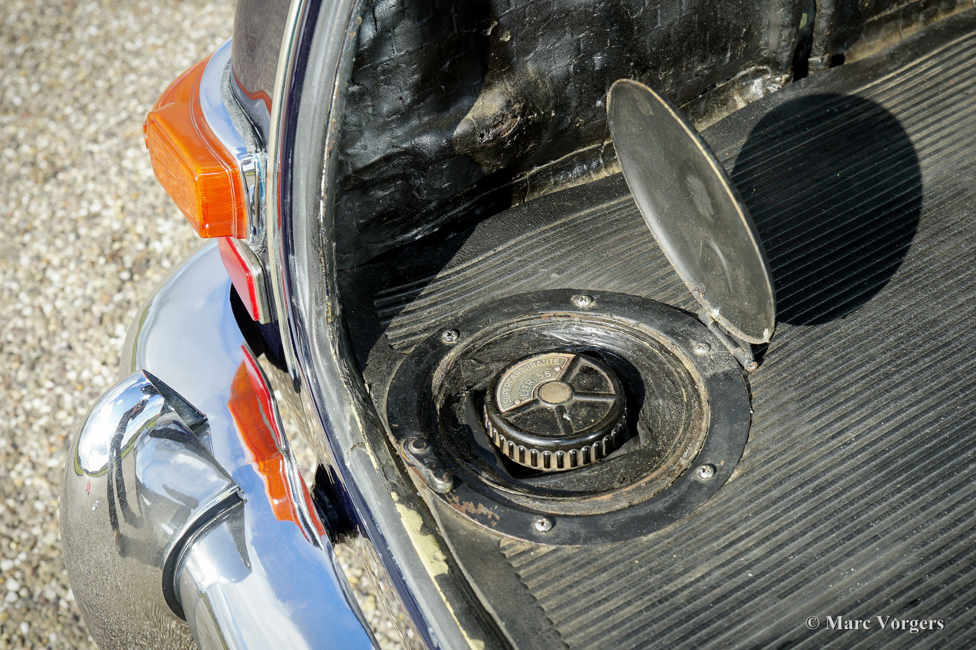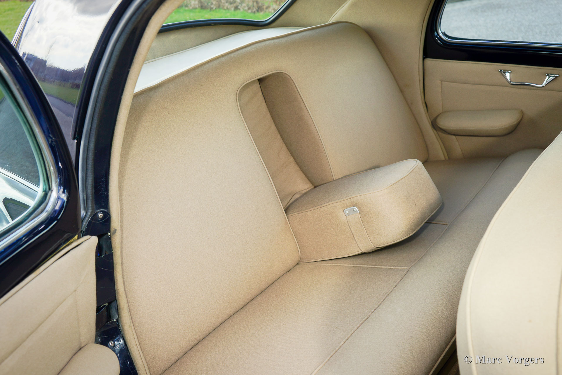 Lancia Aurelia B12 saloon, year 1954. Chassis number B1218XX, engine number: 252X. Colour dark blue with a beige cloth interior and black carpet. This magnificent and rare Lancia B12 is in very good and very original condition and the car drives splendidly. The automobile shows all original details. The old, but in the past renewed, paint shows signs of age, the original interior is in excellent and clean condition! Very remarkable are the doors which open from the middle of the car. The doors reveal a large pillar less entrance to the spacious interior. The V6 power plant is a sheer delight and the 4-speed gearbox, which is operated from the steering column, shifts easily and positive. The Lancia B12 was built in the years 1954 and 1955. The cars are rare; only 1380 right hand drive (RHD) B12 cars were built and only 1020 B12S left hand drive (LHD) models. A special collector’s item indeed!