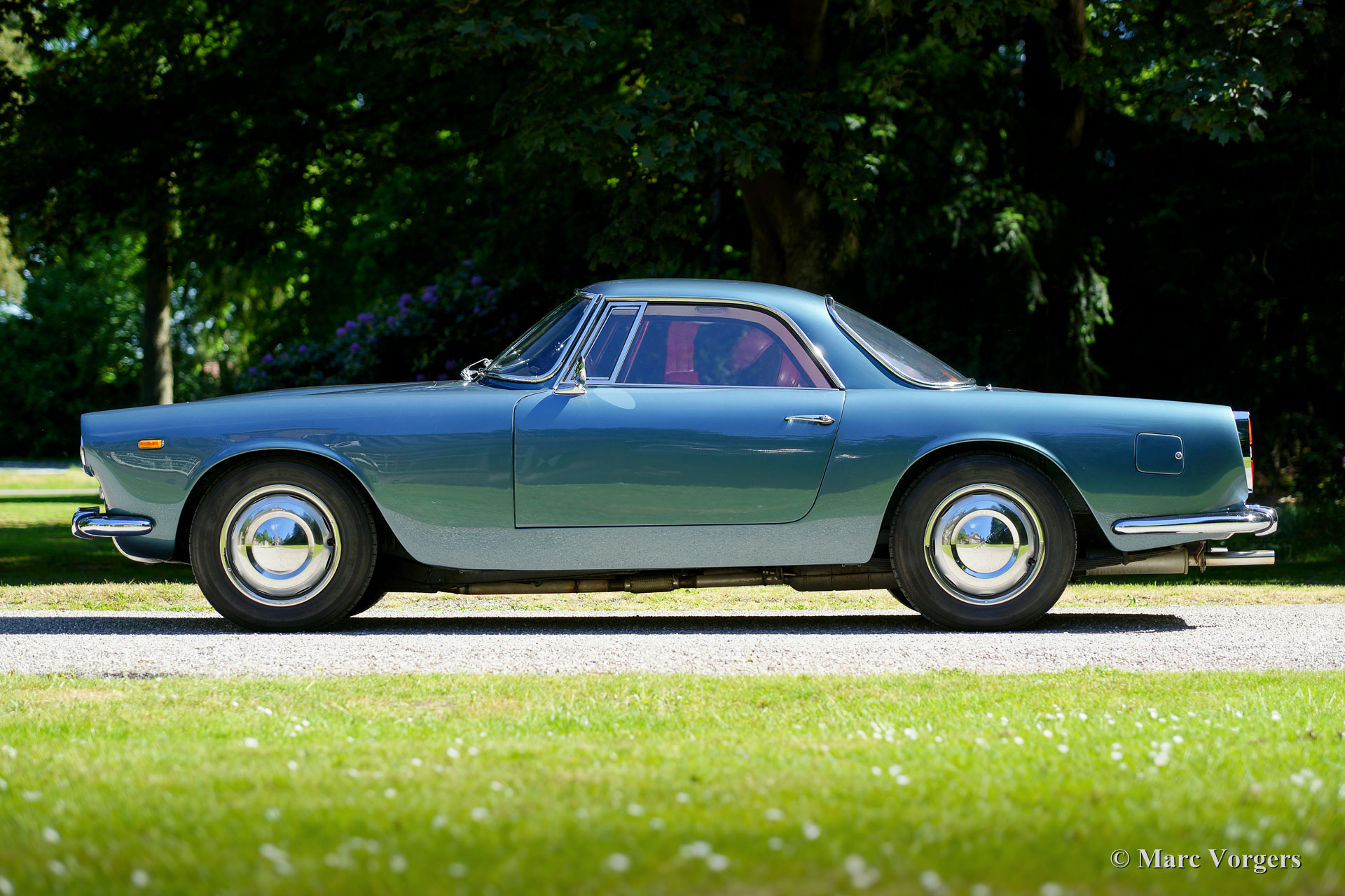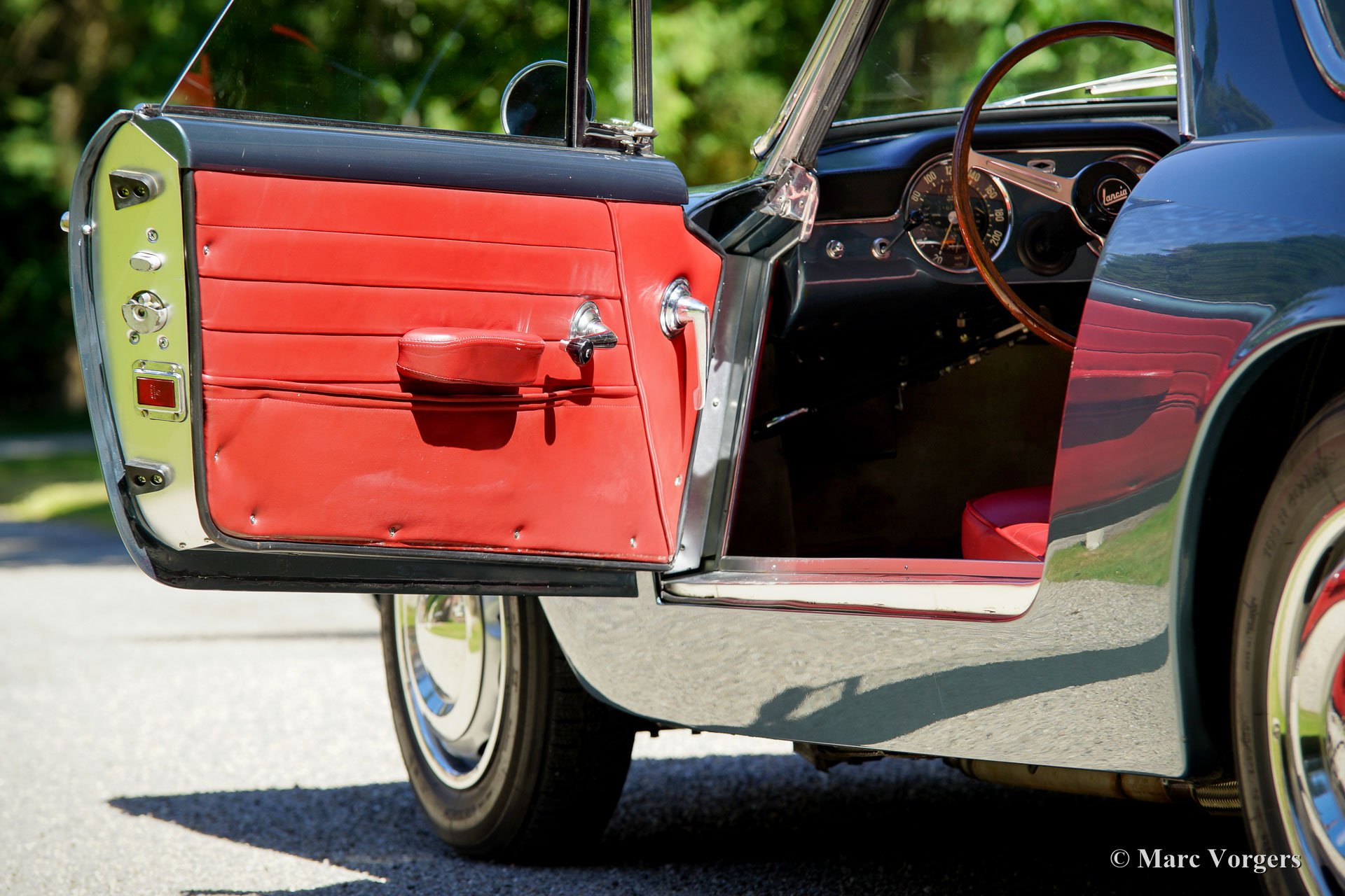 Lancia Flaminia ‘Touring’ 2.8 Litre 3C coupe, year 1966. Colour blue metallic with a red leather interior and grey carpet. This stunning Lancia Flaminia was fully restored and overhauled about ten years ago by a world renowned Dutch restoration firm. The automobile is in superb TOP condition; concours! The car left the Lancia factory in 1966 and it was first road registered in 1968 in the Netherlands. The car has been restored, build-up and driven-in incredibly well; this Flaminia is the finest example we have ever driven! Driving this car, you will definitely appreciate the greatness of the Lancia engineering in the post war years. The powerful V6 engine produces a magnificent sound-track, the gear box shifts like a knife through butter and the ride is sporty yet comfortable. This is a true ‘gentleman’s coupe’ and a driver car par excellence! Since completion of the restoration the car has driven 15.000 kilometres; beautifully run-in as we say. This Flaminia is one of the last cars which were built with a Touring bodywork and the strongest engine. The 2.8 Litre V6 engine features three carburettors and is delivers a healthy 150 horsepower. Lancia has always been an engineer’s ‘marque’, the cars show off many original technical solutions. The Flaminia features a so-called ‘trans-axle’ gearbox which is mounted in unit with the rear axle to obtain an ideal front / rear weight distribution. Pure racing technology and beautifully executed. This Lancia Flaminia ‘Touring’ coupe is a TOP specimen!