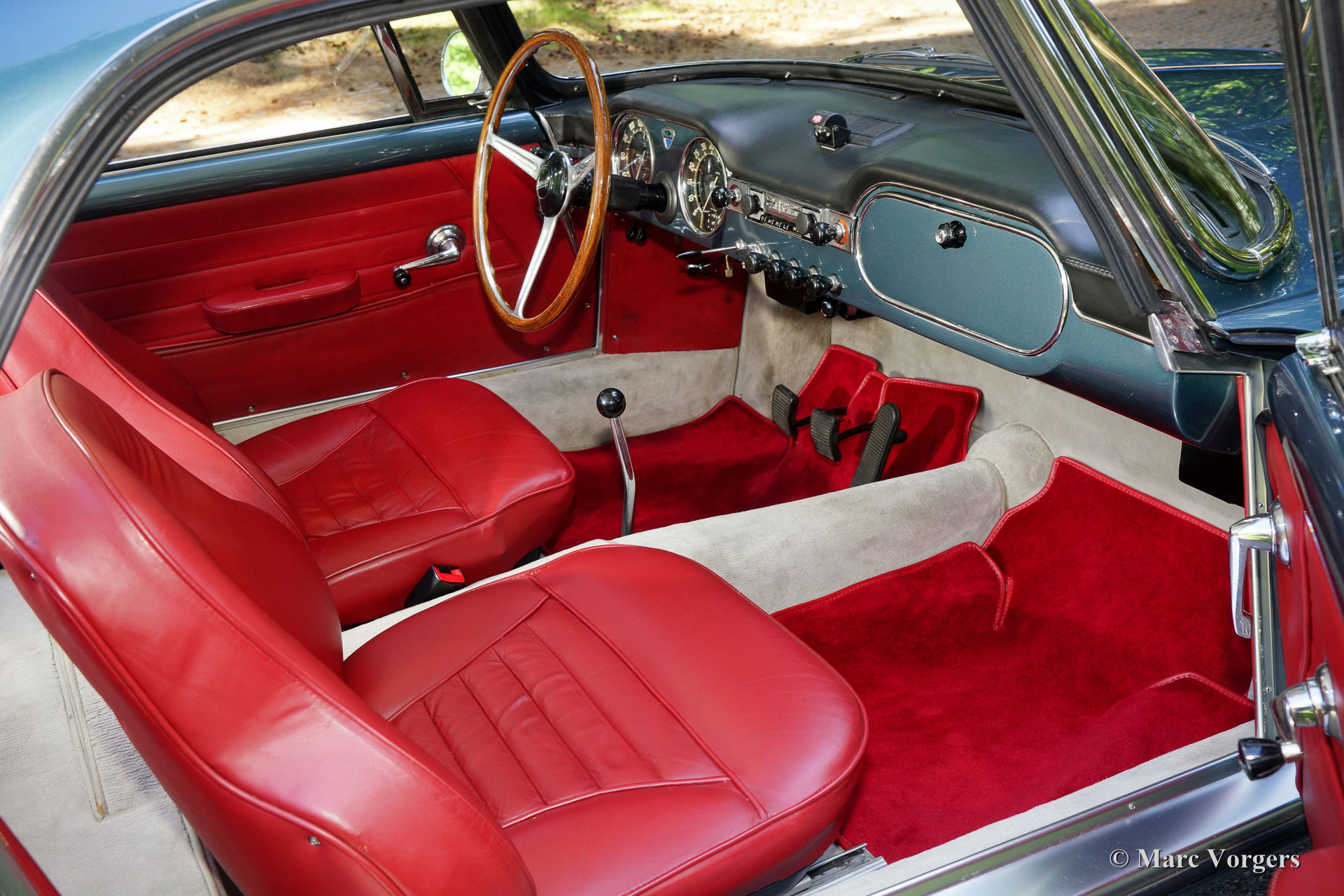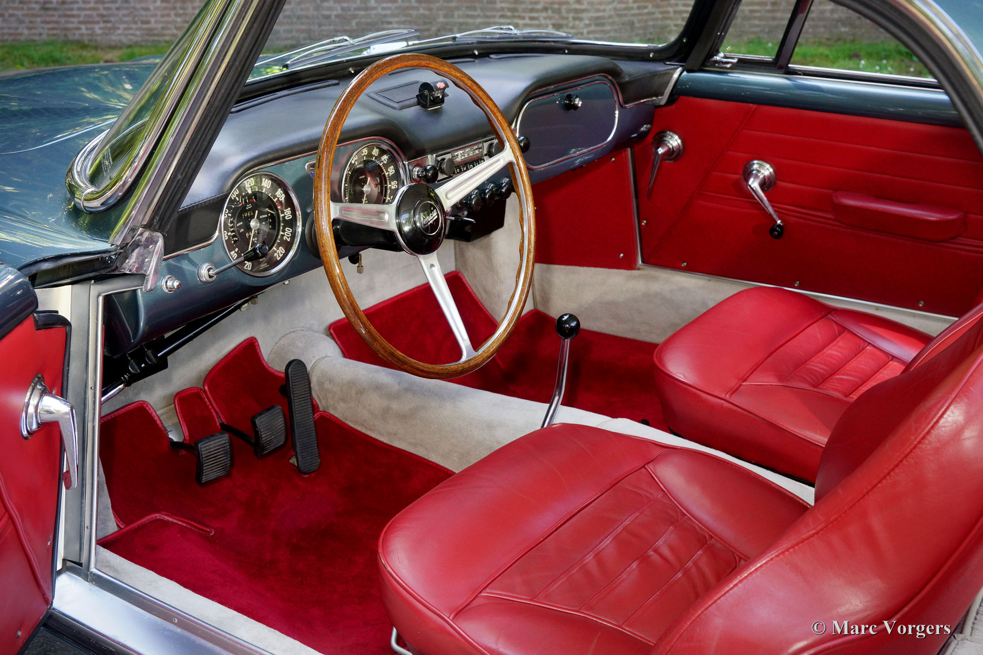 The Flaminia series was at first equipped with a 2500 cc. V6 engine fitted with one double choked Weber carburettor. Shortly thereafter the Flaminia models were fitted with uprated 2800 cc. engines and the most powerful versions were fitted with three double choked Webers. (3C in the Super Sport Zagato). The Flaminia Supersport Zagato was built with a aluminium unitary bodywork construction and the car featured the same technical specialties as the other Flaminia models. The cars featured a "de Dion" rear axle, overhead camshafts, disc brakes all round and a gearbox mounted to the rear axle (Transaxle). The expensive Transaxle construction made it possible to obtain an ideal weight distribution between the front and rear axles resulting in superb roadholding.