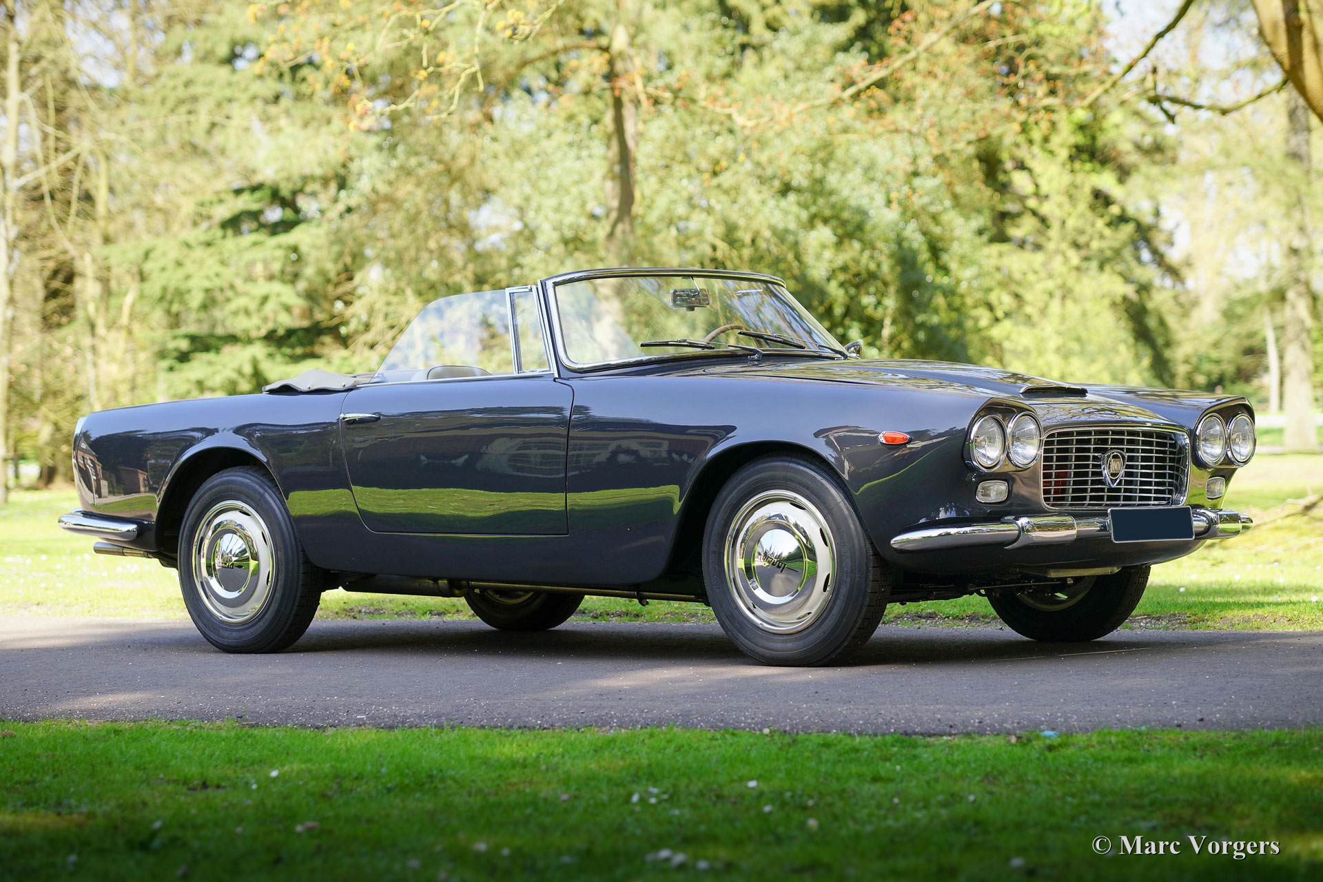 Lancia Flaminia 2.5 1-C convertible, year 1961. Colour dark grey (Grigio Cascine) with a light beige full-leather interior trimmed with dark grey piping. Blue carpet, also in the fully trimmed the boot. Beige hood and hood cover. This wonderful Lancia Flaminia is a rare convertible of which only 412 examples have been built. This Lancia is in superb concourse condition! The automobile was beautifully and perfectly restored. The bodywork shows beautiful panel fit and the paint is superb. During this extensive ‘nut & bolt’ restoration the following parts were renewed (amongst others, a full list is available): gearbox bearings and synchromesh rings, head lamps (now with H4 Halogen), front and rear bumpers (now Stainless Steel), wheel bearings, brakes (now with Stainless Steel hydraulic piping), sub frame, all rubber seals and bushes, radiator and the exhaust system (now Stainless Steel). All chrome was re-chromed, the carburettor was overhauled, the engine was overhauled (including renewal of 6 pistons), diaphragm clutch fitted etcetera. This Lancia Flaminia convertible is a top specimen, a magnificent car to own.