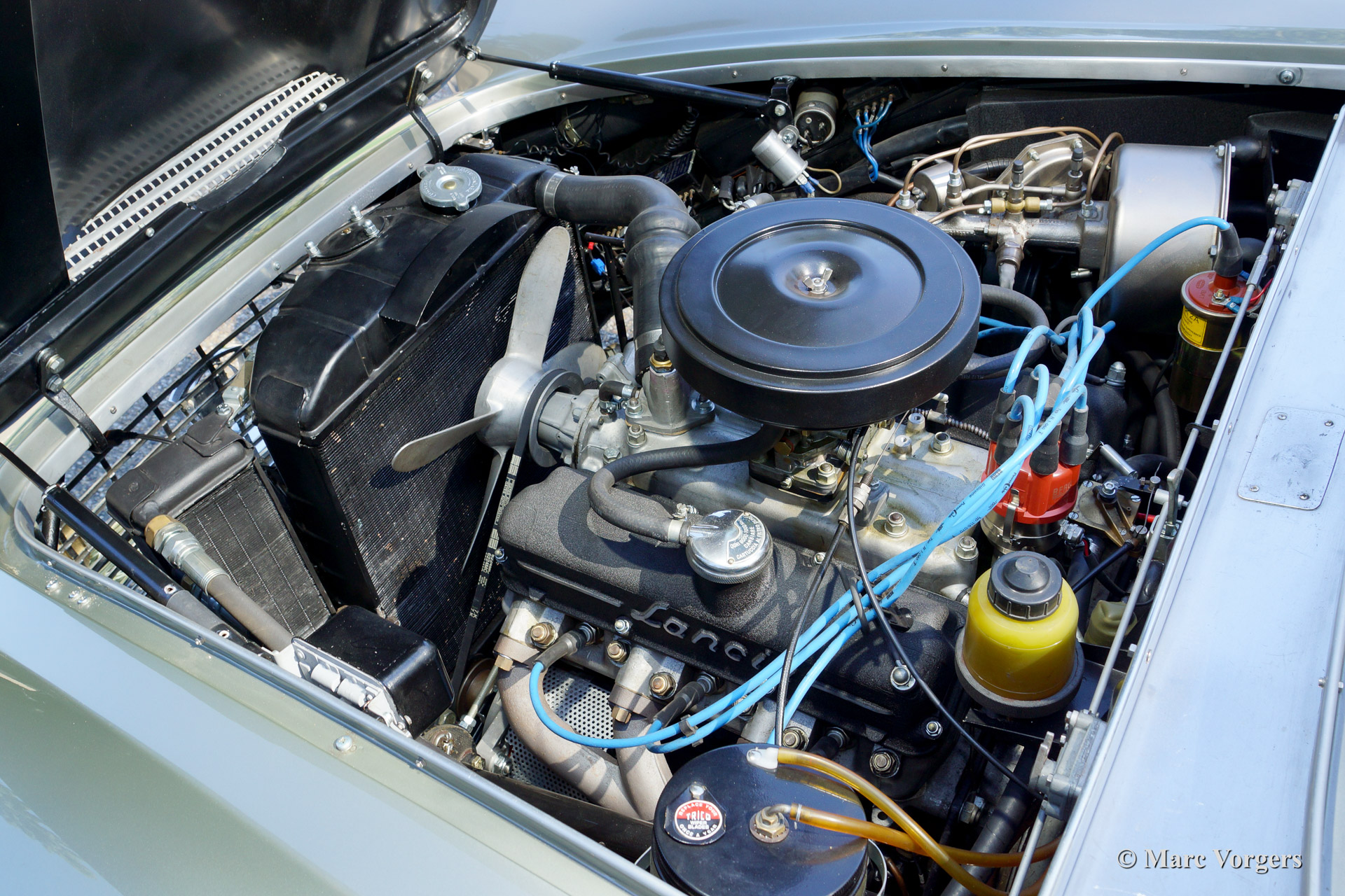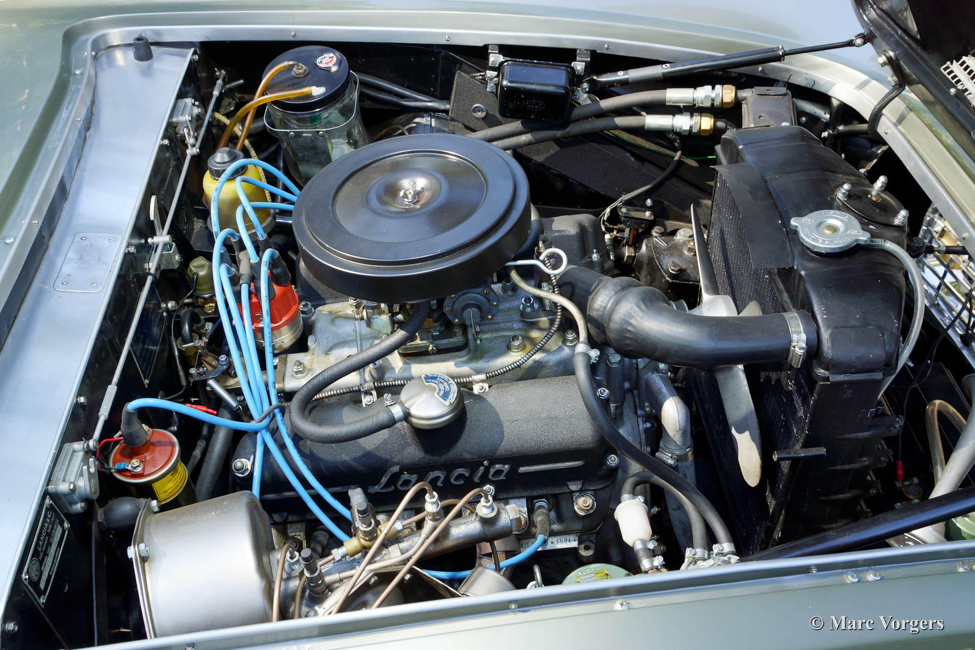 The Flaminia series was at first equipped with a 2500 cc. V6 engine fitted with one double choked Weber carburettor. Shortly thereafter the Flaminia models were fitted with uprated 2800 cc. engines and the most powerful versions were fitted with three double choked Webers. (3C in the Super Sport Zagato). The Flaminia Supersport Zagato was built with a aluminium unitary bodywork construction and the car featured the same technical specialties as the other Flaminia models. The cars featured a "de Dion" rear axle, overhead camshafts, disc brakes all round and a gearbox mounted to the rear axle (Transaxle). The expensive Transaxle construction made it possible to obtain an ideal weight distribution between the front and rear axles resulting in superb roadholding.