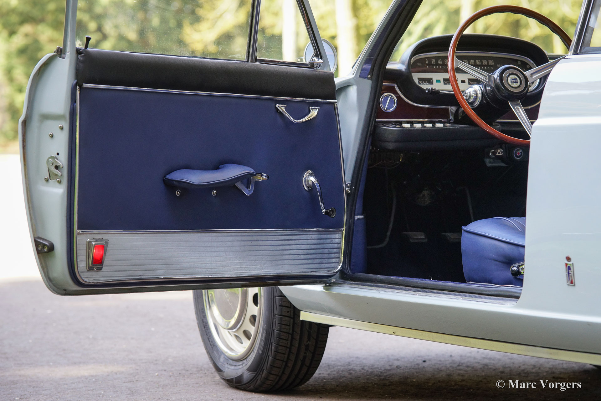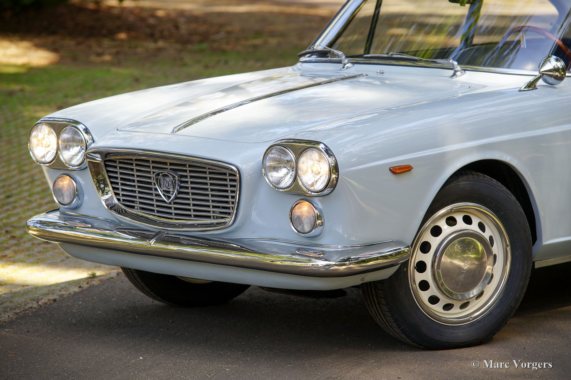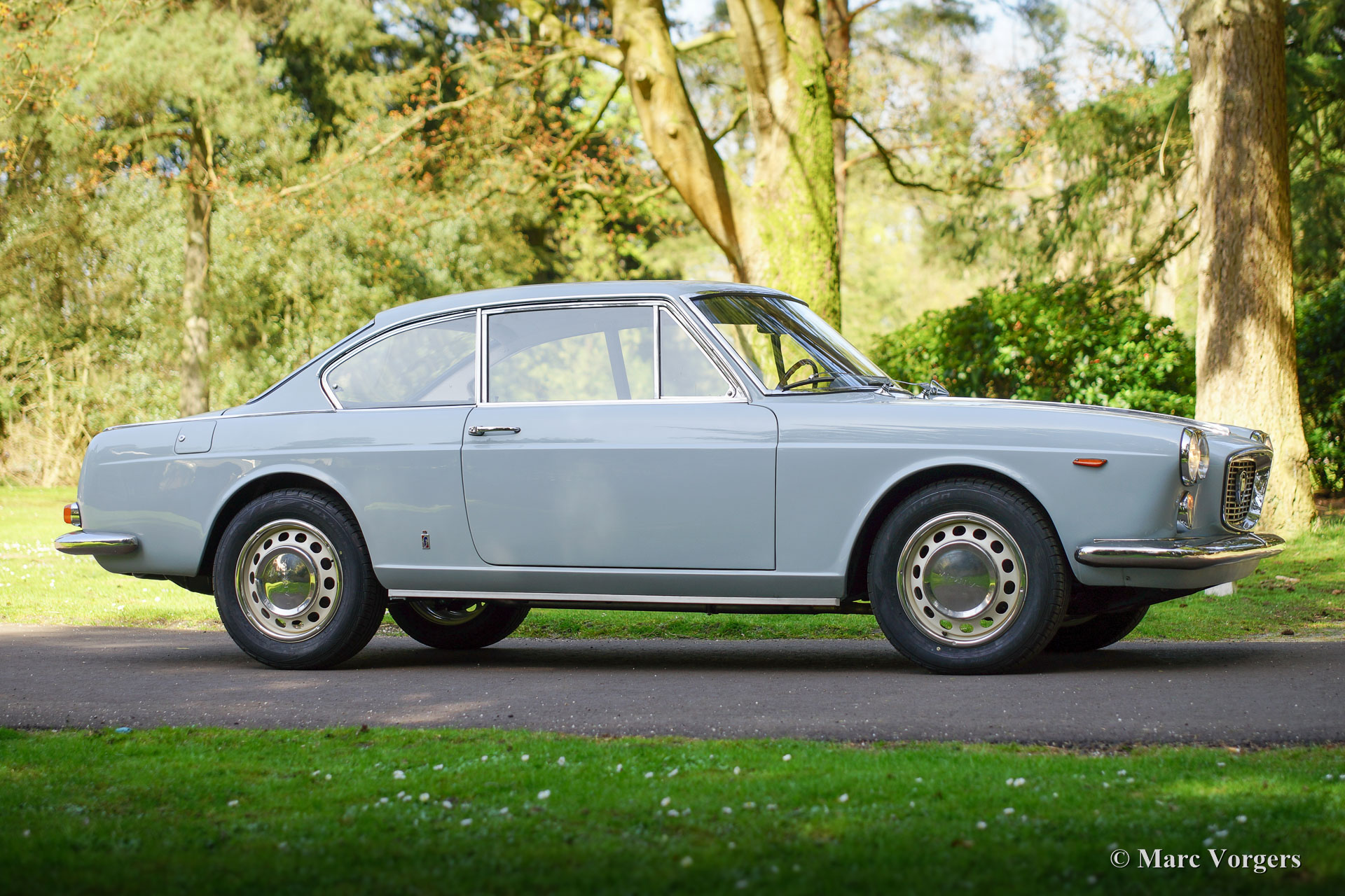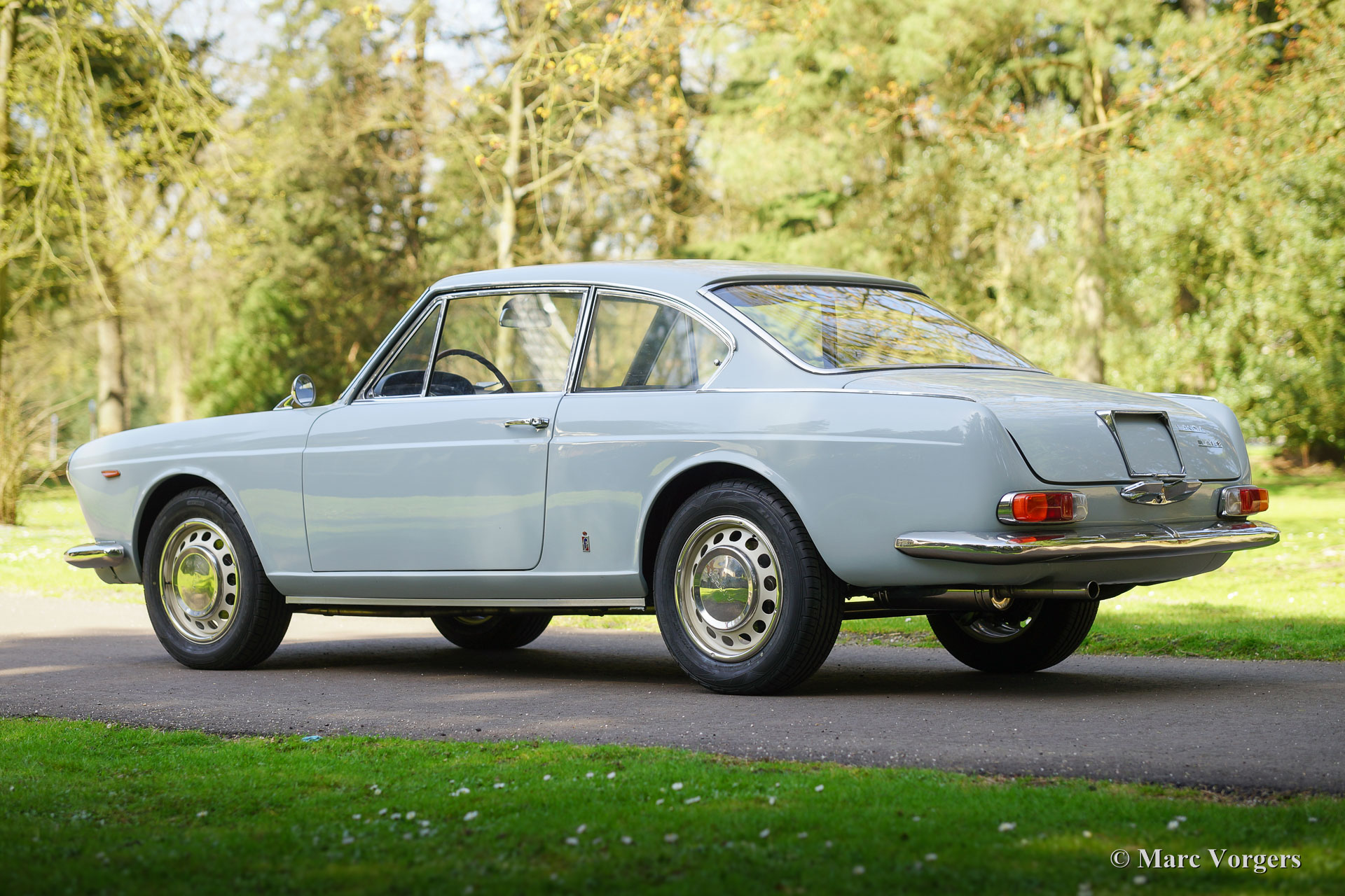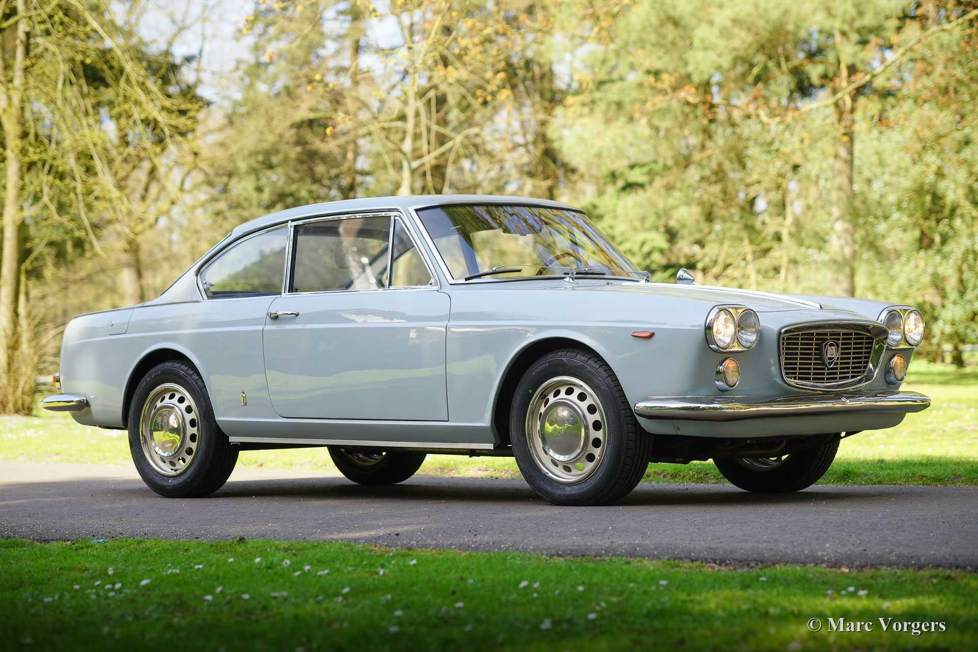 Lancia flavia 1.8 PF coupe, year 1965. Colour pale grey (Grigio York) with a dark blue leather interior and dark blue carpet. This very beautiful Lancia Flavia was imported from Vasto, Italy. This is a matching numbers car from the first series. The Lancia was ‘nut & bolt’ restored to perfection; the automobile is in concourse condition! During the restoration the following parts were renewed (amongst others): 4 inner mudguard panels, 4 wheel arches, brakes (now with Stainless Steel hydraulic piping), bumpers (now Stainless Steel), grille, exhaust system, parking-brake mechanism, joints/ bearings of the front wheel drive shafts, radiator, main bearings, oil-pump, lights and lamps, door-handles, wider wheels with wider tyres (original wheels are present), clutch, starter motor and the carburettor. Additionally, the car was given a protective Dinitrol ‘wax-oil’ treatment. This is the most beautiful Lancia Flavia we ever saw and the best we have ever driven. You will not find a better example!