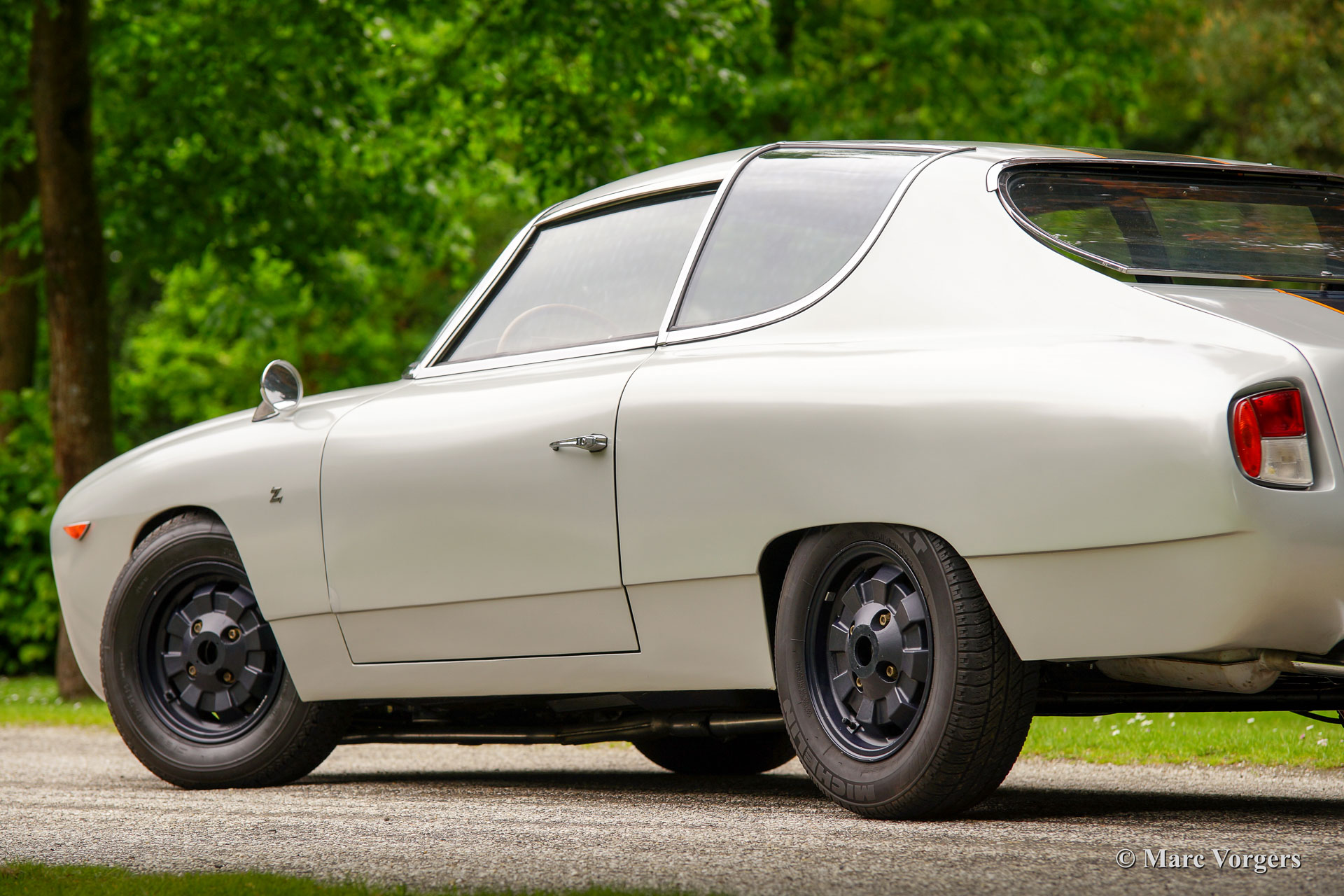 Lancia Flavia Sport Zagato, year 1966. Chassis number: 815.532*001XXX. Colour matt silver metallic with a black leather interior. This fabulous Lancia Flavia Zagato is in very good condition. The car drives fantastic and it is a real head-turner! The car was restored about fifteen years ago. The body work was given a lot of attention, many sheet metal parts were renewed, the doors were re-constructed, new strengthened sills and reinforced A-posts were welded in and the floor in the boot was renewed. The interior upholstery was renewed, now black leather. The original and un-restored red interior also comes with the car. Also included: a set of original steel disc wheels and un-restored front and rear bumpers.