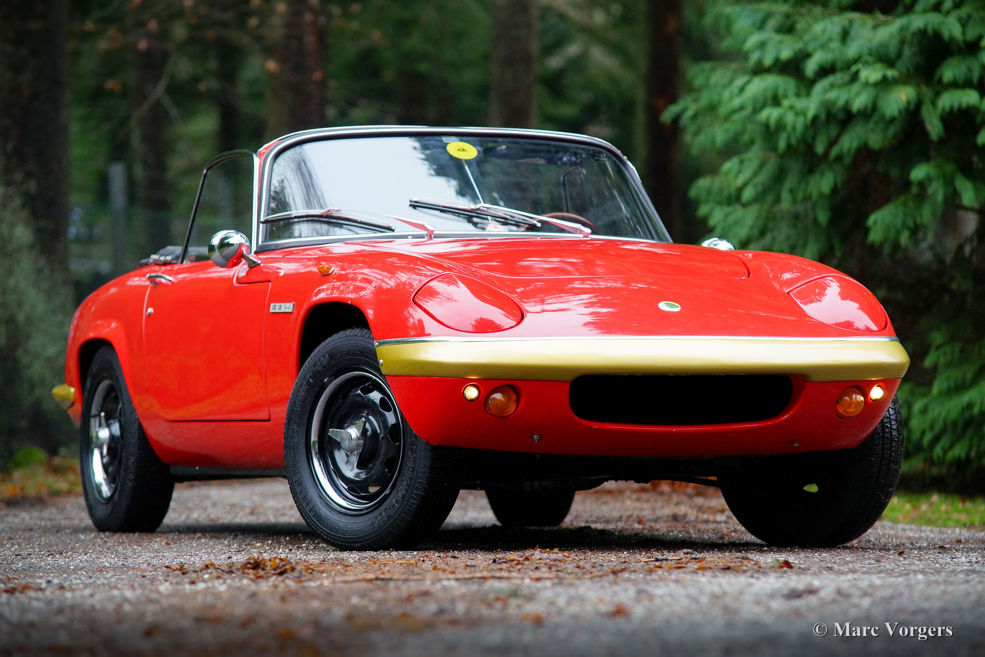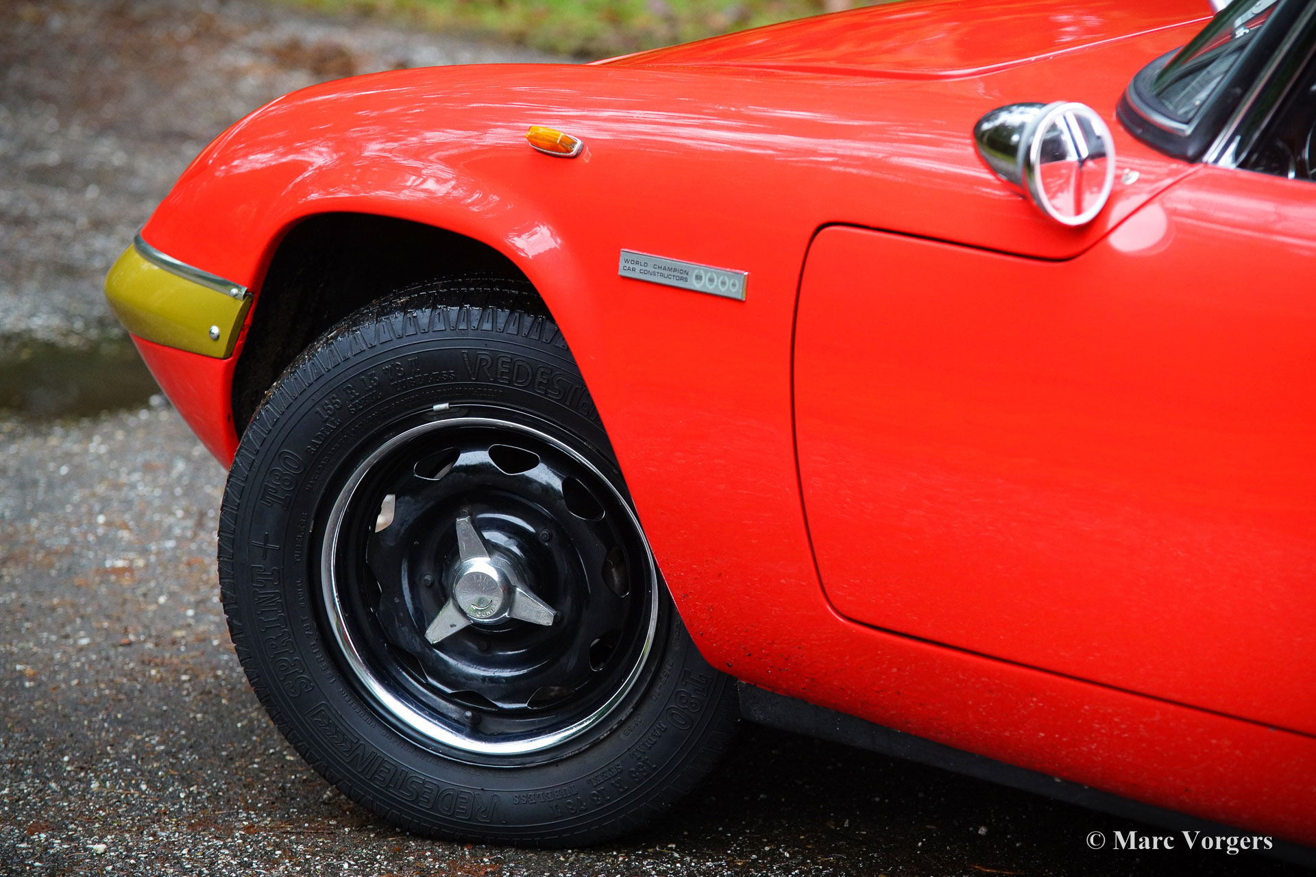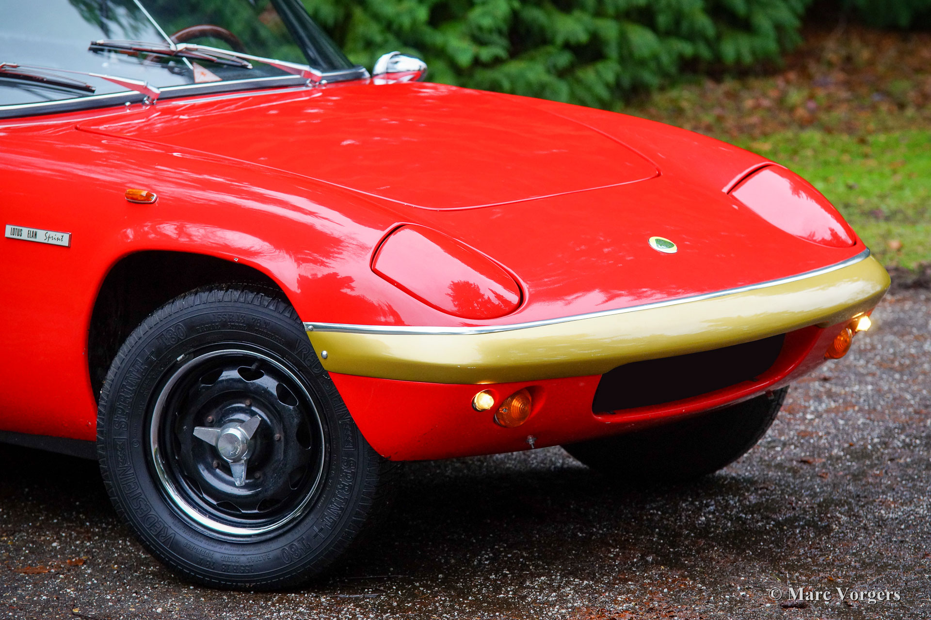Lotus Elan Sprint, year 1971. Colour red with gold coloured bumpers, black wheels, and a black interior. The Lotus Elan is globally acclaimed by connoisseurs and drivers as being the best handling classic sports car for the open road. The low weight of only 670 kilogrammes (glass fibre reinforced plastic body mounted on a central-tube chassis) combined with a powerful 125 bhp engine and splendid road holding have resulted in a spectacular compact sports car. This gorgeous example was imported to the Netherlands in the year 2002, the car has known only one enthusiast owner ever since. In the year 2004 the right-hand-drive steering was professionally changed to left-hand-drive steering. The car has been serviced and maintained beautifully; In recent years the brake-system, the cooling-system and the carburettors were overhauled/ renewed. The car is in excellent and very original condition and everything works like it should. The Lotus features a Nardi steering wheel, the original (Colin Chapman) steering wheel is also included. Present is a dyno-test print-out which states that the engine delivers a very healthy 123 bhp. This is a very desirable and highly sought after Lotus Elan in excellent condition!