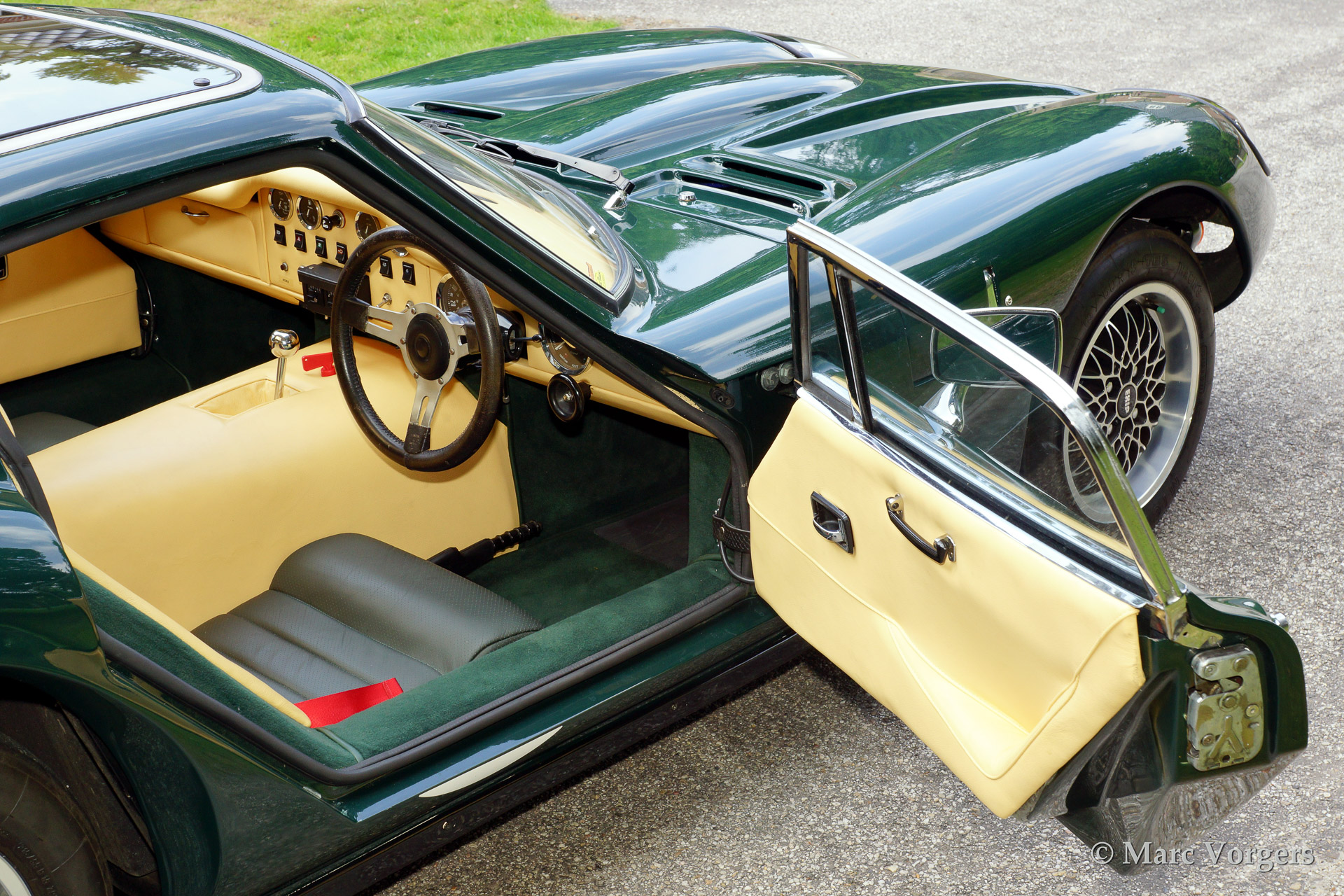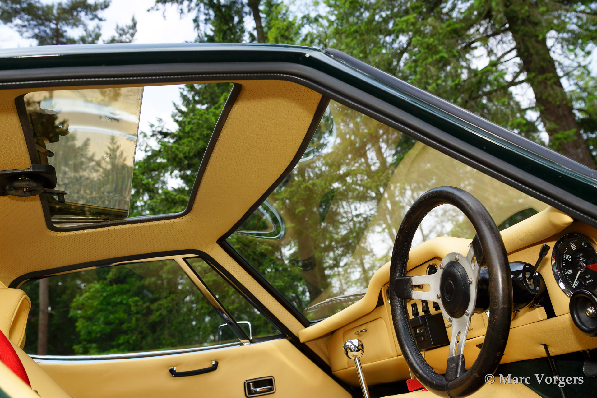 Marcos GT 3-Litre, 1969. Colour British Racing Green with a beige leather interior. This fantastic Marcos GT was extensively restored and no expenses were spared to get everything right. The Marcos GT 3-Litre is a rare car, only 145 cars were built. According to the documents this car was factory fitted with a sun-roof! The car features a full leather interior (dark green seats, beige dashboard, transmission tunnel and door panels), 4-point safety harnesses, additional gauges, and beautiful alloy wheels.