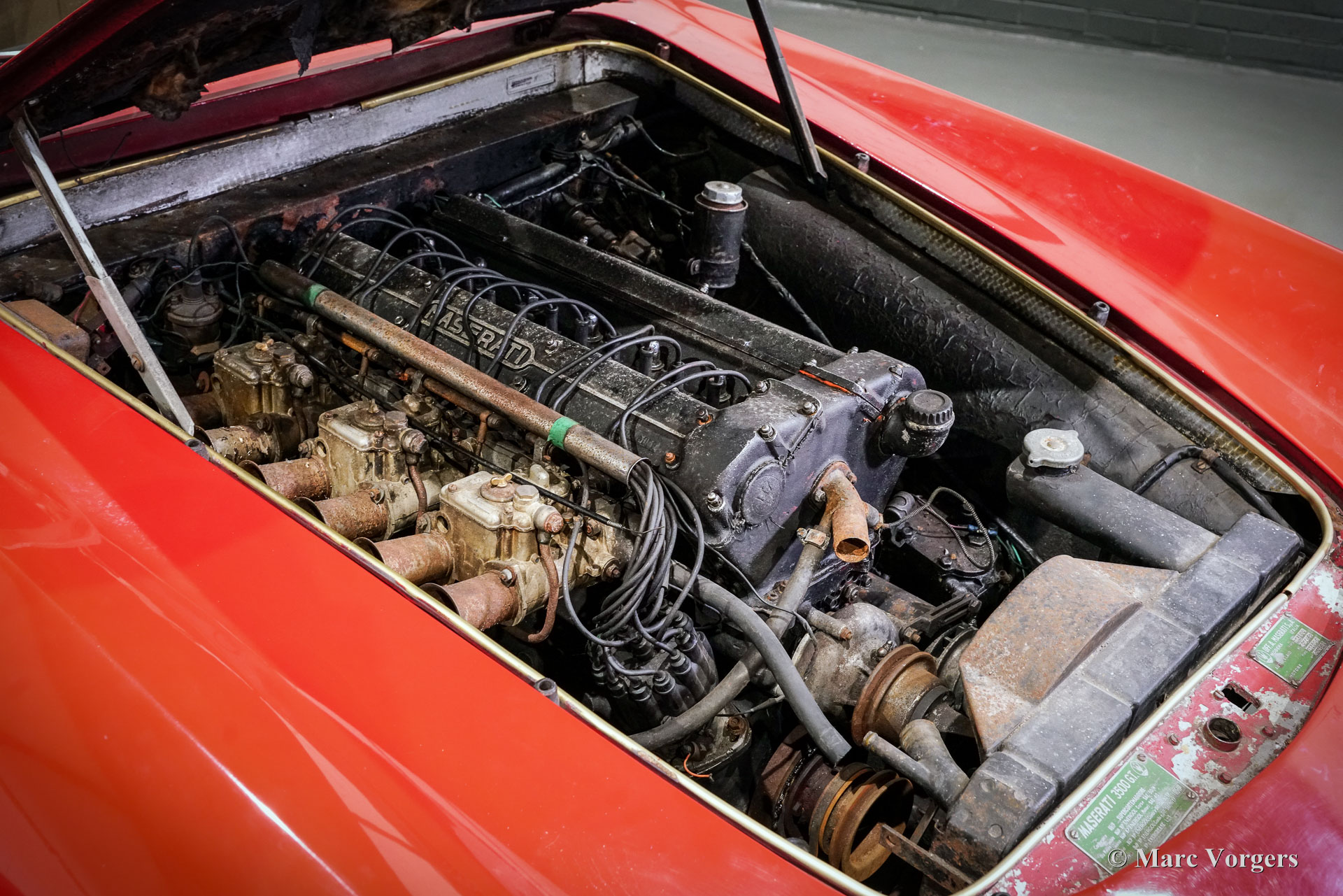 Maserati 3500 GT Touring, year 1962 restoration object, complete and matching numbers. Chassis (VIN) number VIN: 101-1862, Touring body number 12172. Colour red combined with a beige (Ivory) interior. After 10 years with the first owner, this fantastic Maserati 3500 GT found a new home in the United Kingdom in 1972. In the year 1987 the automobile garaged to be restored. The cooling system was emptied, and the brake pads were removed. The last British V5C document, issued in 1986, states an odometer reading of (1)17.898 kilometres, currently the odometer shows 18.191. The car has known four British owners, all their names have been recorded in the documentation. The Maserati was sold new in the colour maroon red combined with an Ivory coloured interior. In 2023 the car was auctioned and sold to the Netherlands. This gorgeous Maserati 3500 GT is a complete car and a wonderful base for a full restoration. It is also possible to turn this Maserati into a running driver car with some restoration to parts of the floor and a full mechanical TLC! The bodywork is in a quite sound condition with some bad spots inside and near the wheel arches. It is more obvious that this beautiful machine will be object of a full restoration to 1A factory original top condition. If you wish the car can be fully restored by our skilled team having experience with the Maserati 3500 GT and the Touring Superleggera body construction. The Maserati 3500 GT is a very desirable and rare automobile, only 2226 examples were built from 1957 until 1964.