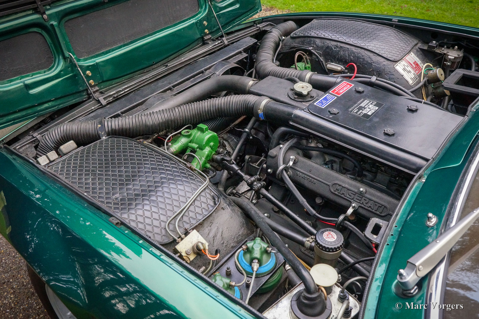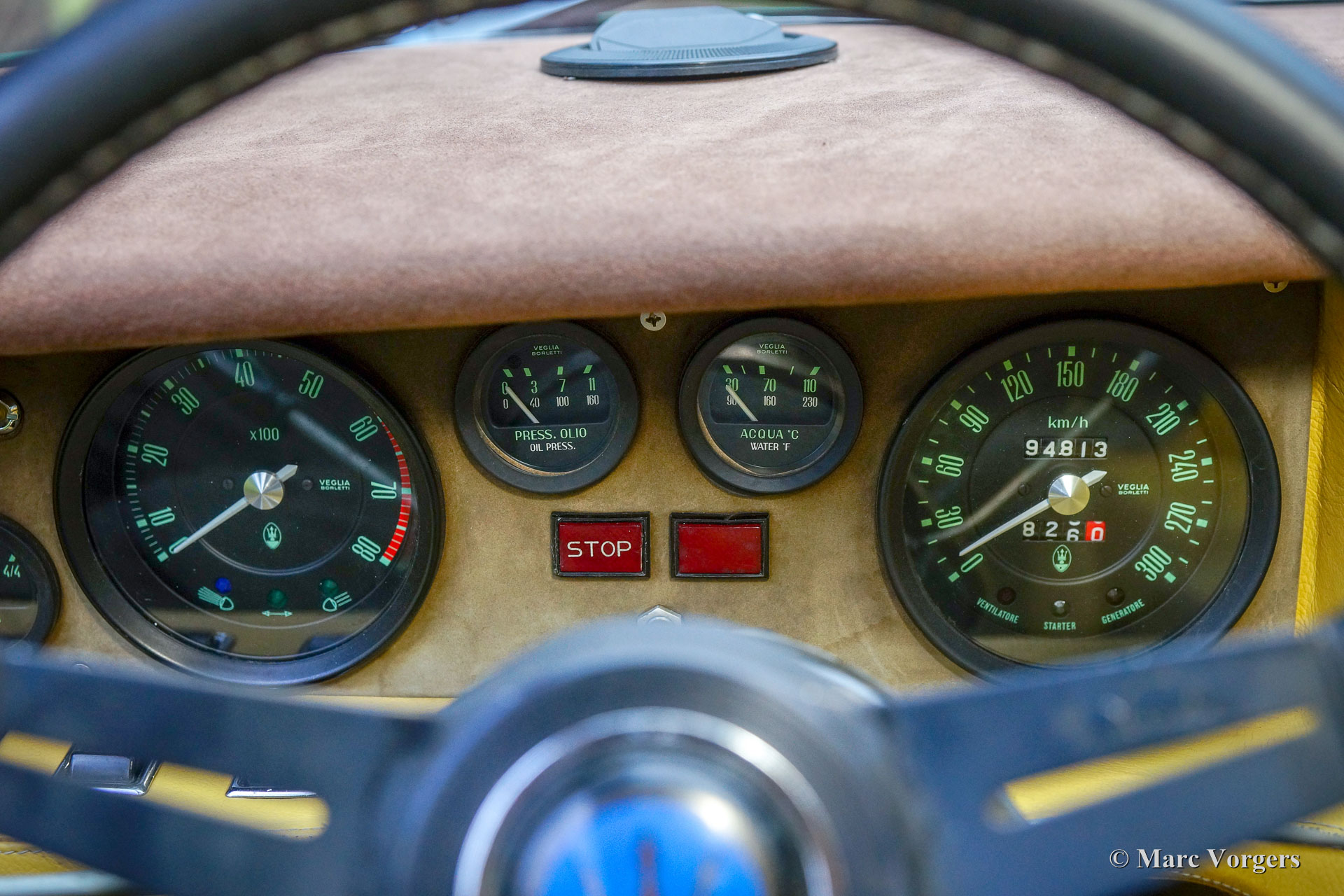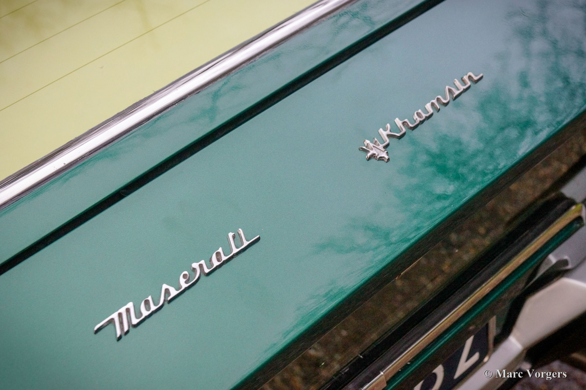 Maserati Khamsin, year 1974. Colour green metallic with a dark beige leather interior, a brown Alcantara dash-top and black carpet with beige edge trimmings. This fabulous Maserati Khamsin is one of the only 430 specimens ever built. A magnificent looking and rare sports car! This Maserati was ordered by an inhabitant of the United Arab Emirates and it was delivered new to the United Kingdom. This Khamsin is a European model from the sought-after first series. The following owner lived in Germany and from 1986 the car was registered in Sweden. In Sweden the car was meticulously restored in the years 2005 – 2007. An extensive restoration file is present. The automobile was purchased by a Dutchman in the year 2014. In 2016 the car participated in the 12th Antwerp Concours d’ Élégance, which was held in the grounds of Castle Belvedère, where the Khamsin was a worthy prize winner! This fine Maserati Khamsin is in superb top condition and the car drives superbly! You probably know that Maserati was owned by Citroën in the 1970ies. The Khamsin was designed and built with advanced hydraulic systems of the legendary Citroën SM like the very effective hydraulic brakes and the power steering system. This Khamsin was factory fitted with the desirable ZF manual gearbox. The automobile comes complete with the original tool-set (in a beautiful tool-roll), the original crick and a splendid period Blaupunkt radio with ‘speech-recording’ functionality. Also, the original owners’ manual is present (in a gorgeous leather folder) and the original boot cover in beige leather. This is a fantastic top-example!
