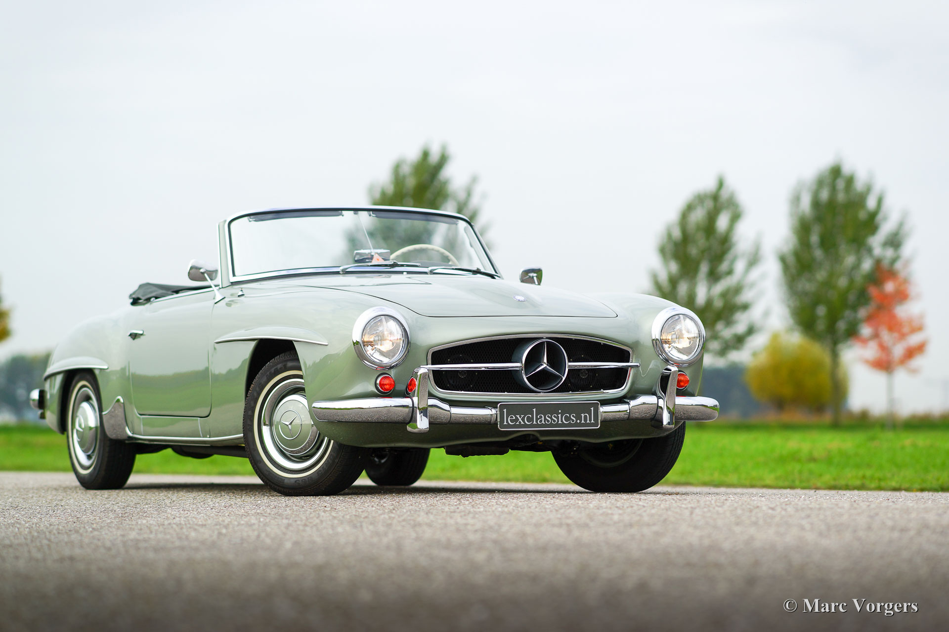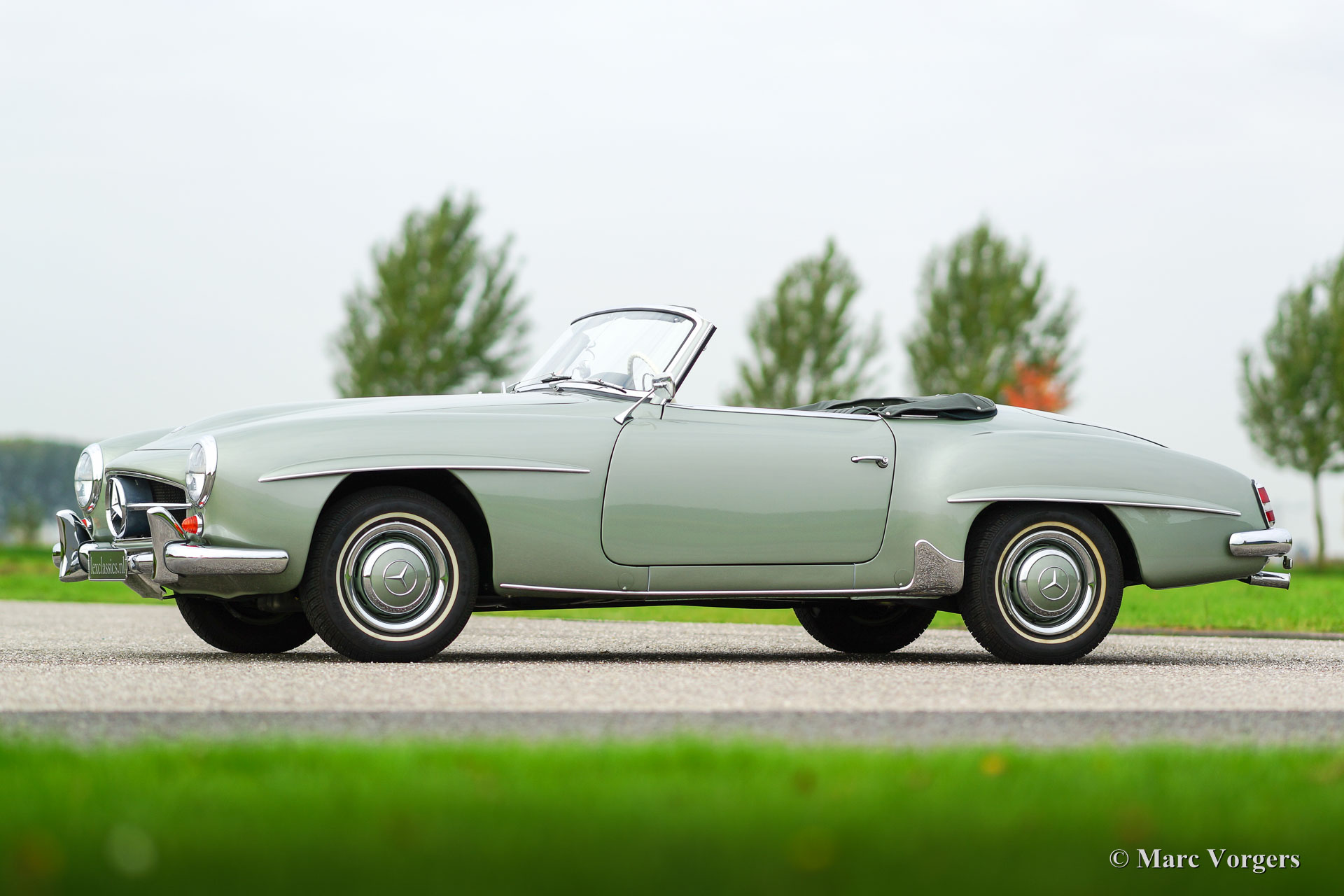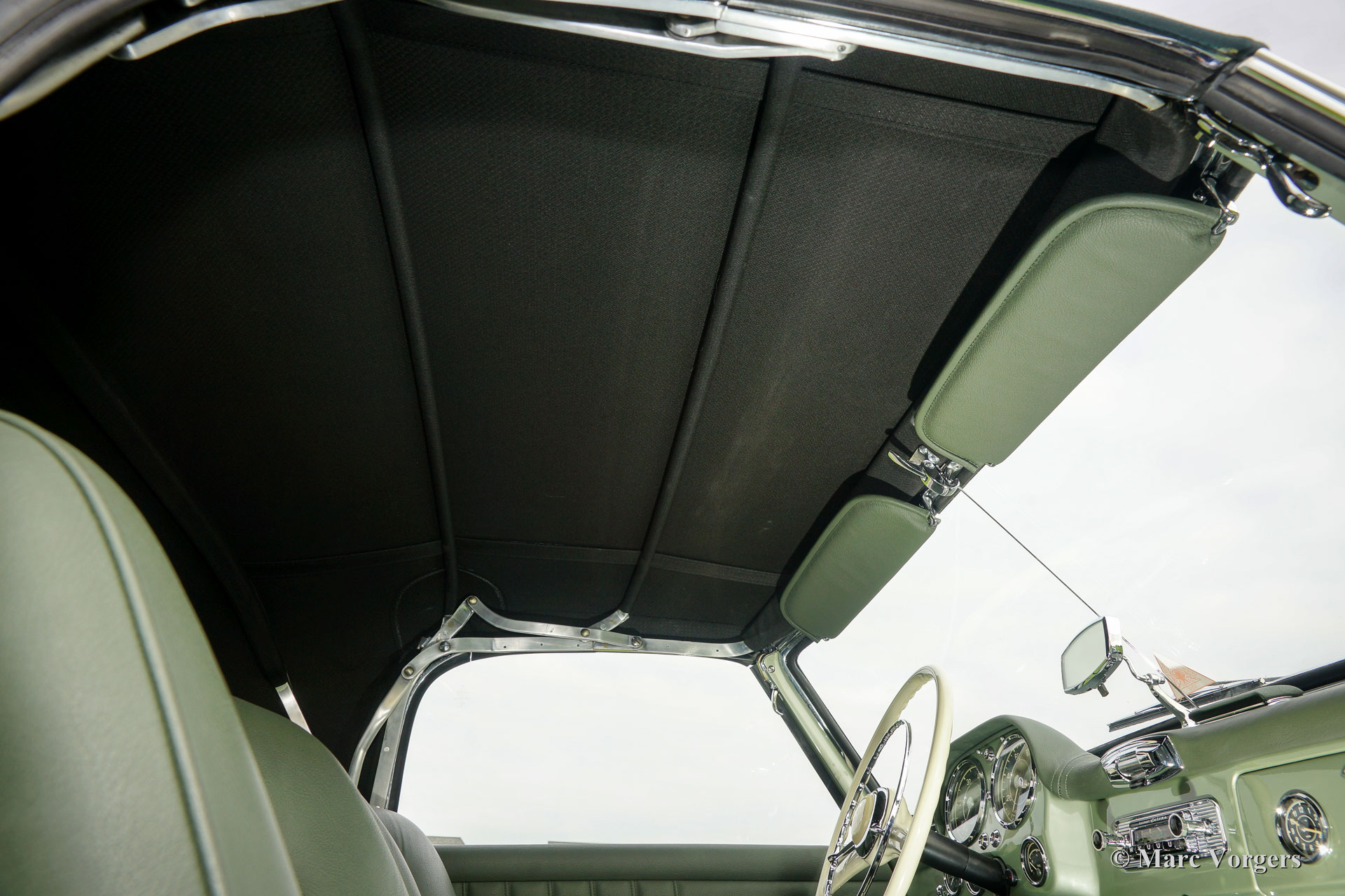 Mercedes-Benz 190 Sl, year 1958. Colour ‘Hellgrün’ metallic (optional original MB 190 colour code DB274) with a green leather interior and carpet to match. Dark green mohair soft top and green hood cover. This magnificent Mercedes-Benz 190 SL comes from Oregon in the USA. The automobile was imported to the Netherlands in the year 2012. Then the car was extensively and perfectly restored to concours (show) condition! The engine, gearbox, carburettors and other mechanical parts were overhauled by a renowned Dutch SL specialist. A photo reportage of the restoration is present. After ‘big brother’ 300 SL the 190 SL is the most desirable Mercedes model. A car of timeless beauty and a solid investment. The 190 SL is also a magnificent car for summer touring sporting beautiful lines and details which will never cease to excite.