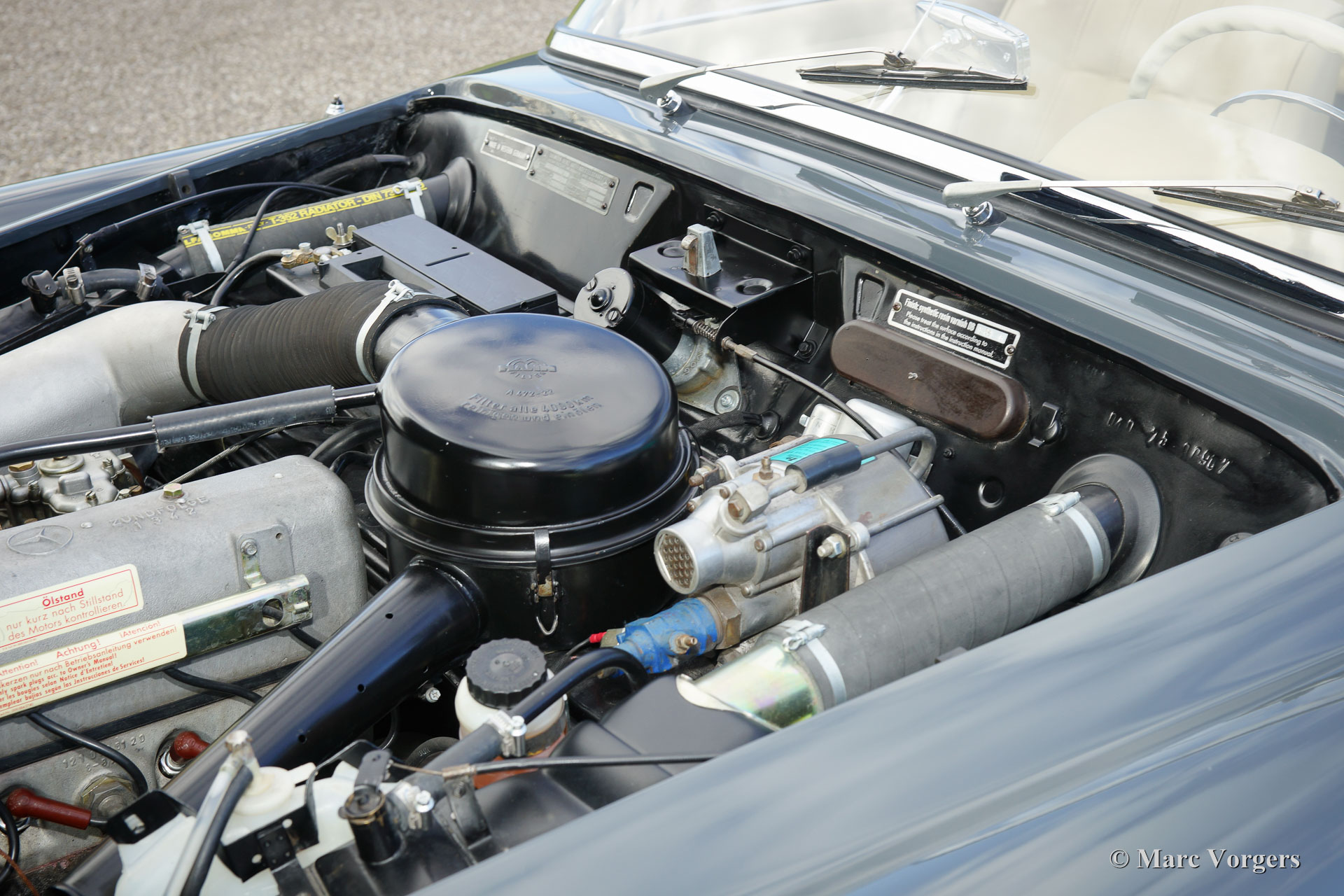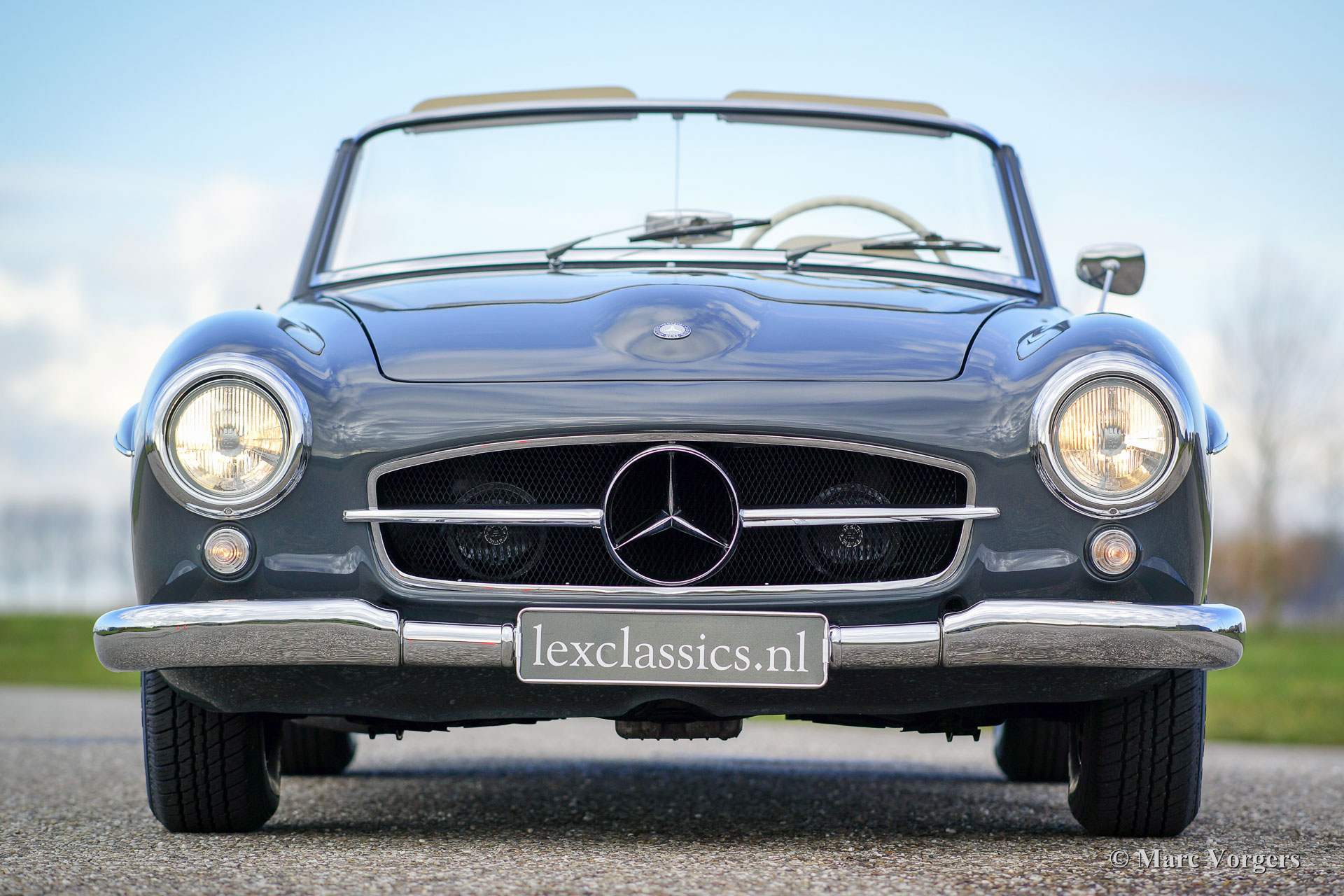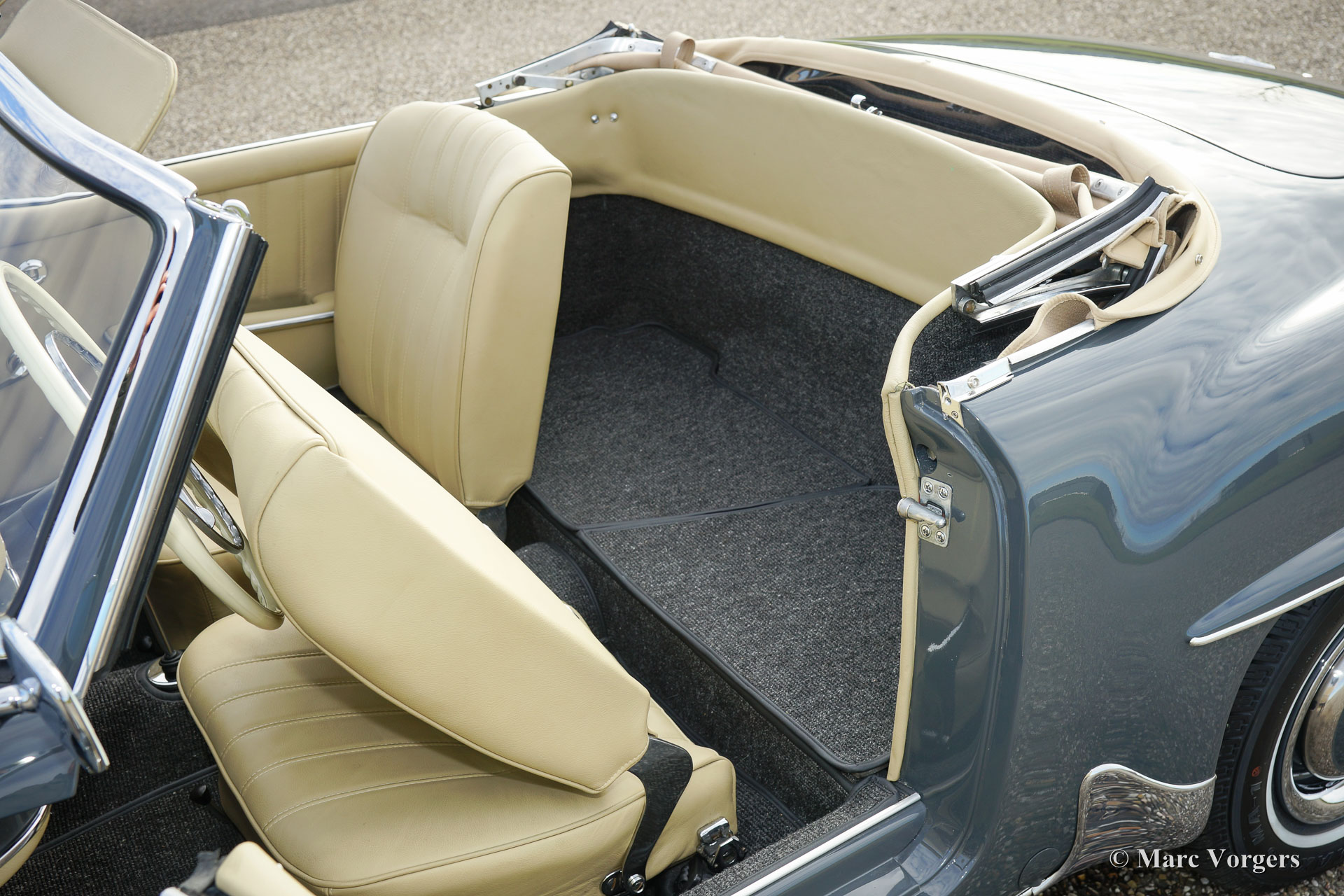 Mercedes 190 SL, year 1958. Colour Graphite grey with a beige leather interior and a beige soft-top. This magnificent Mercedes-Benz 190 SL was imported from the USA to the Netherlands in the year 2013. Then a thorough ‘nut and bolt’ restoration started. The car has been restored with many new parts and the majority of the mechanical parts have been overhauled by a specialist firm. The automobile is in superb top condition, concourse, and the car drives perfectly!