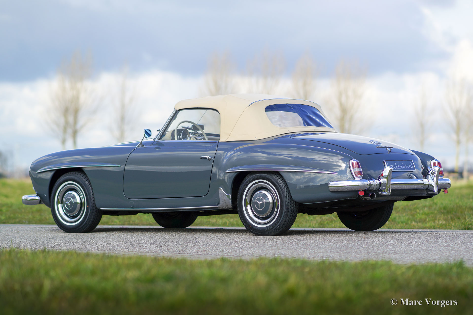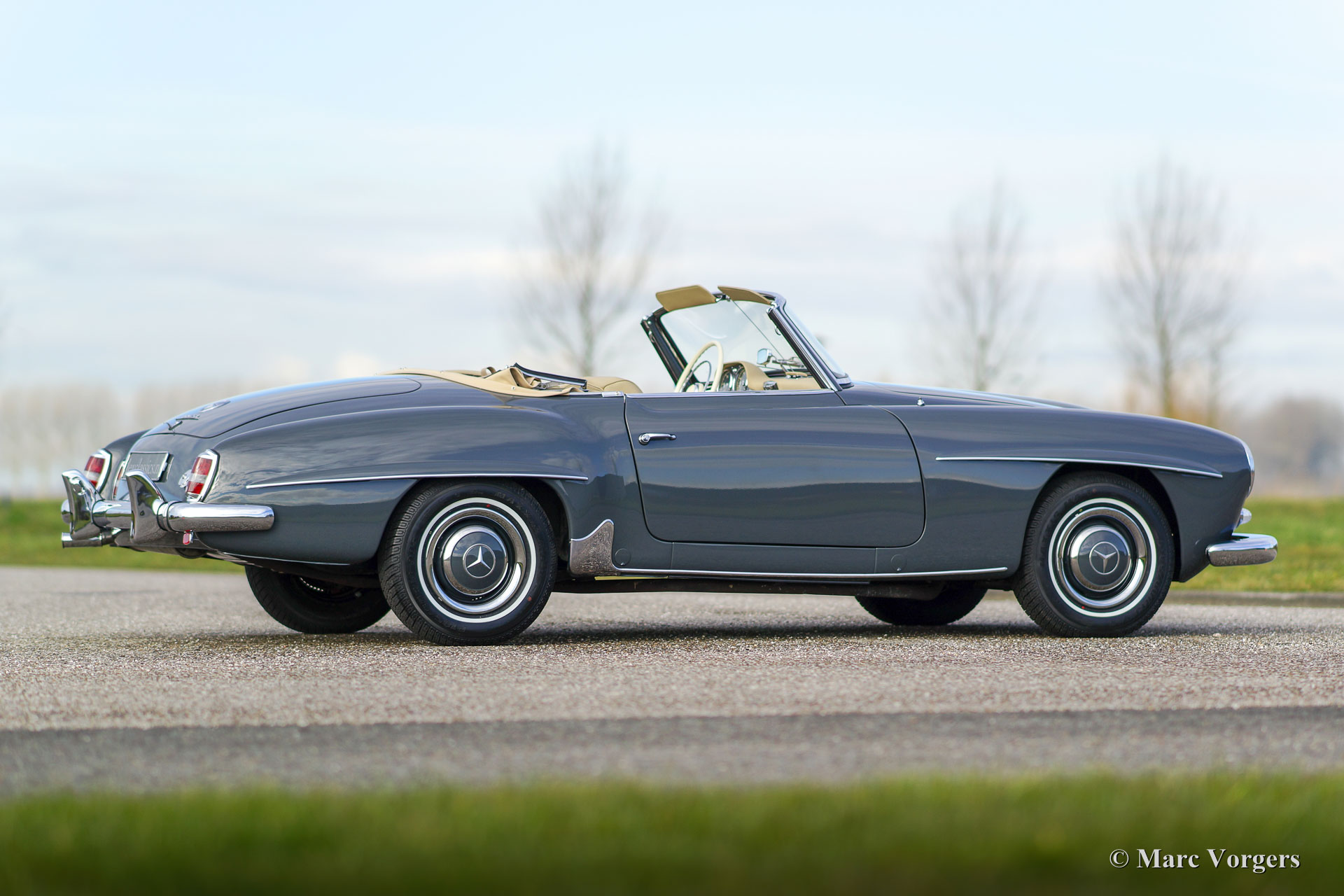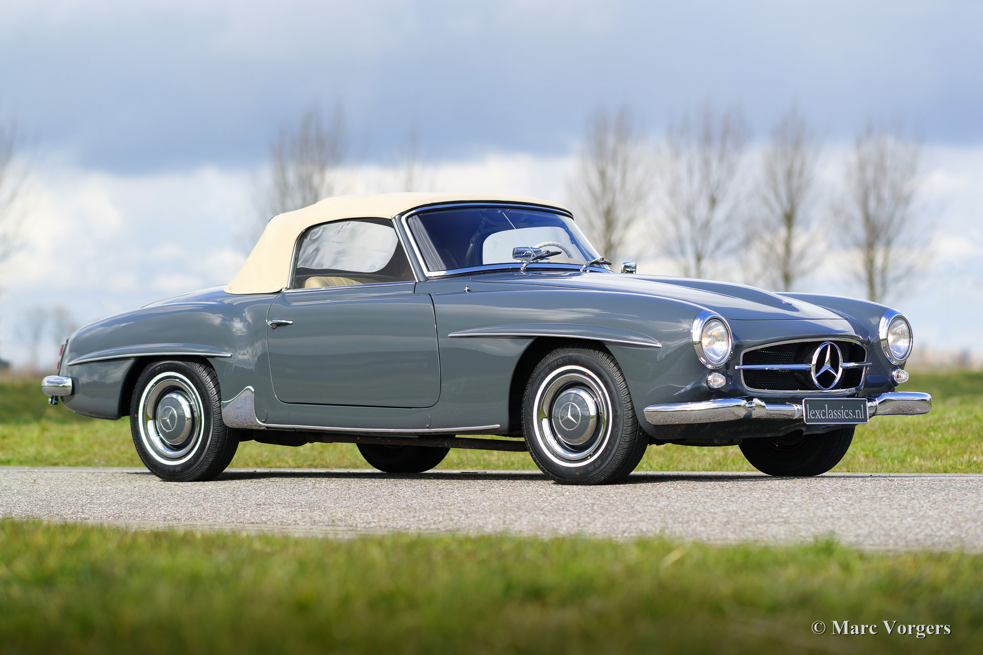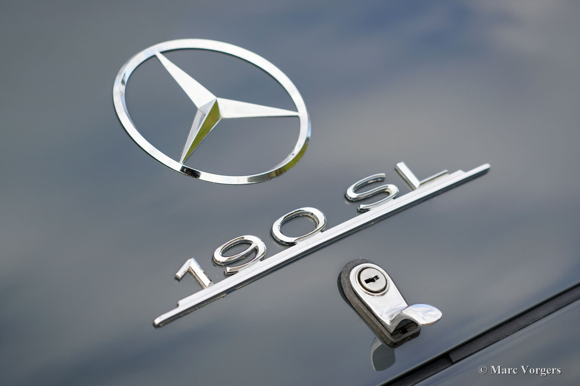 The Mercedes-Benz 190 SL roadster saw the light of day in the year 1955 impersonating a less expensive and less advanced alternative for the 300 SL roadster. Technically the 190 SL roadster shared nothing with big brother 300 SL. But the bodywork design and interior design, which appealed to many people, were strongly inspired by the 300 SL roadster. The Mercedes-Benz 190 SL was a real touring-convertible in opposite to the 300 SL roadster which was a true sports car. But the 190 SL was affordable (to Mercedes-Benz standards) and the car found a great share of enthusiastic owners primarily in the sunny states of the USA. The sales success of the 190 SL was based on the good looks of the car but also because of the excellent comfort, the excellent mechanics and its reliability. The Mercedes-Benz 190 SL was equipped with a four-cylinder engine with a cylinder capacity of 1897 cc. and fitted with two carburettors. The standard four-speed manual gearbox was fully synchronized and featured floor shift. From 1956 on the 190 SL was fitted with standard power brakes. During the entire period of production a very nice hardtop was available. The story goes that many European owner ordered the roadster with the hardtop and hardly ever took it off! In the year 1963 the 190 SL was succeeded by the new Mercedes-Benz 230 SL roadster which was going to be known by the nickname "Pagoda".