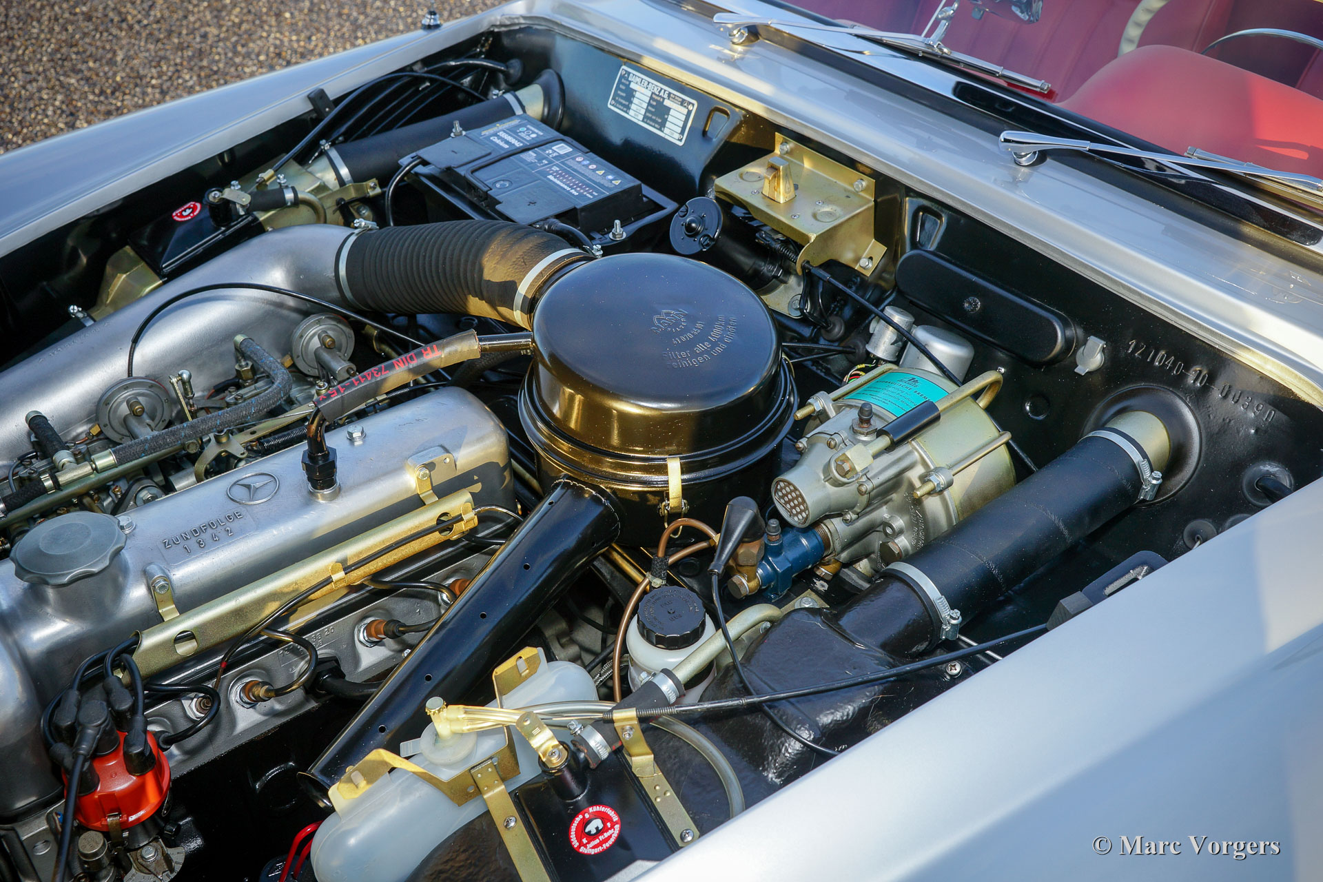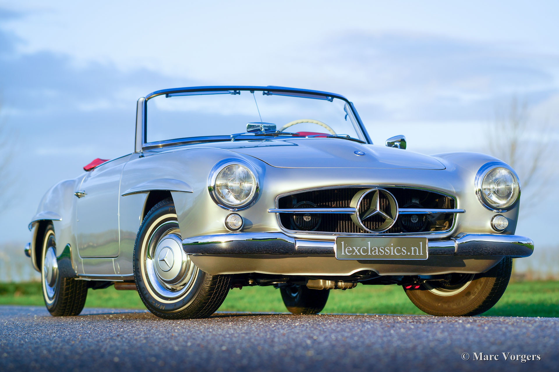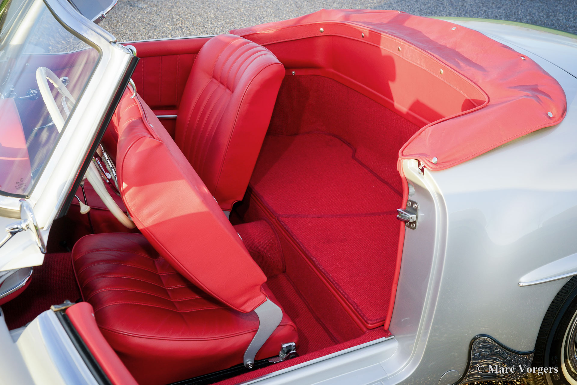 Mercedes-Benz 190 SL, year 1961. Colour silver metallic with a red leather interior. This beautiful Mercedes 190 SL was extensively and perfectly restored in the past. The bodywork shows-off a crisp panel fit and all original details are present. This 190 SL is in superb top condition! A photo reportage of the restoration is present. A Mercedes-Benz ‘heritage document’ is present confirming that this car has ‘matching numbers’. A top specimen!